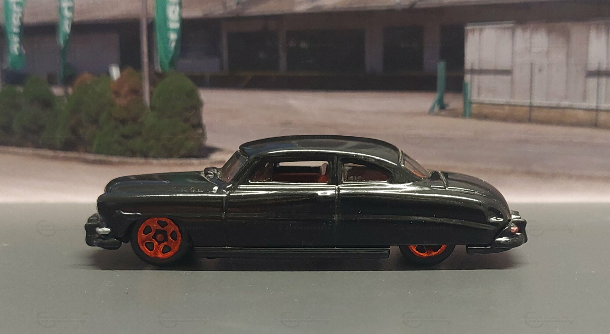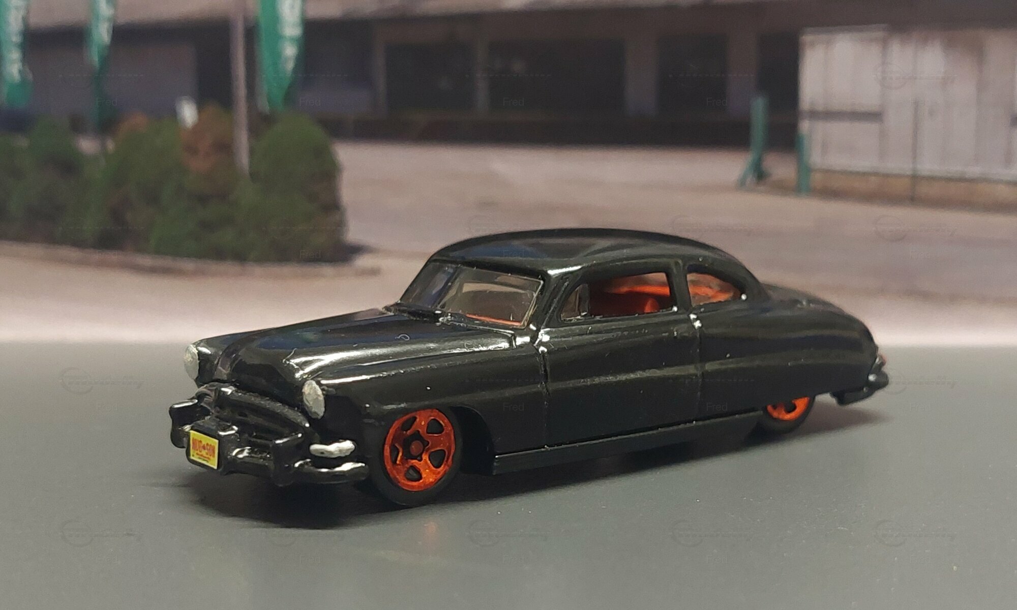 Das hier gezeigte Modell im Maßstab 1:64 ist von Hot Wheels und basiert auf dem berühmten Hudson Hornet Club Coupe. Modellauto-Sammler aus der ganzen Welt schätzen die detaillierte Nachbildung, die Hot Wheels in die Miniatur eingebracht hat. Dieses spezielle Modellauto wurde aus dem Material Diecast, also Druckguss, gefertigt, was es robust und langlebig macht. Auffällig sind die besonderen Details und die stark modifizierten Elemente, die dieses Stück von den standardmäßig produzierten Modellen abheben. Beispielsweise wurden hier auffällige orangefarbene Felgen spezifiziert und die Lackierung in einer dunklen Farbe durch die Kreativität des Sammlers verändert. Diese Modifikation verdeutlicht, dass das Modell nicht exakt dem originalen Produkt entspricht, das von Hot Wheels produziert wurde.