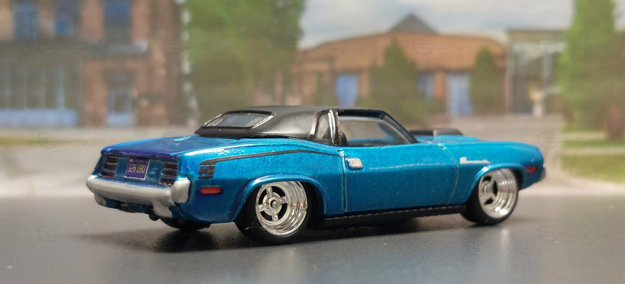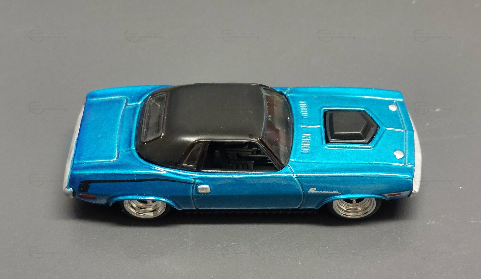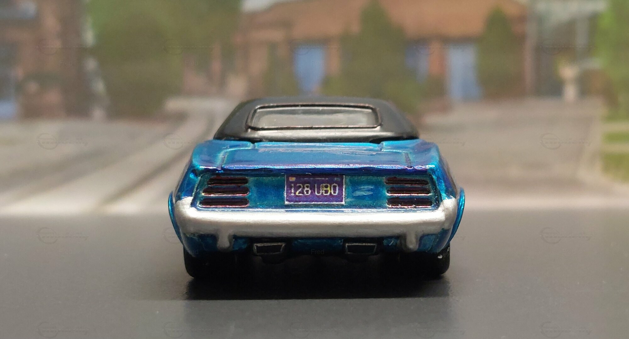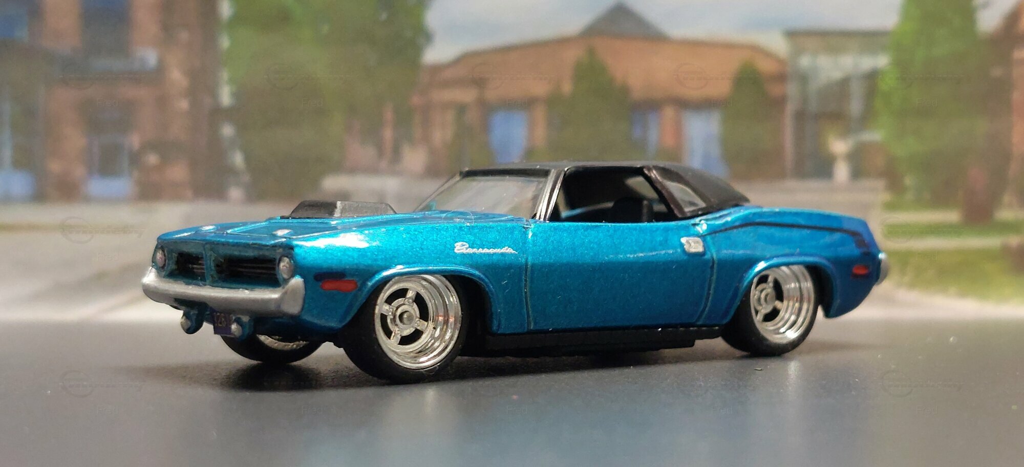Die hier gezeigte Miniatur des Plymouth Barracuda 440, die im 1:64-Maßstab von Hot Wheels hergestellt wurde, ist ein wunderbares Sammlerstück für Miniaturenliebhaber. Dieses Modellauto ist aus dem Material Diecast gefertigt, was für seine Langlebigkeit und die präzisen Details bekannt ist. Diese Nachbildung des Barracuda besticht durch ihre leuchtend blaue Metallic-Lackierung und das schwarze Dach, das der Originalkarosserie des echten Fahrzeugs nachempfunden ist. Auf den Fotos, die im Besitz des Modelly Mitglieds Fred sind, sind die liebevoll gestalteten Details des Fahrzeugs klar zu erkennen. Die Miniatur zeigt die charakteristischen Linien und Formen des Barracuda, einschließlich der markanten Frontpartie und der sportlichen Kotflügelverbreiterungen.