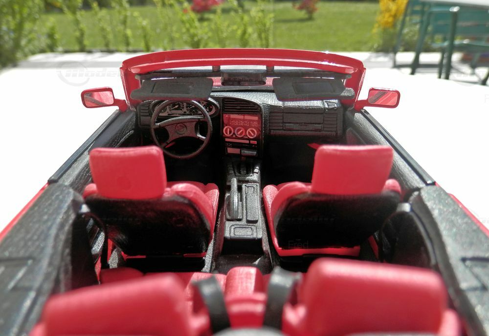 Das 1:18 Modell des BMW 325i Cabrio E36 von Maisto bietet detailreiche Elemente, die beeindruckend sind. Die rote Lackierung des Modells ist makellos und fängt die Eleganz des Originals ein. Auffällig sind auch die präzise nachgebildeten Scheinwerfer, Rücklichter und die markanten Nieren des Kühlers. Die Innenausstattung ist ebenfalls detailliert, mit einem akkurat umgesetzten Armaturenbrett, Lenkrad und Sitzen. Die silbernen Felgen aus dem Zeitgeist der frühen 1990er-Jahre passen hervorragend und unterstreichen die Authentizität dieses Modells.