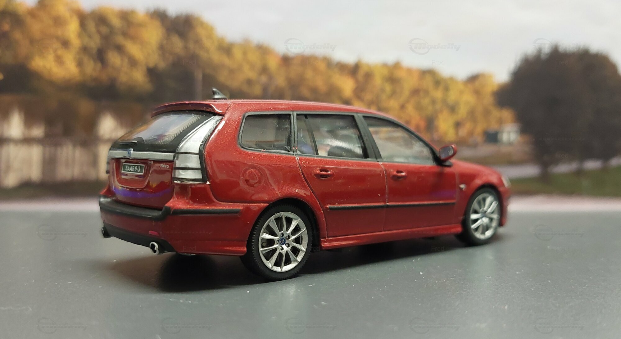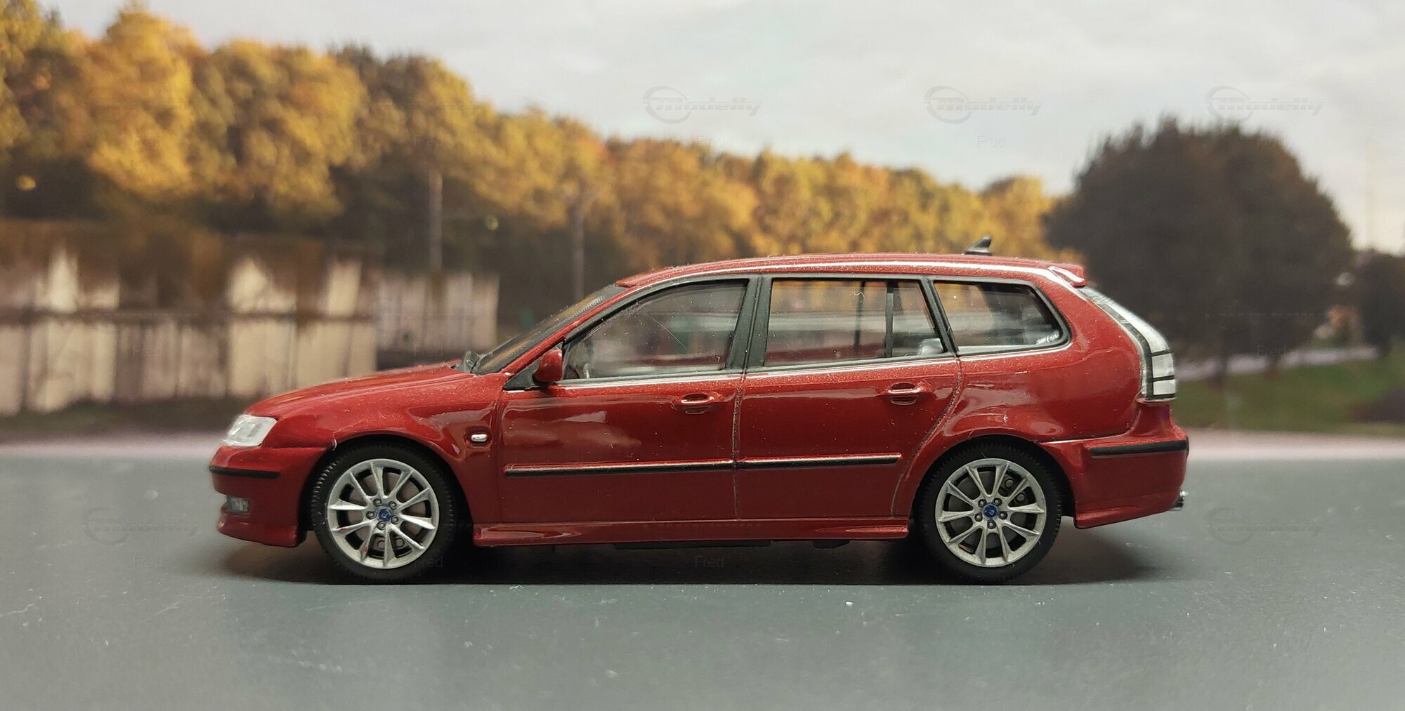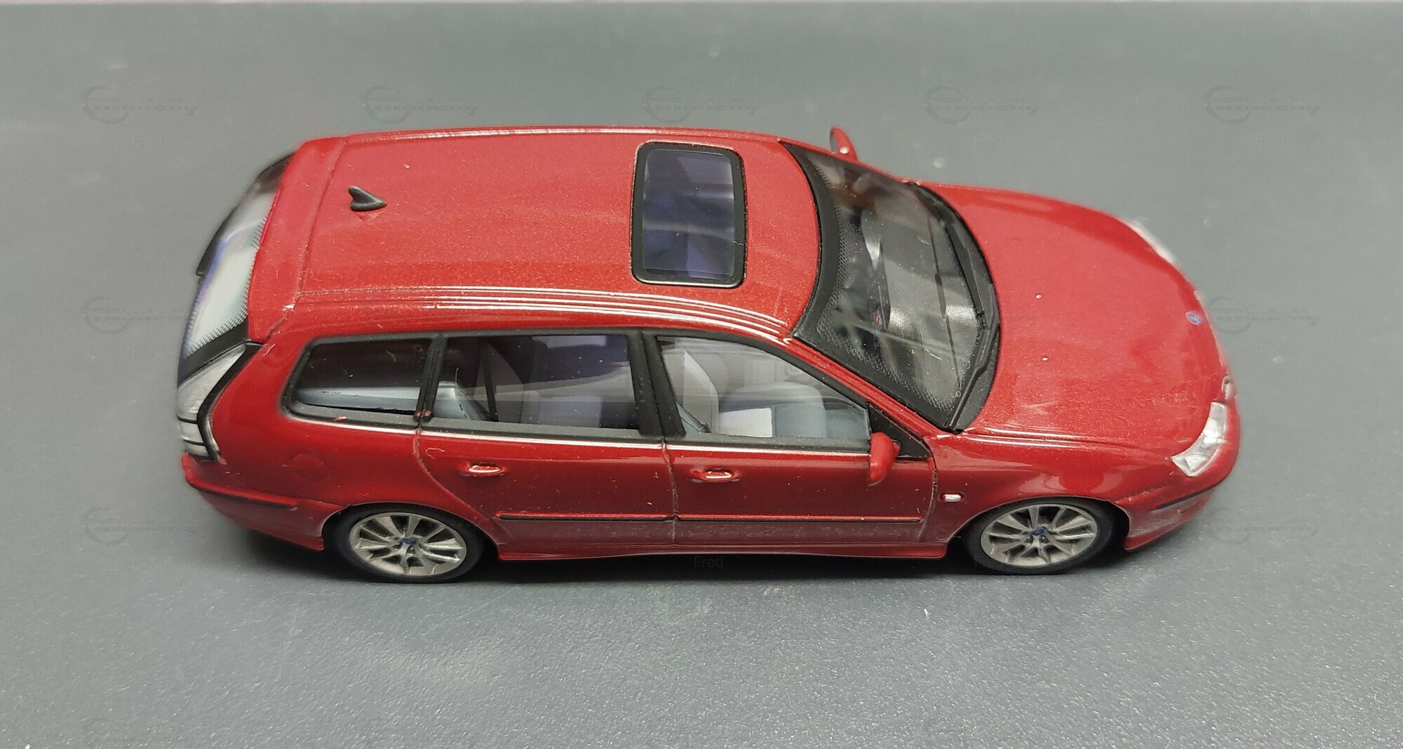 Dieses Miniaturmodell des Saab 9-3 Aero SportCombi im Maßstab 1:43 wird von Motorart hergestellt und besteht aus robustem und detailreichem Diecast-Material. Die Miniatur ist Teil der Sammlung von Modelly-Mitglied Fred. Das Modell besticht durch seine präzise Nachbildung der originalen Karosserieform und Lackierung. Die Liebe zum Detail zeigt sich besonders in den authentischen Scheinwerfern, dem Kühlergrill und den stilvoll replizierten Rädern. Die rote Lackierung des Modells entspricht dem Original und fängt die elegante sowie sportliche Erscheinung des Wagens perfekt ein. Besonders bemerkenswert sind auch die kleinen Details wie die korrekt platzierten Markenembleme und der feine Druck des Aero-Schriftzugs am Heck des Fahrzeugs.