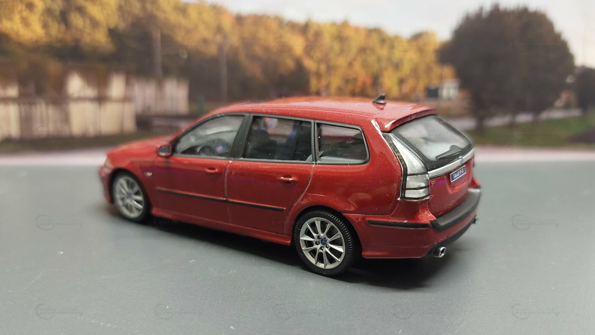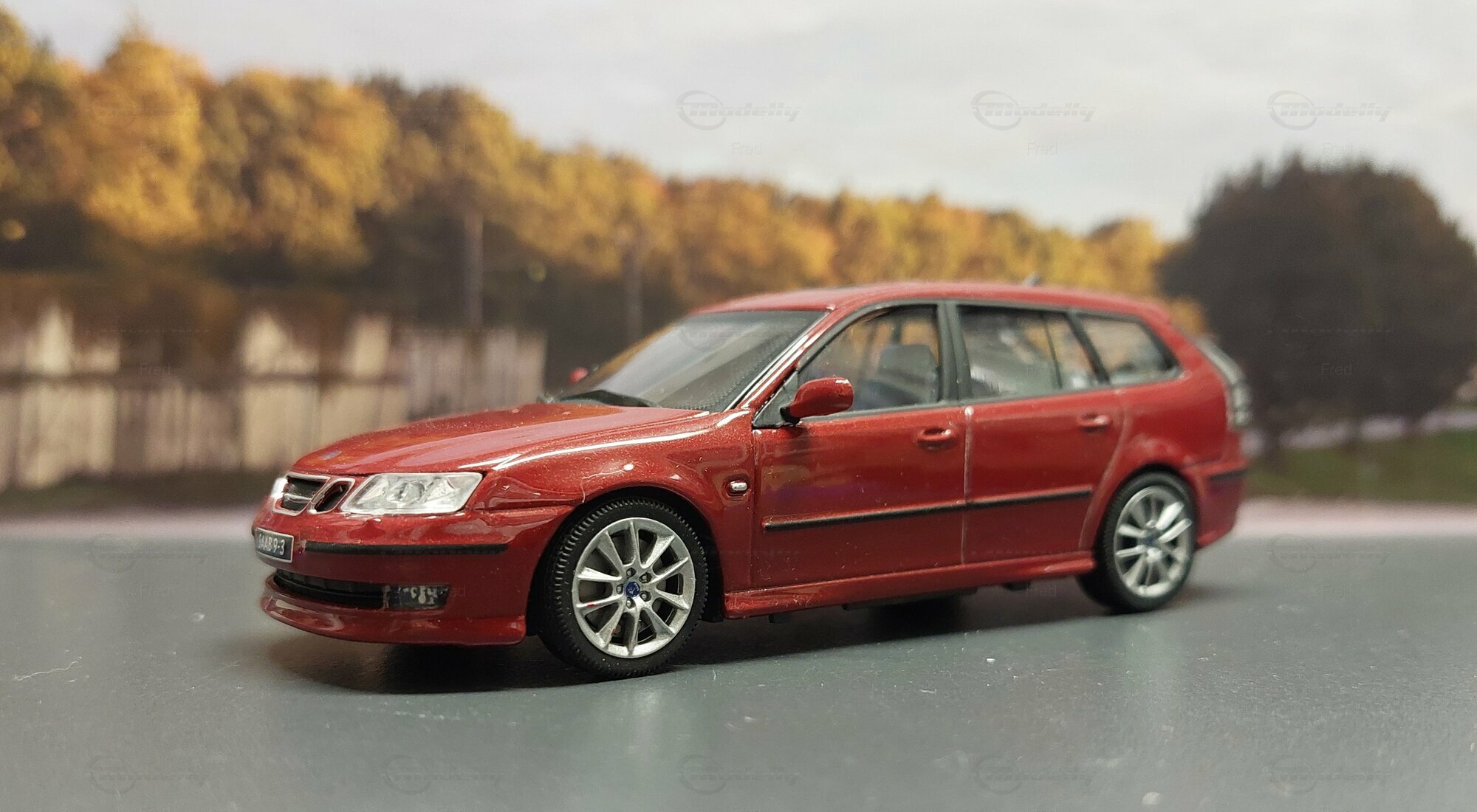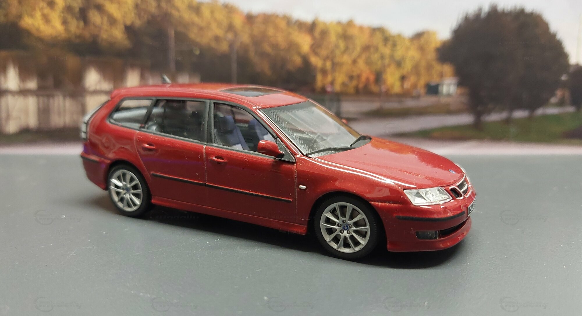 Dieses Miniaturmodell des Saab 9-3 Aero SportCombi im Maßstab 1:43 wird von Motorart hergestellt und besteht aus robustem und detailreichem Diecast-Material. Die Miniatur ist Teil der Sammlung von Modelly-Mitglied Fred. Das Modell besticht durch seine präzise Nachbildung der originalen Karosserieform und Lackierung. Die Liebe zum Detail zeigt sich besonders in den authentischen Scheinwerfern, dem Kühlergrill und den stilvoll replizierten Rädern. Die rote Lackierung des Modells entspricht dem Original und fängt die elegante sowie sportliche Erscheinung des Wagens perfekt ein. Besonders bemerkenswert sind auch die kleinen Details wie die korrekt platzierten Markenembleme und der feine Druck des Aero-Schriftzugs am Heck des Fahrzeugs.