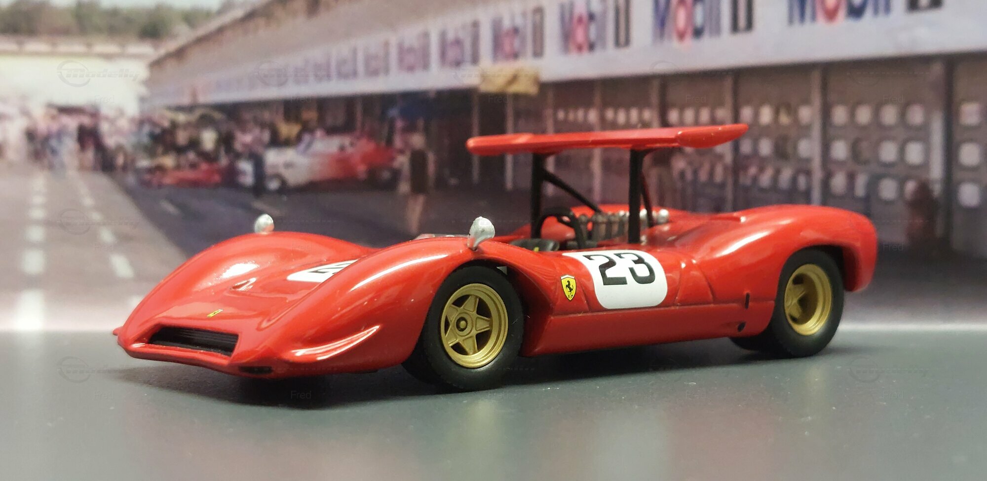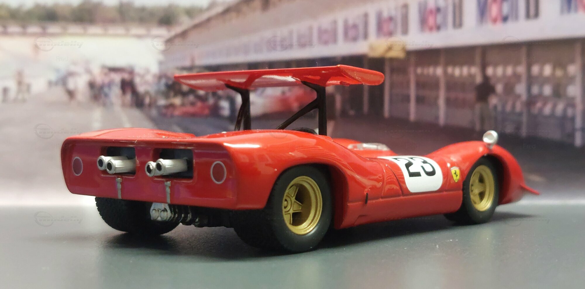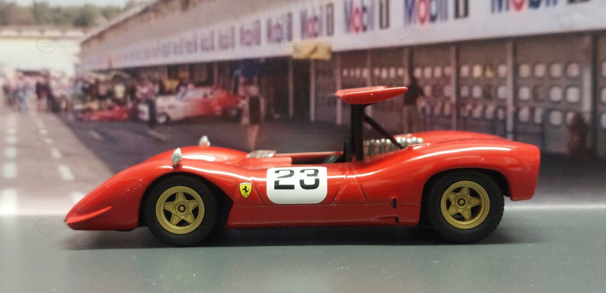 Die Startnummer 23 auf beiden Seiten und der Front des Modells erinnert an die historischen Einsätze in den aufregenden Rennen der 1960er Jahre. Insgesamt zeigt das Modell im Maßstab 1:43 von SpecialC eine hohe Liebe zum Detail, die jedem Modellauto-Sammler und Ferrari-Enthusiasten gefallen dürfte.