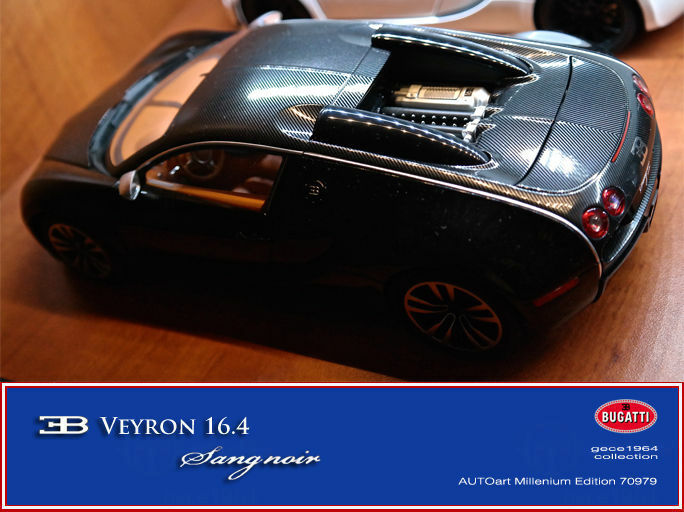 Der EB 16.4 Veyron "Sang Noir" von Autoart ist ein Sondermodell für den wahren Kenner exquisiter Automobil Modelle und präsentiert Bugatti von seiner dunkleren Seite. Wo die vollkommene Schwärze der Außenhaut auf den ersten Blick gedämpft wirken mag, offenbart sich bei näherem Hinsehen eine ausgewählte Anzahl visueller Akzente wie das Carbon, die diesen besonderen