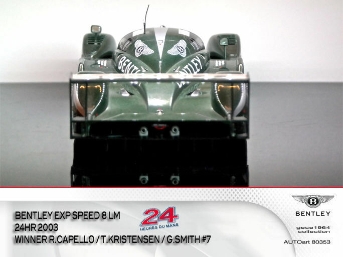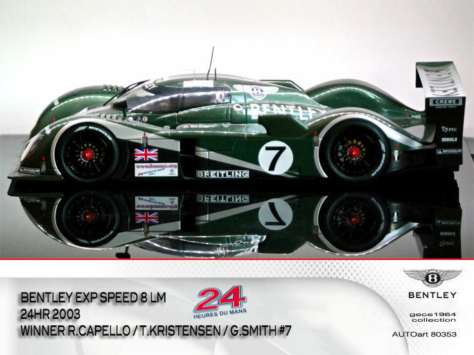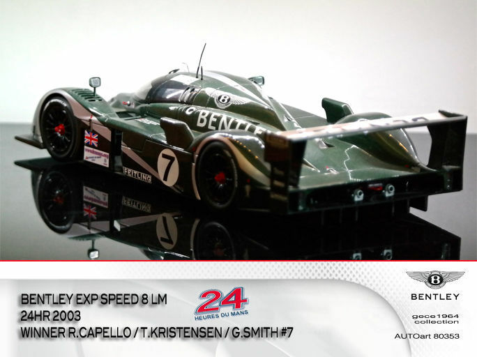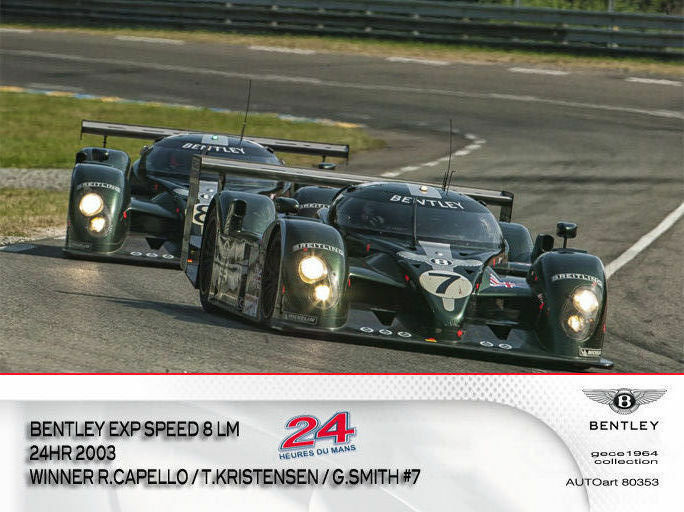 Während Audi entschied, 2003 nicht als Werksteam am 24-Stunden-Rennen von Le Mans teilzunehmen, war das zu Volkswagen gehörende Tochterunternehmen Bentley der einzig verbleibende Hersteller in der LMP-Klasse. Unterstützt von Joest Racing, das bislang alle Le-Mans-Prototypen-Einsätze bei Audi betreute, und den Audi-Werksfahrern Tom Kristensen und Rinaldo Capello startete der Bentley Speed 8 in Le Mans von der Pole-Position. Nach dem Start lagen die beiden Rennwagen beinahe während des ganzen Rennens in Führung, obwohl eines der Fahrzeuge Probleme an der Elektrik hatte. Nach 377 Runden gewann der Speed 8 mit der Startnummer 7, gefahren von Rinaldo Capello, Tom Kristensen und Guy Smith. Den Doppelsieg komplettierte das Schwesterfahrzeug mit der Startnummer 8, in dem Mark Blundell, David Brabham und Johnny Herbert am Steuer saßen. Nach drei Gesamtsiegen von Audi war der Sieg von Bentley der vierte Erfolg für die Volkswagen-Gruppe. Jedoch endete mit dem Gesamtgewinn auch das Bentley-Engagement und die Rennprototypen wurden danach ausschließlich im Rahmen historischer Veranstaltungen eingesetzt. So tritt der Speed 8 beispielsweise regelmäßig beim Goodwood Festival of Speed an.