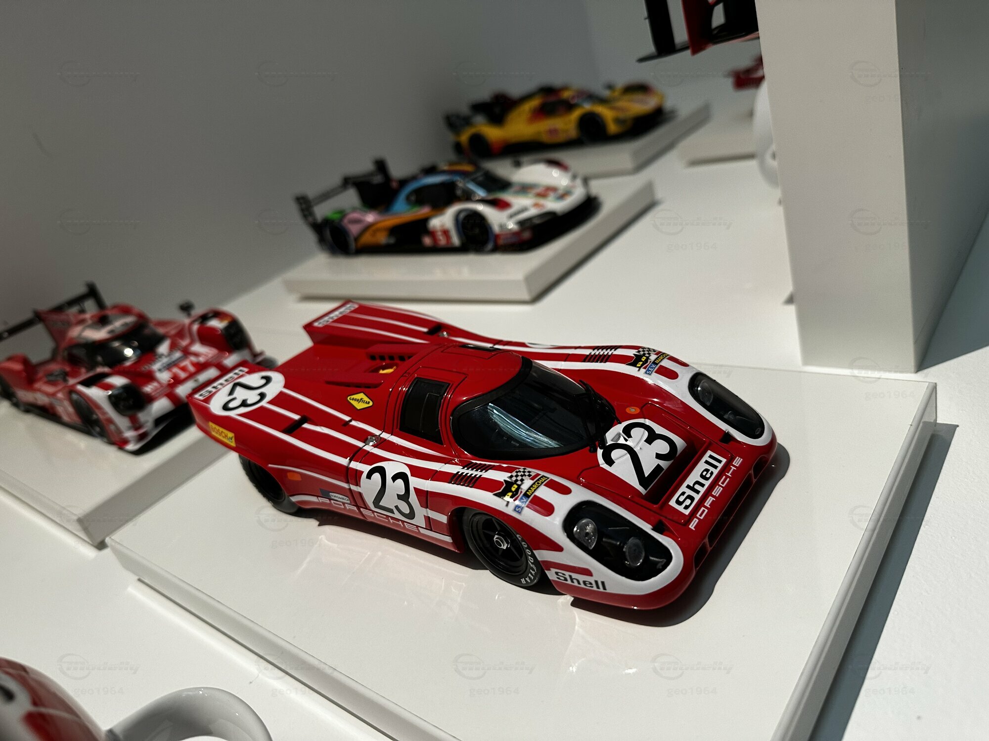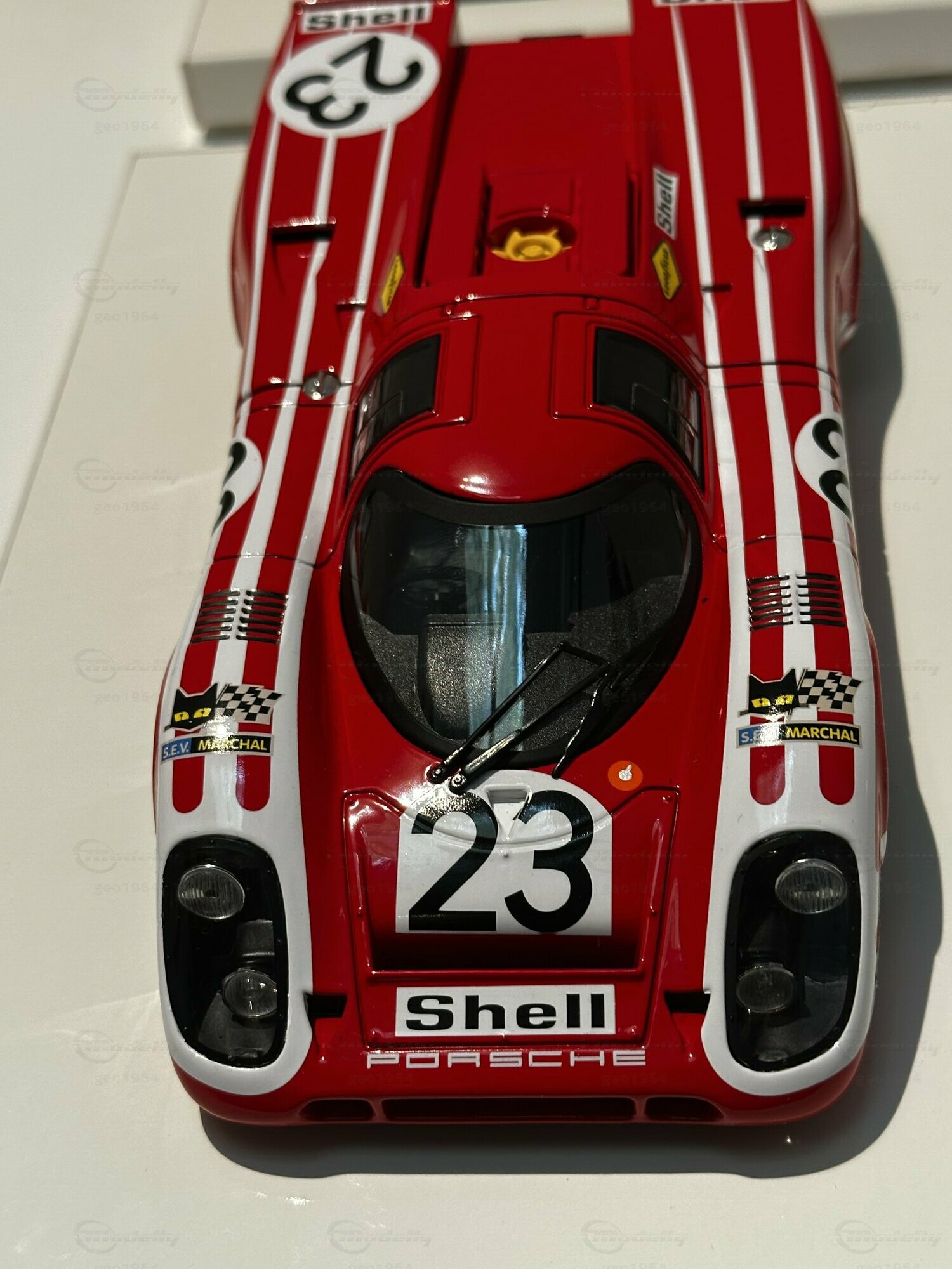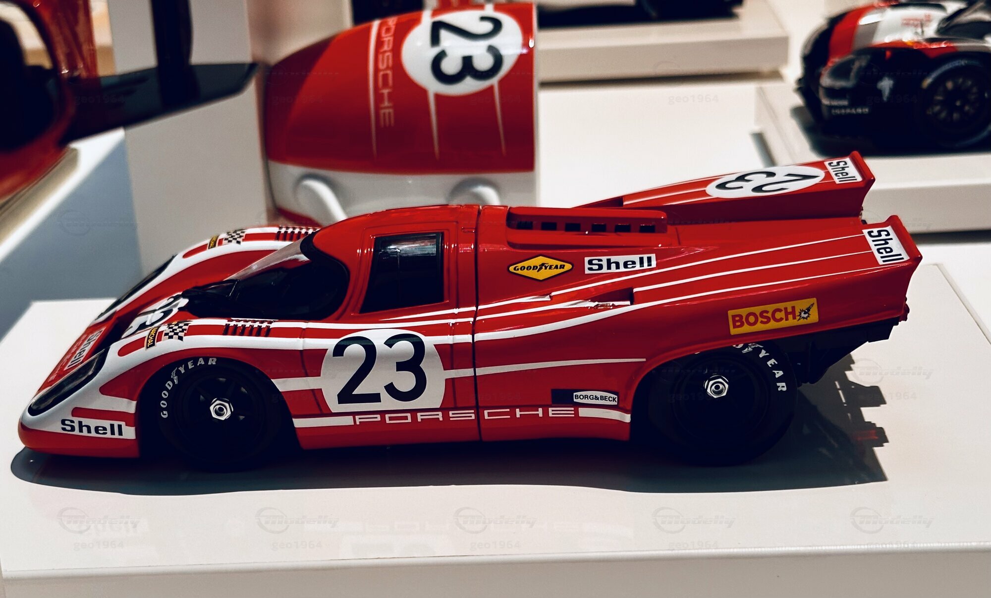 Miniaturmodell im Maßstab 1:18 des Porsche 917K #23 vom Team Porsche Konstruktionen K.G. bekannt als "Salzburg" mit den Fahrern Richard Attwood und Hans Herrmann.