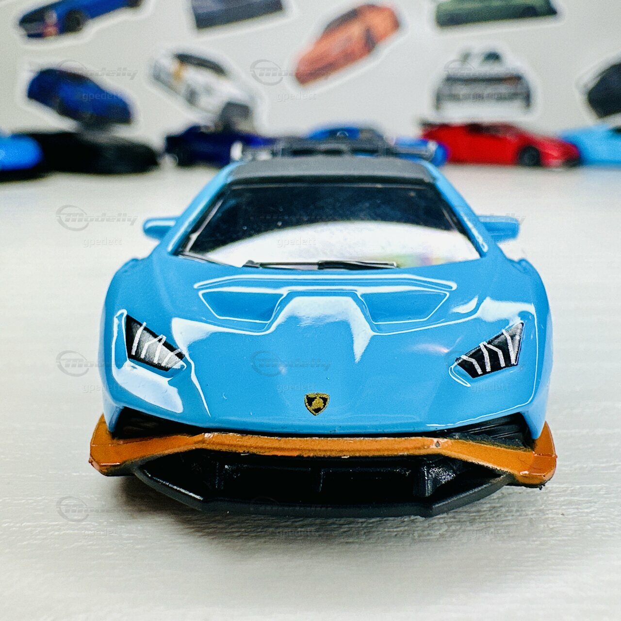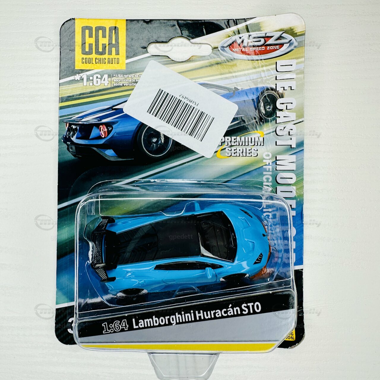 Die aerodynamischen Verbesserungen des Lamborghini Huracán STO umfassen eine verbesserte Luftzirkulation, welche durch das überarbeitete Design des vorderen Splitters, der Motorhaube, des Heckflügels und der Heckeinlasskappe begünstigt wird. Diese Funktionselemente sind auch auf der 1:64 Skala Miniatur von CCA nachgebildet. Designer des Originals waren unter anderem Mitja Borkert, der als Leiter des Lamborghini-Designteams tätig ist. Die Farbkombinationen der Karosserie können individuell angepasst werden, wobei die abgebildete Miniatur in einem auffälligen Blau mit schwarzen und orangenen Akzenten präsentiert wird.