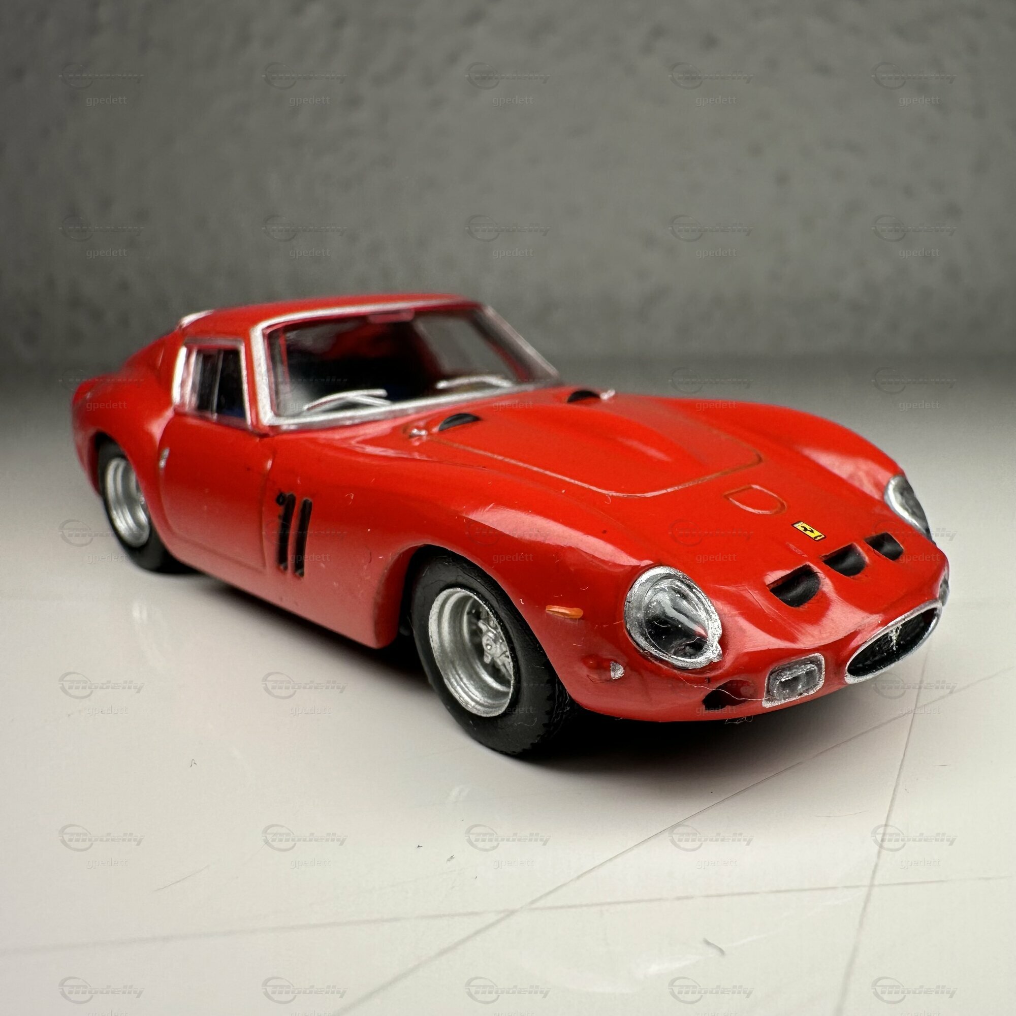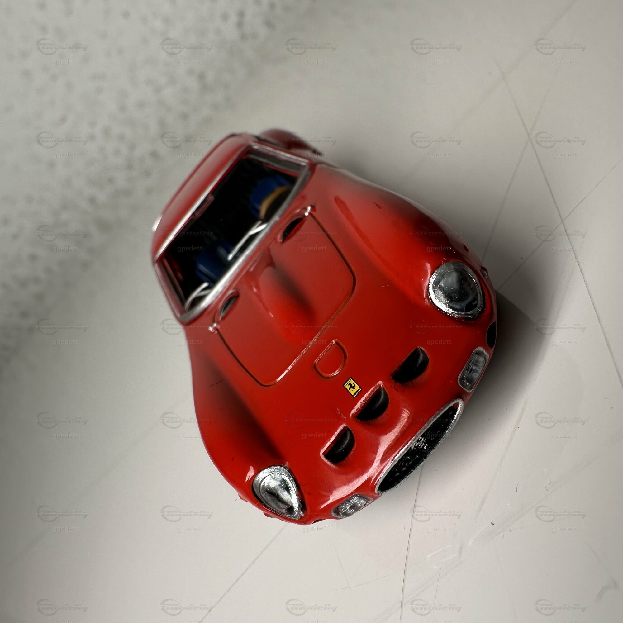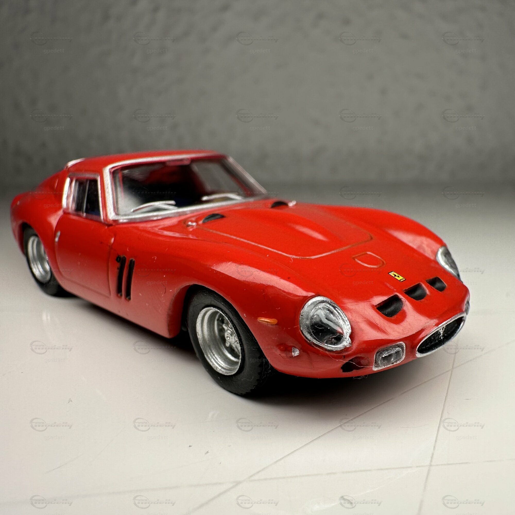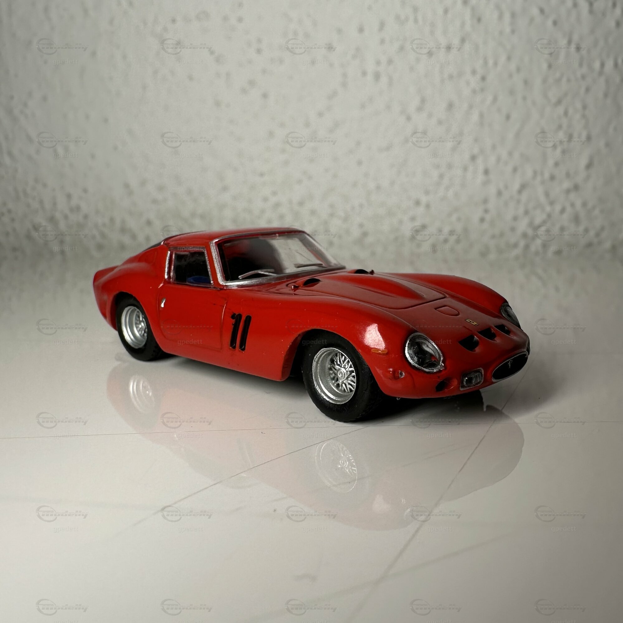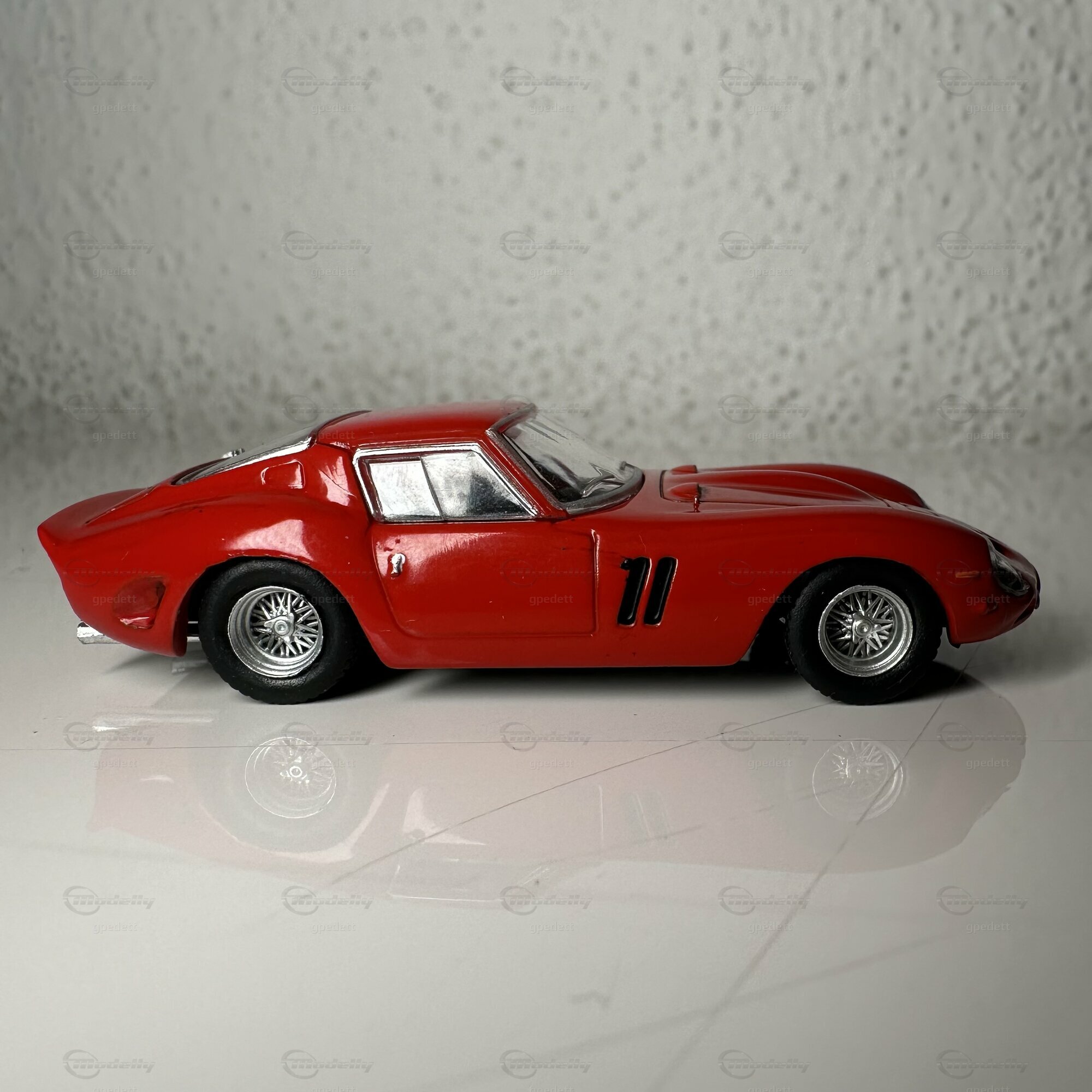 Die hier gezeigte Miniatur im Maßstab 1:64 stammt vom Hersteller Centauria und repräsentiert den Ferrari 250 GTO in beeindruckender Detailtreue. Diese Modellfahrzeug wurde aus dem Material Diecast gefertigt, was dafür sorgt, dass die Miniatur robust und langlebig ist. Das Modell besticht durch seine präzise Nachbildung der Linien und Kurven des Originals. Besondere Merkmale, wie die auffälligen Lufteinlässe auf der Motorhaube und die tief liegenden Scheinwerfer, sind akkurat nachgebildet und vermitteln einen authentischen Eindruck des legendären Sportwagens. Ein weiteres interessantes Detail ist die Nummer "11" an den Seiten, welche das Modell zu einem echten Sammlerstück für jeden Enthusiasten macht.