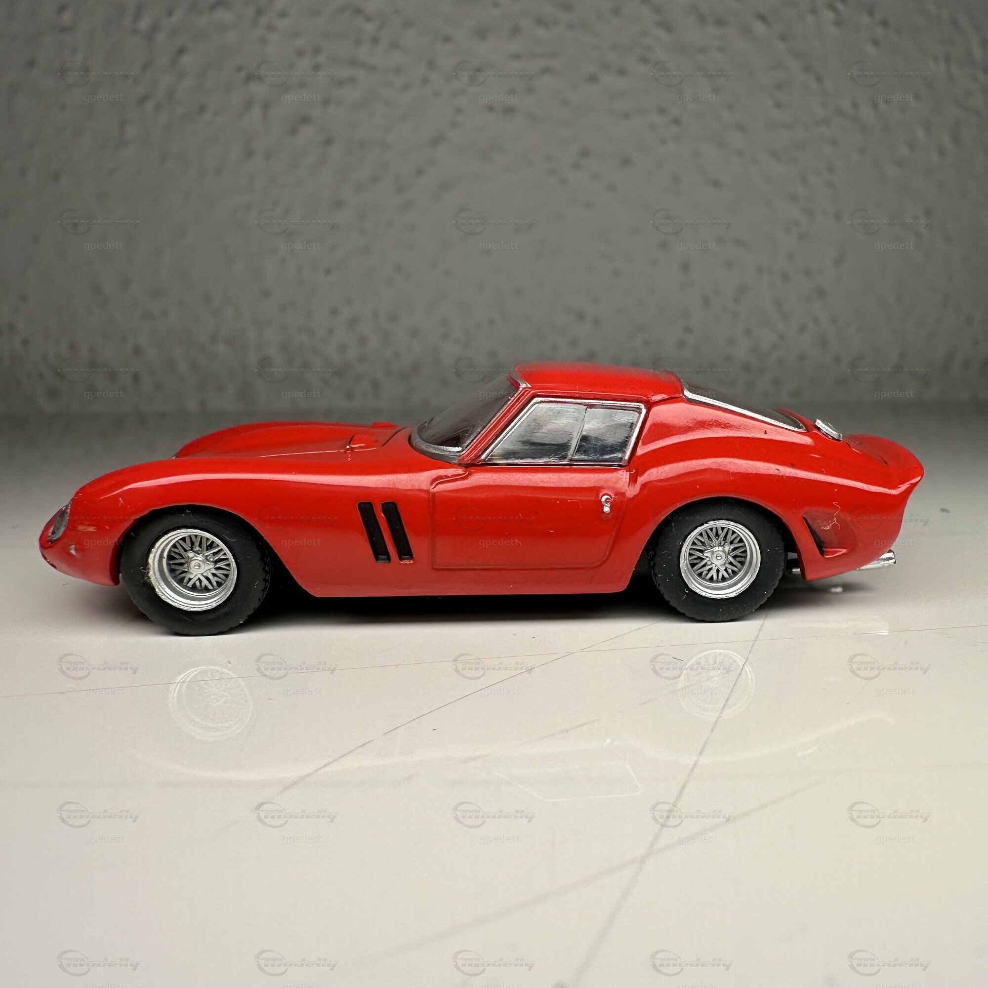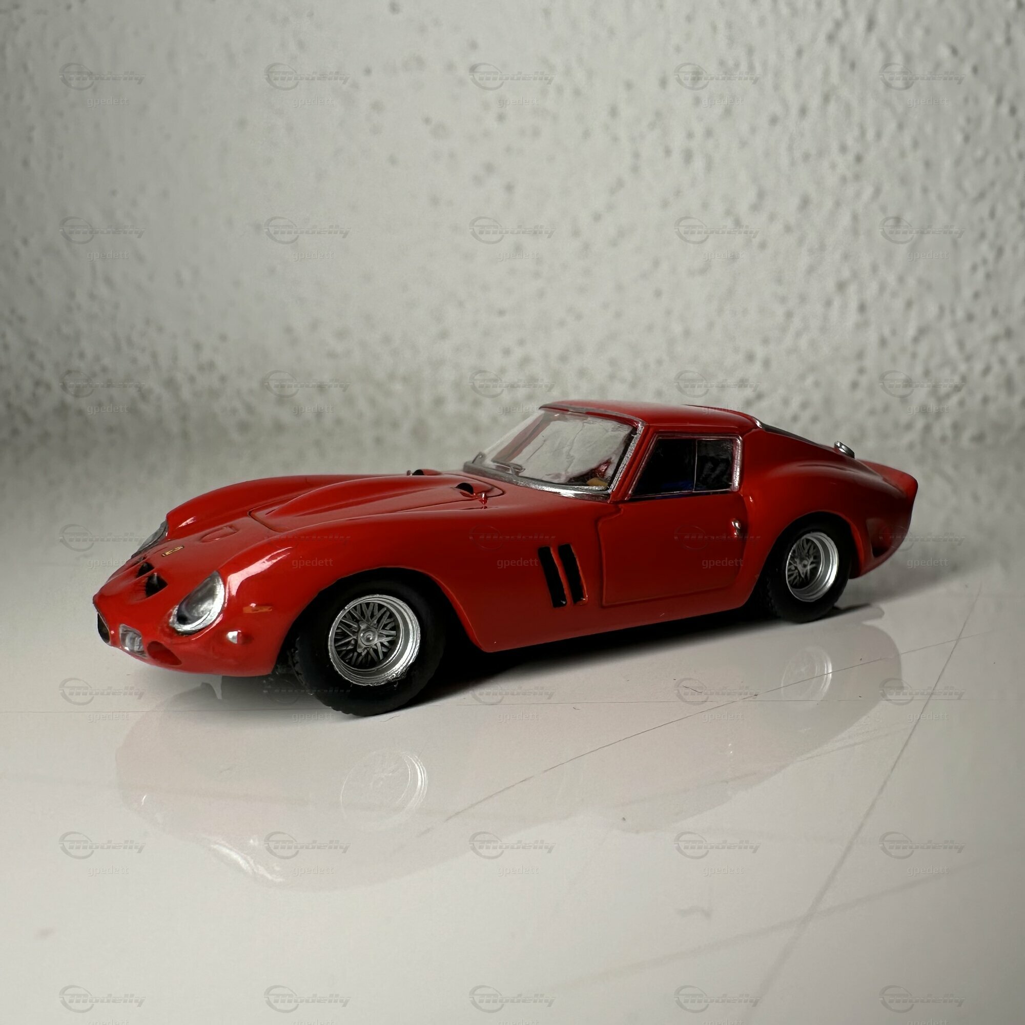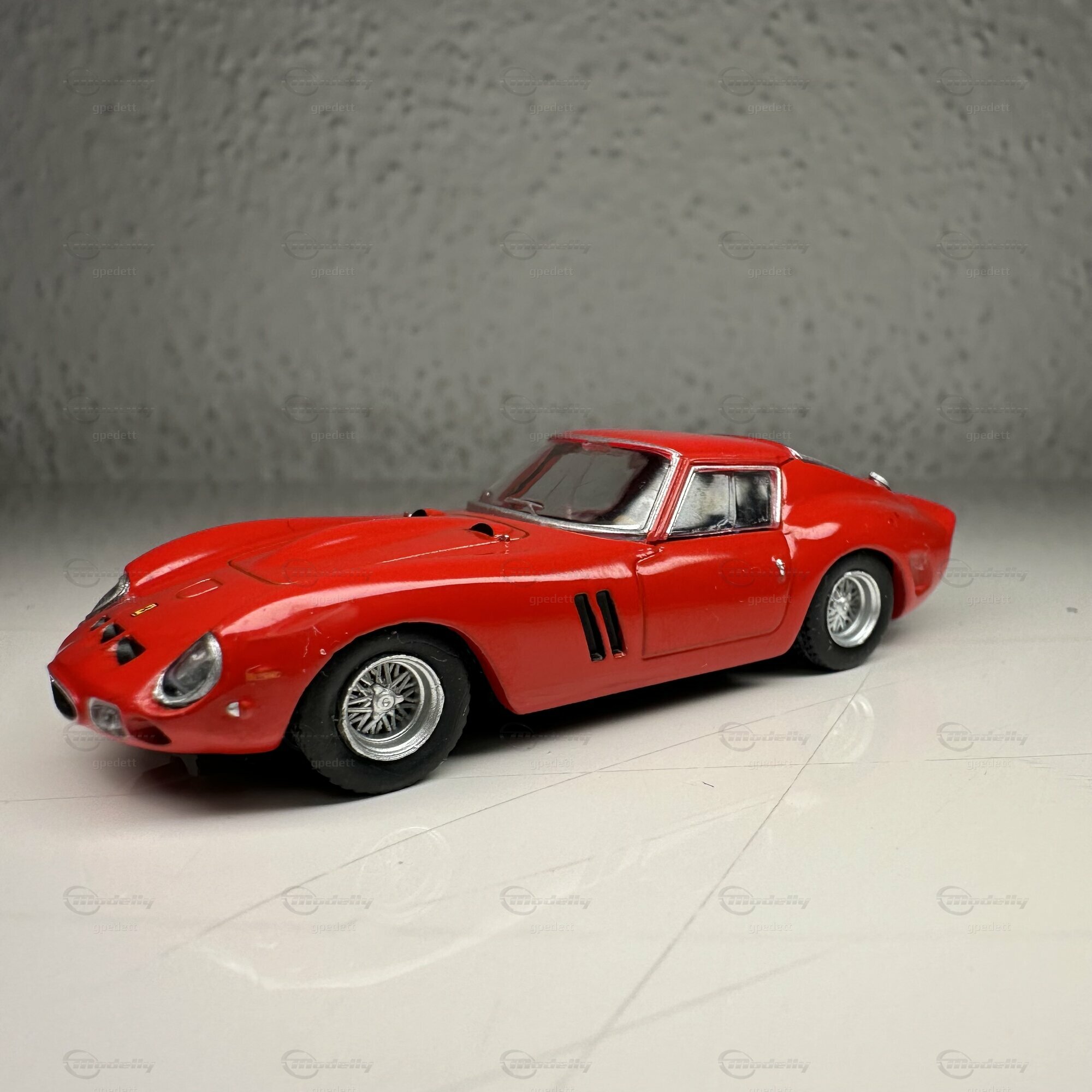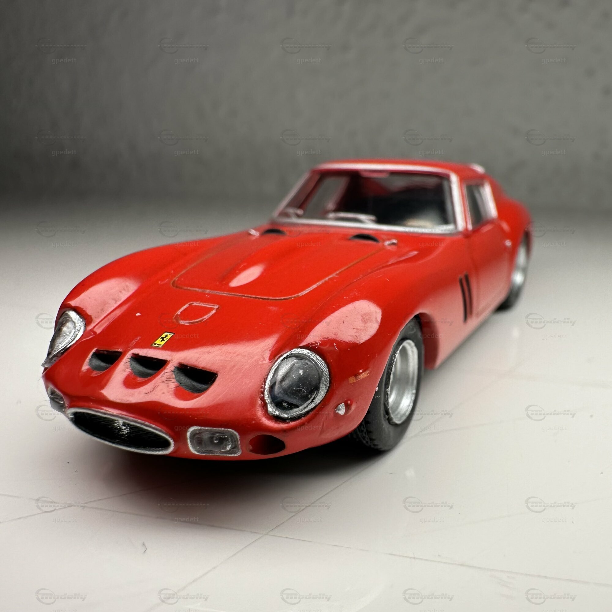 Die hier gezeigte Miniatur im Maßstab 1:64 stammt vom Hersteller Centauria und repräsentiert den Ferrari 250 GTO in beeindruckender Detailtreue. Diese Modellfahrzeug wurde aus dem Material Diecast gefertigt, was dafür sorgt, dass die Miniatur robust und langlebig ist. Das Modell besticht durch seine präzise Nachbildung der Linien und Kurven des Originals. Besondere Merkmale, wie die auffälligen Lufteinlässe auf der Motorhaube und die tief liegenden Scheinwerfer, sind akkurat nachgebildet und vermitteln einen authentischen Eindruck des legendären Sportwagens. Ein weiteres interessantes Detail ist die Nummer "11" an den Seiten, welche das Modell zu einem echten Sammlerstück für jeden Enthusiasten macht.