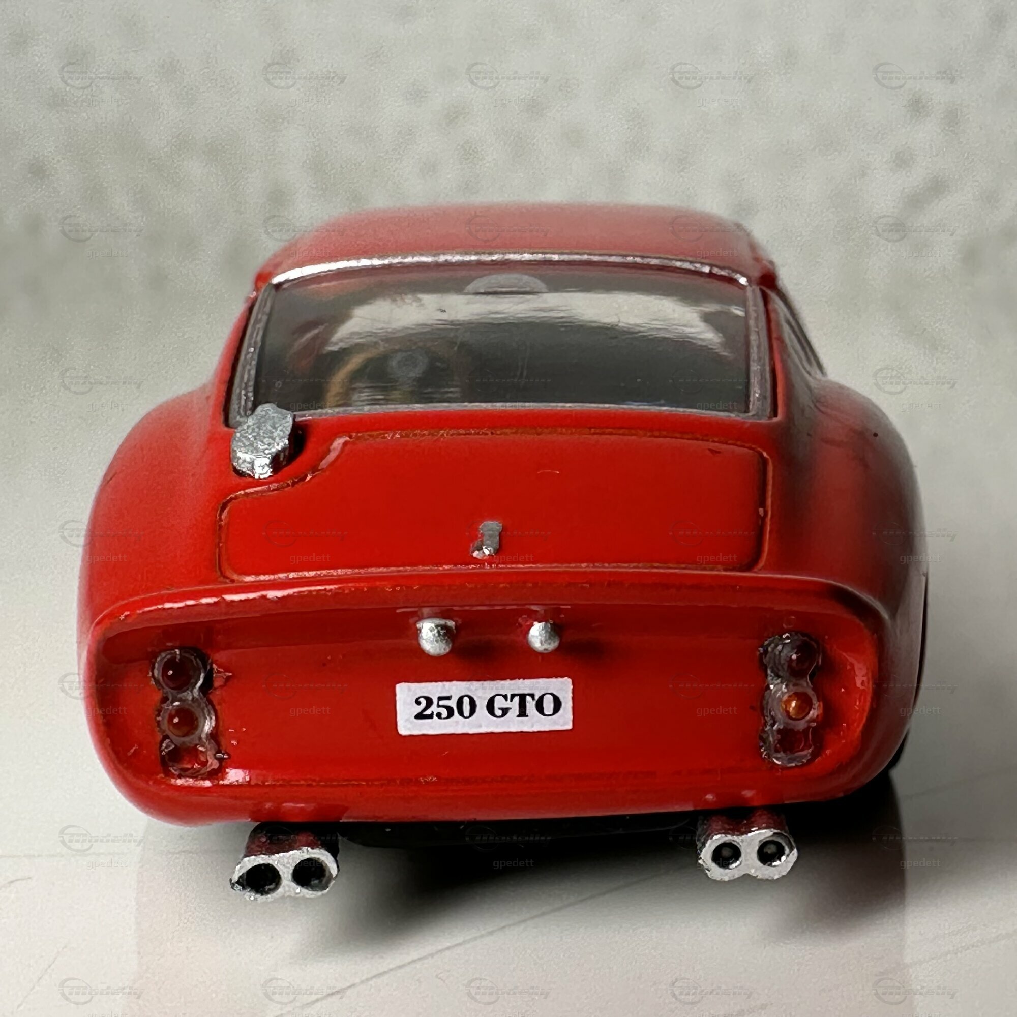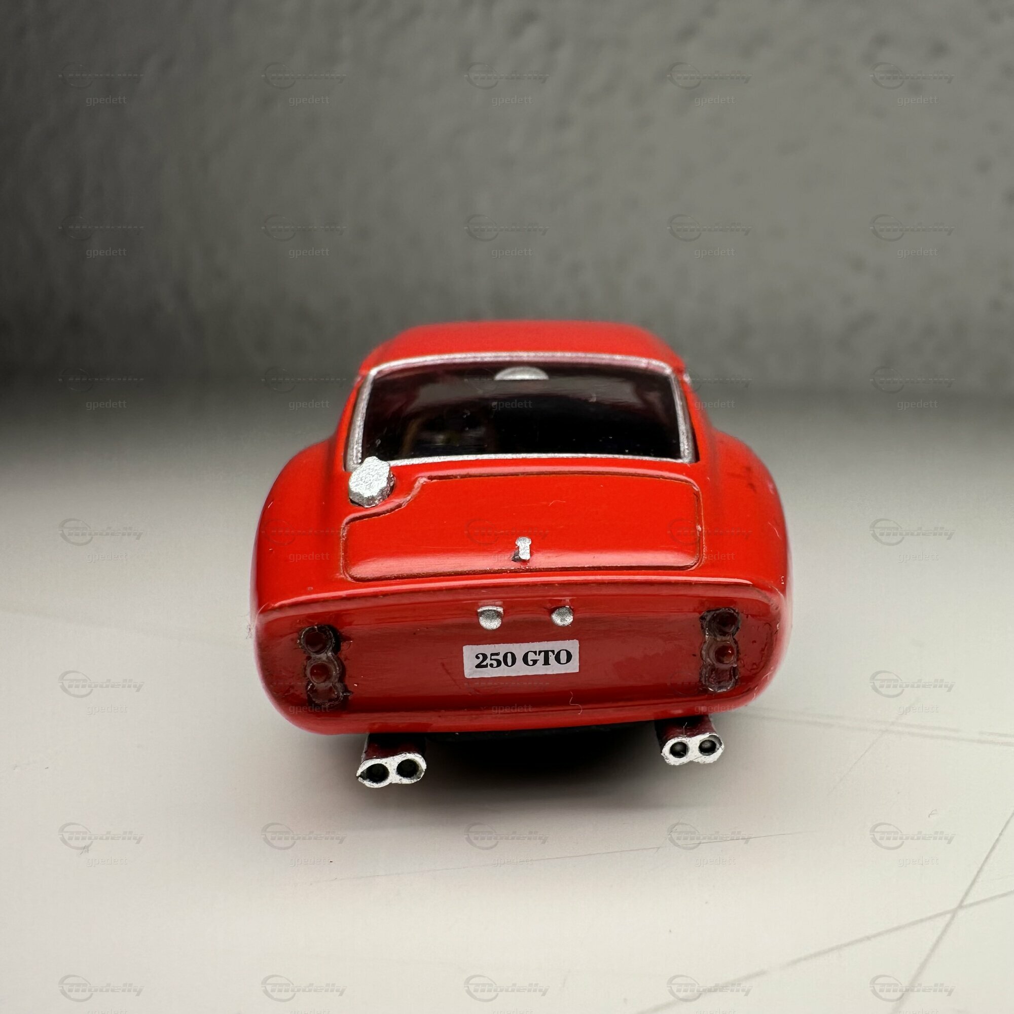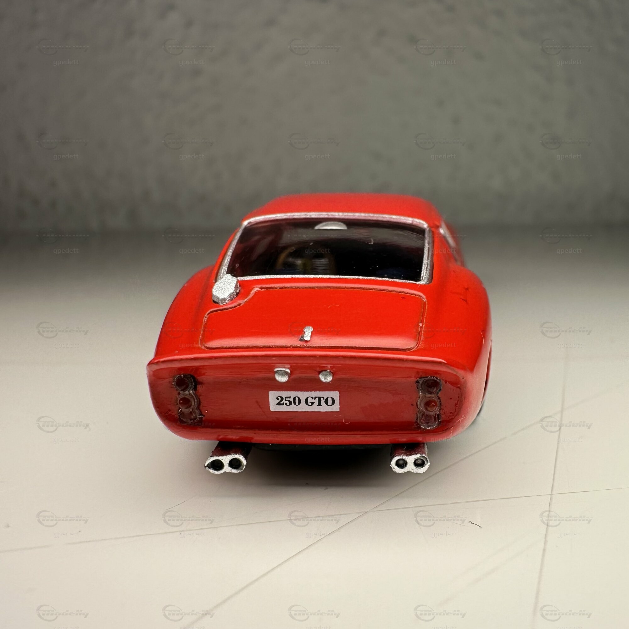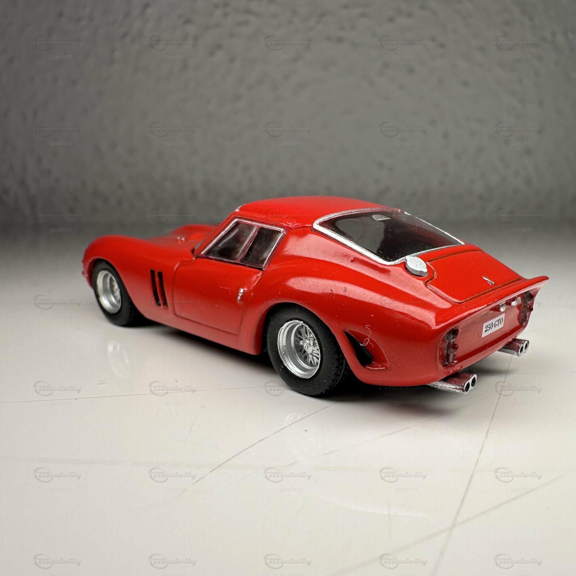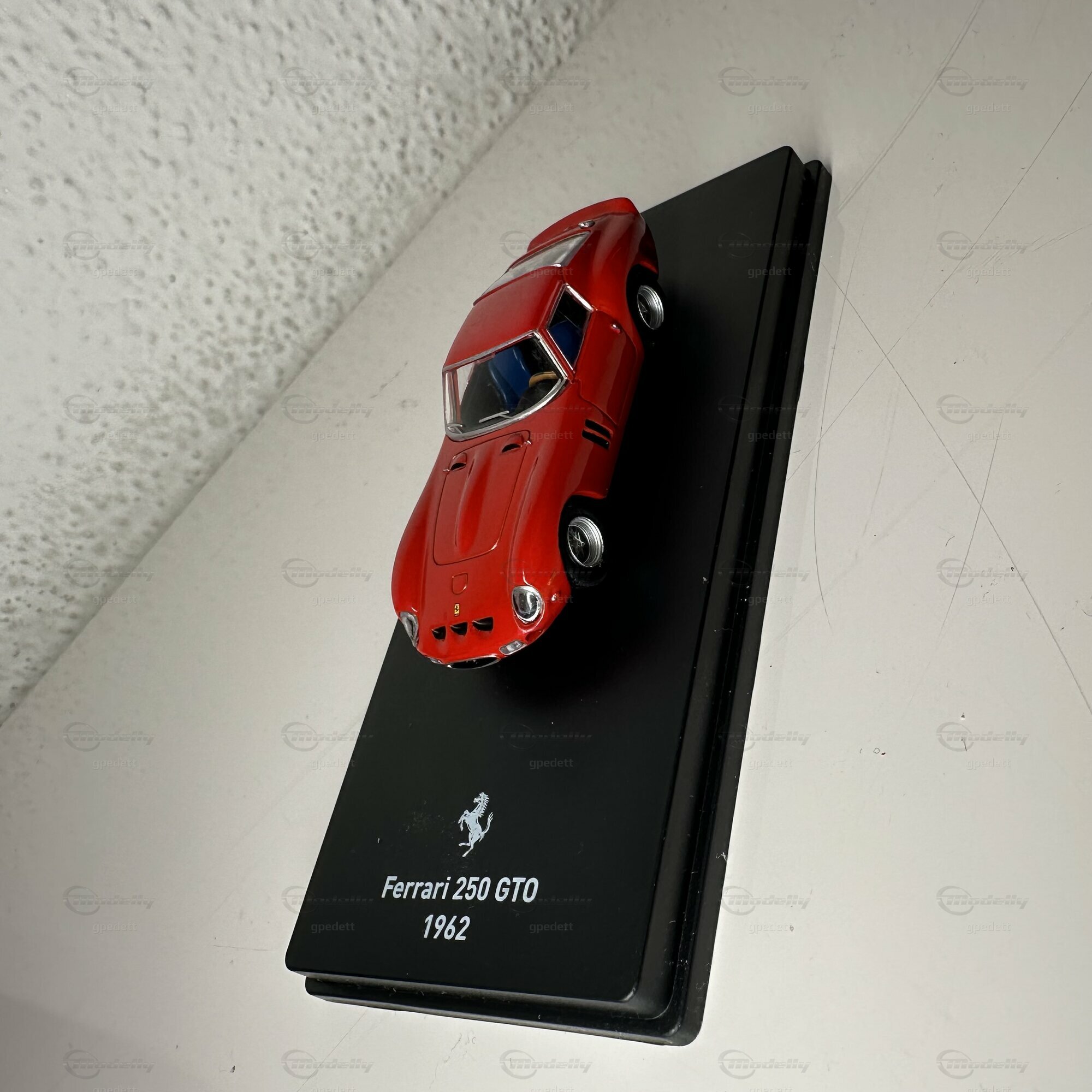 Die hier gezeigte Miniatur im Maßstab 1:64 stammt vom Hersteller Centauria und repräsentiert den Ferrari 250 GTO in beeindruckender Detailtreue. Diese Modellfahrzeug wurde aus dem Material Diecast gefertigt, was dafür sorgt, dass die Miniatur robust und langlebig ist. Das Modell besticht durch seine präzise Nachbildung der Linien und Kurven des Originals. Besondere Merkmale, wie die auffälligen Lufteinlässe auf der Motorhaube und die tief liegenden Scheinwerfer, sind akkurat nachgebildet und vermitteln einen authentischen Eindruck des legendären Sportwagens. Ein weiteres interessantes Detail ist die Nummer "11" an den Seiten, welche das Modell zu einem echten Sammlerstück für jeden Enthusiasten macht.