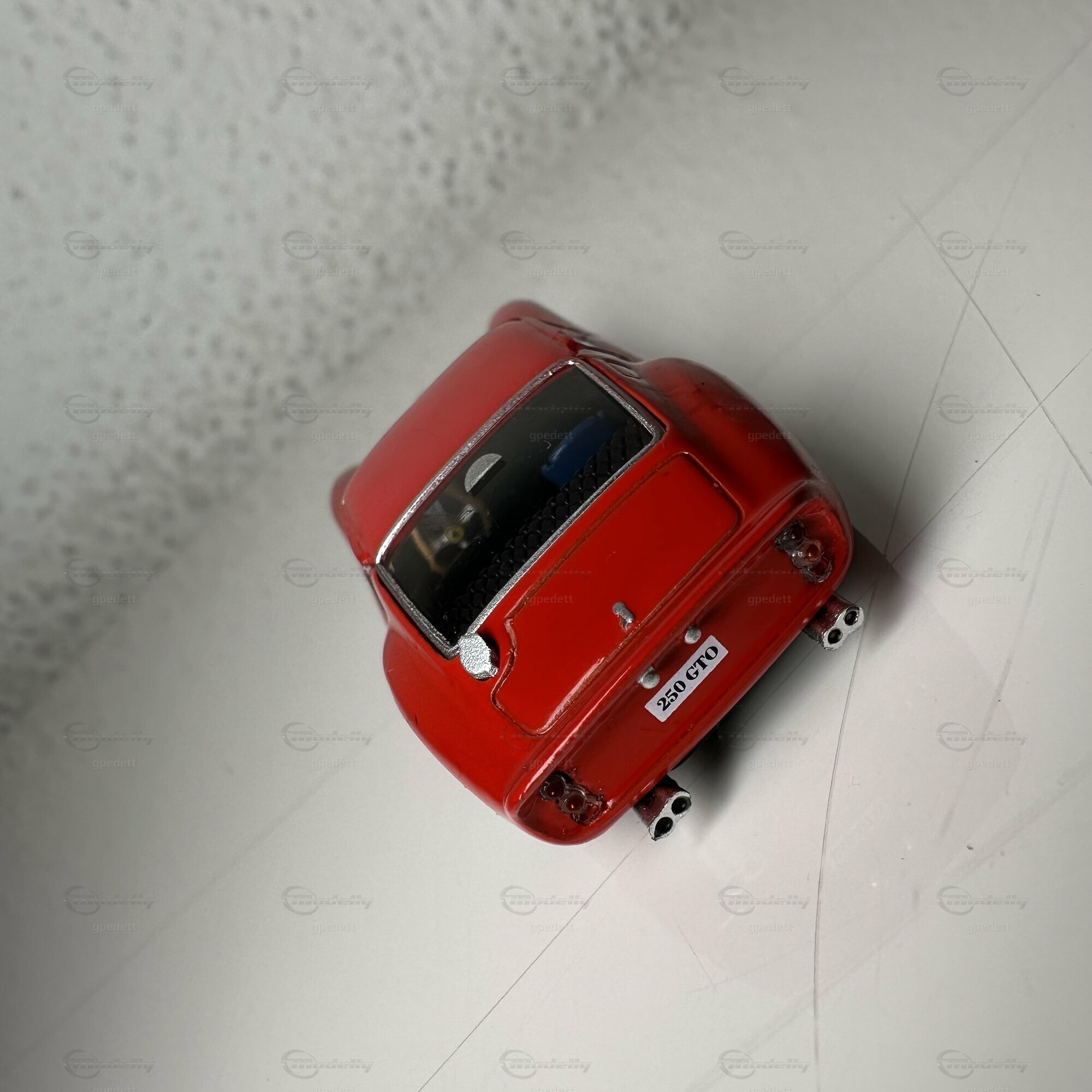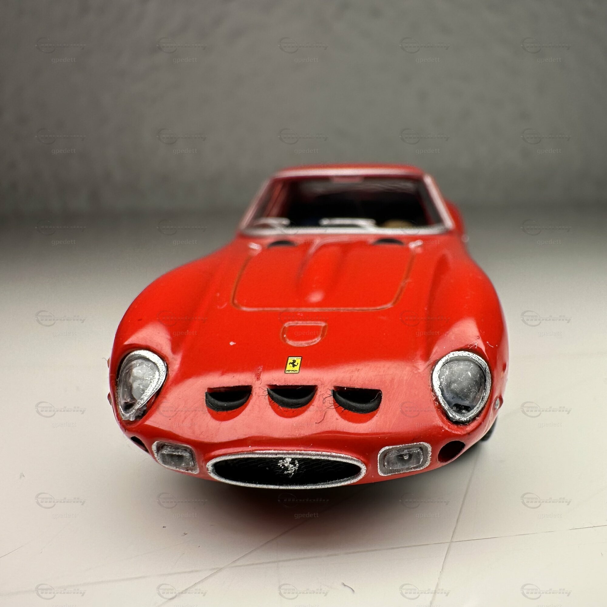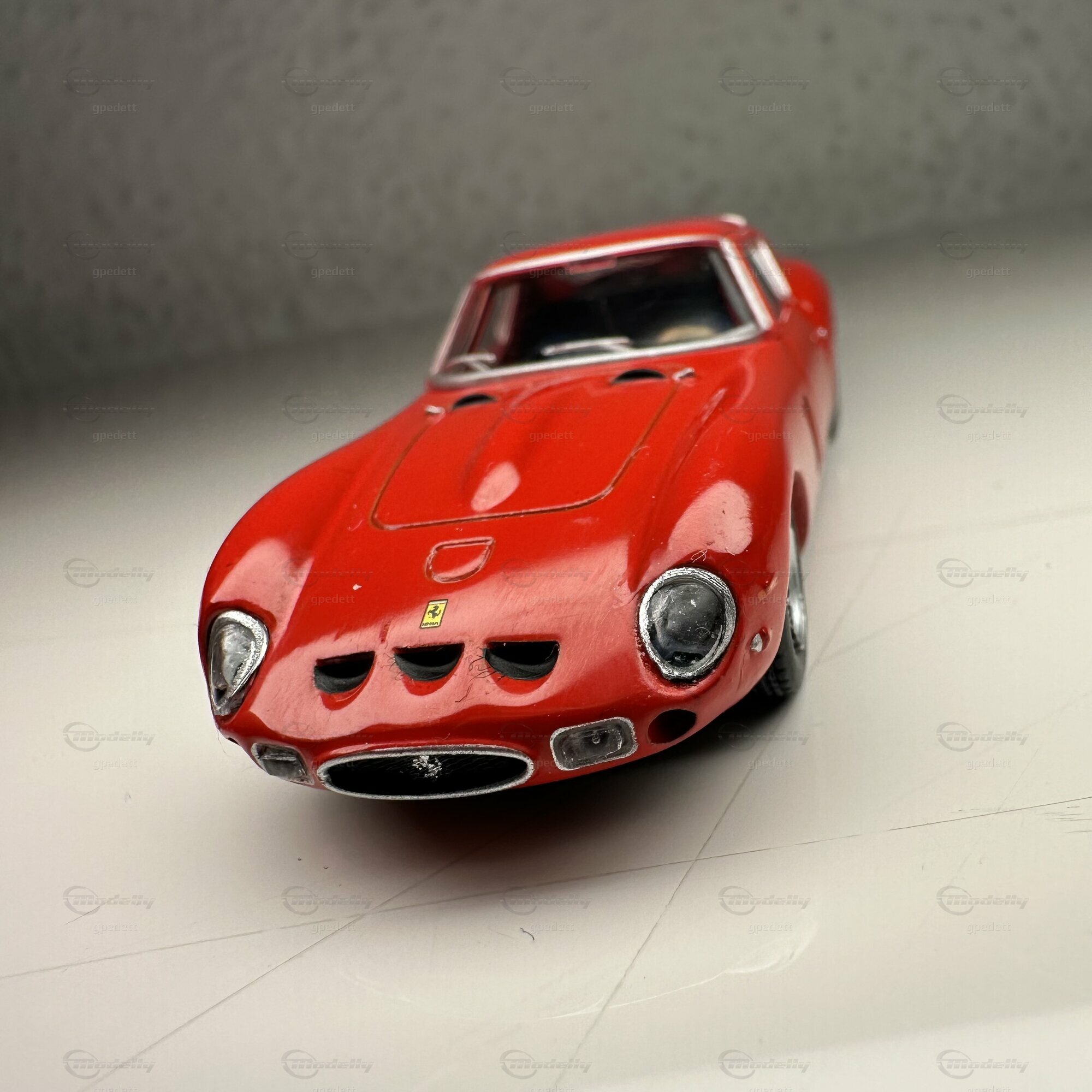 Das Modell im Maßstab 1:64 von Centauria, Teil der Sammlung von Modelly-Mitglied "gpedett", zeigt die unverwechselbare Ästhetik des Ferrari 250 GTO. Die auffällige rote Lackierung sticht sofort ins Auge und die präzise platzierten Abzeichen und Logos unterstreichen den luxuriösen Charakter des Modells. Die geschwungenen Linien und die detaillierten Speichenräder verleihen der Miniatur eine beeindruckende Authentizität. Der markante Grill und die angedeuteten Lufteinlässe sind detailgetreu nachempfunden und verleihen diesem Modell ein echtes Gefühl von Exklusivität. Für Sammler und Fans ist dieses Diecast-Modell ein Muss in der eigenen Vitrine. Es ist ein Stück Automobilgeschichte im handlichen Format, das den Geist des Rennsports und die Eleganz italienischen Designs perfekt widerspiegelt.
