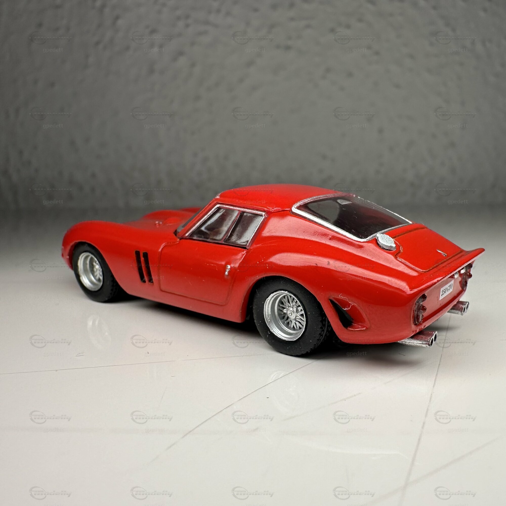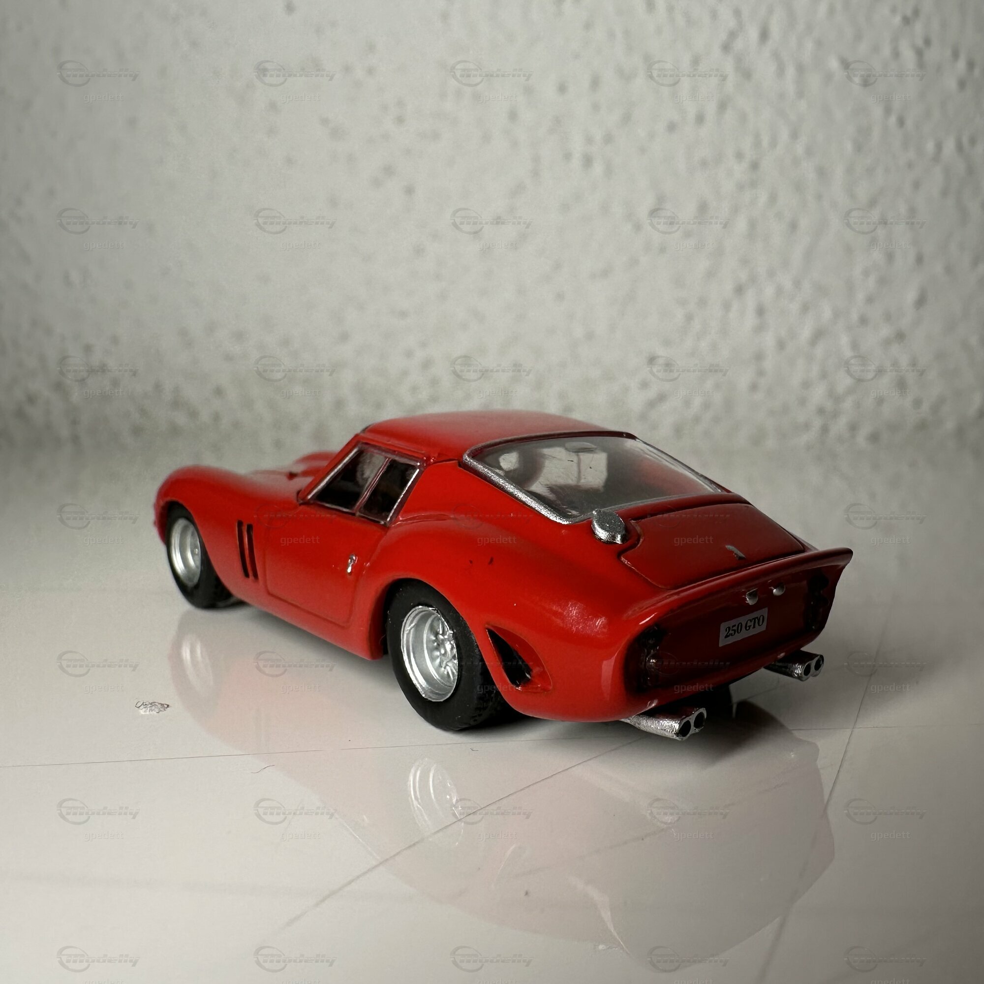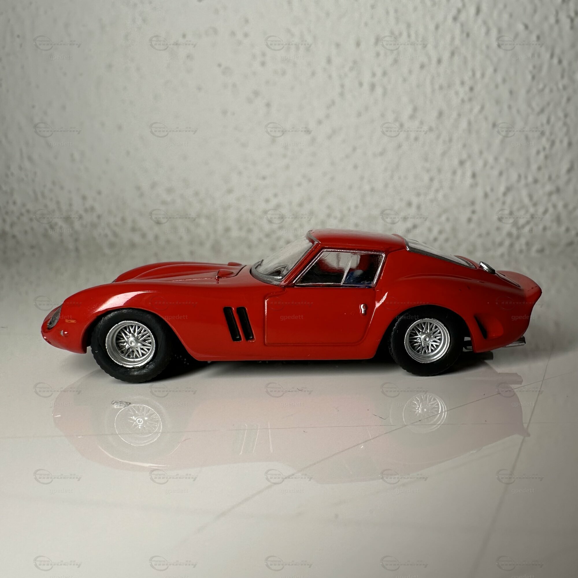 Das Modell im Maßstab 1:64 von Centauria, Teil der Sammlung von Modelly-Mitglied "gpedett", zeigt die unverwechselbare Ästhetik des Ferrari 250 GTO. Die auffällige rote Lackierung sticht sofort ins Auge und die präzise platzierten Abzeichen und Logos unterstreichen den luxuriösen Charakter des Modells. Die geschwungenen Linien und die detaillierten Speichenräder verleihen der Miniatur eine beeindruckende Authentizität. Der markante Grill und die angedeuteten Lufteinlässe sind detailgetreu nachempfunden und verleihen diesem Modell ein echtes Gefühl von Exklusivität. Für Sammler und Fans ist dieses Diecast-Modell ein Muss in der eigenen Vitrine. Es ist ein Stück Automobilgeschichte im handlichen Format, das den Geist des Rennsports und die Eleganz italienischen Designs perfekt widerspiegelt.