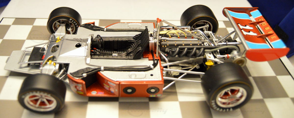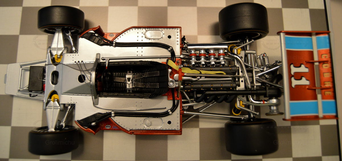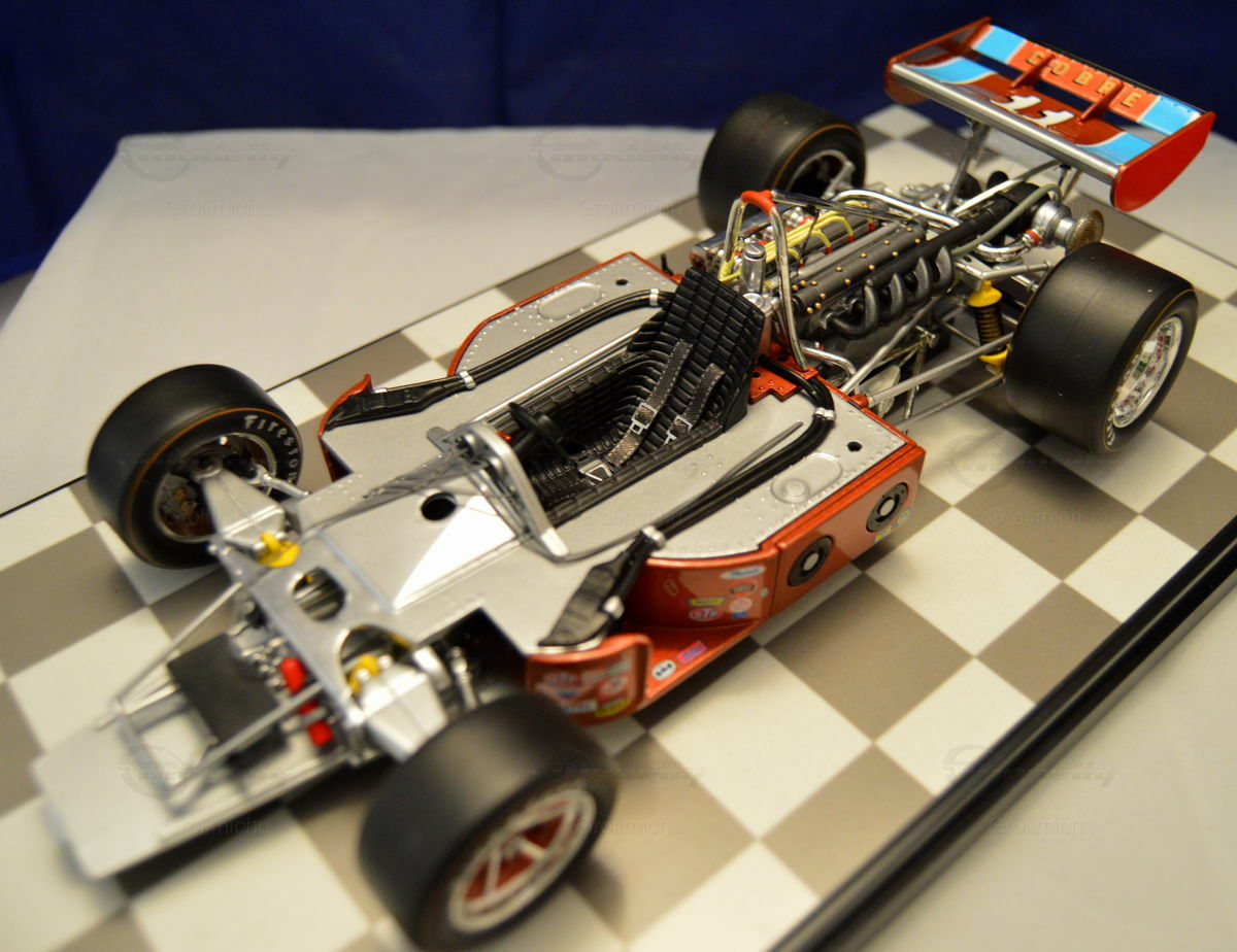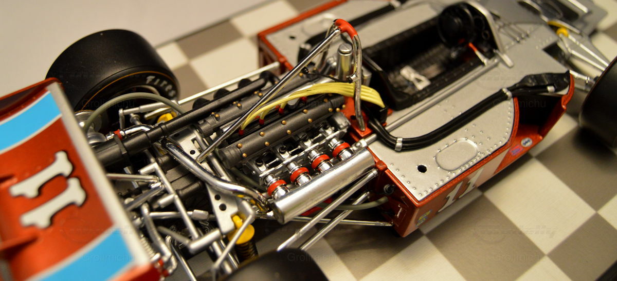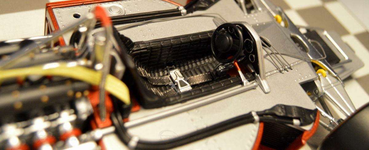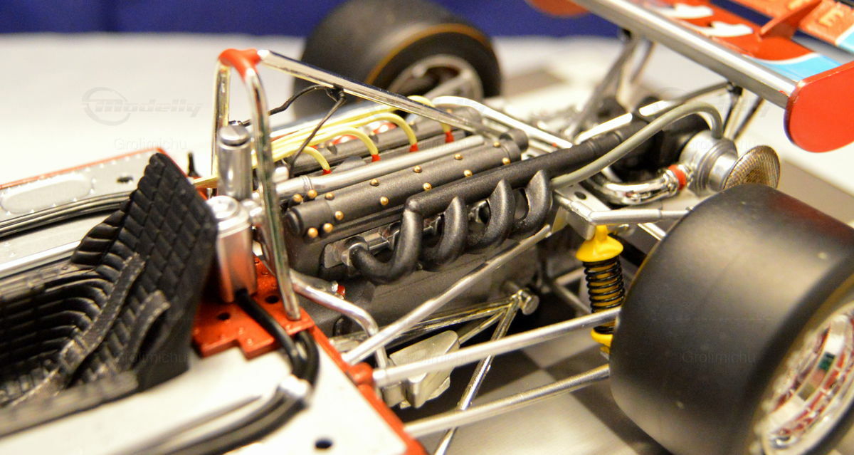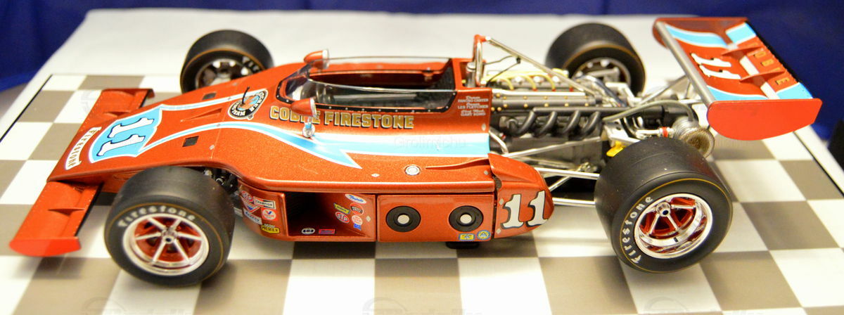 Die Produktion dieser Miniatur aus Diecast-Material sorgt für eine bemerkenswerte Stabilität und Detailtreue. Jede Komponente, von der motorischen Nachbildung bis hin zu den Aufhängungsteilen, ist sorgfältig gearbeitet und montiert. Auch die Nachbildung der Überrollbügel und die Darstellung des komplexen Motoraufbaus spiegeln die technischen Feinheiten des Originals wider. Die detailgetreuen Reifen und Felgen, versehen mit Firestone-Schriftzügen, runden das Gesamtbild ab. Dieses Modellauto in 1:18 ist ein Muss für jeden Sammler, bietet es doch einen realistischen und eindrucksvollen Blick auf eine der Ikonen des Motorsports. Ein besonderes Highlight in der Sammlung des Modelly-Mitglieds "Grolimichu".