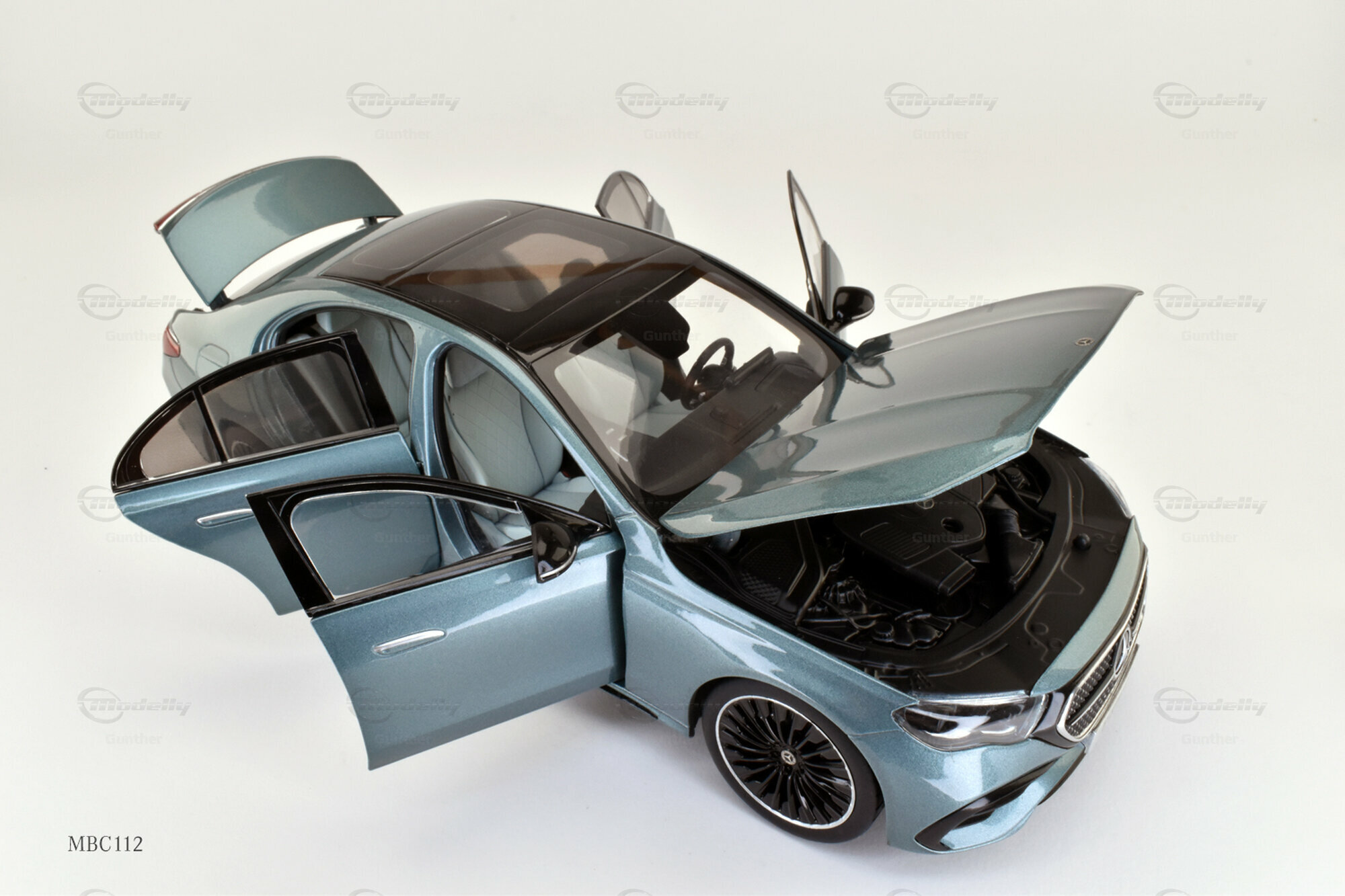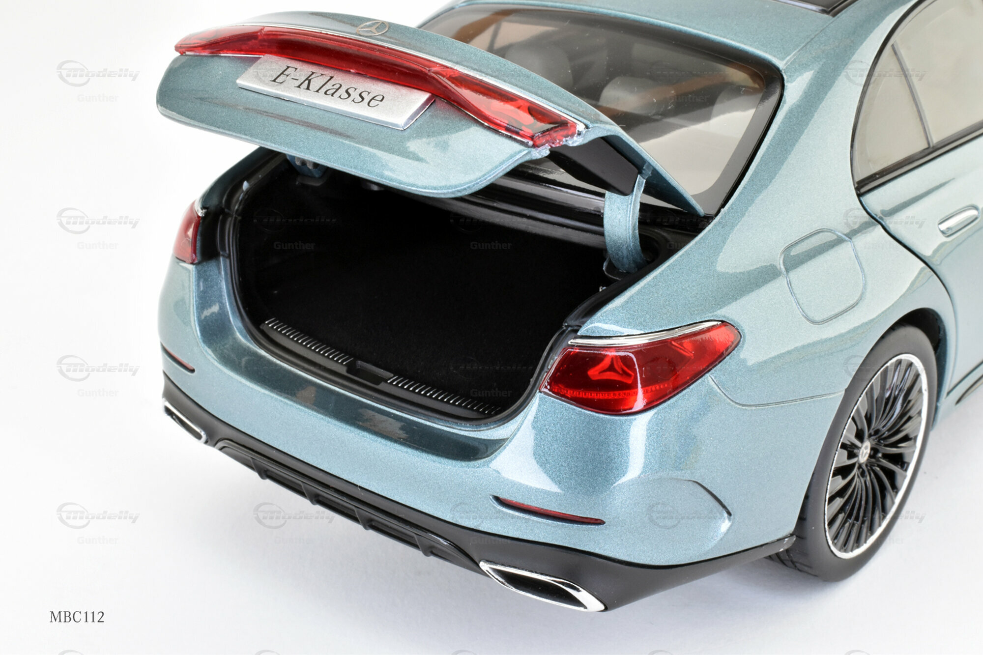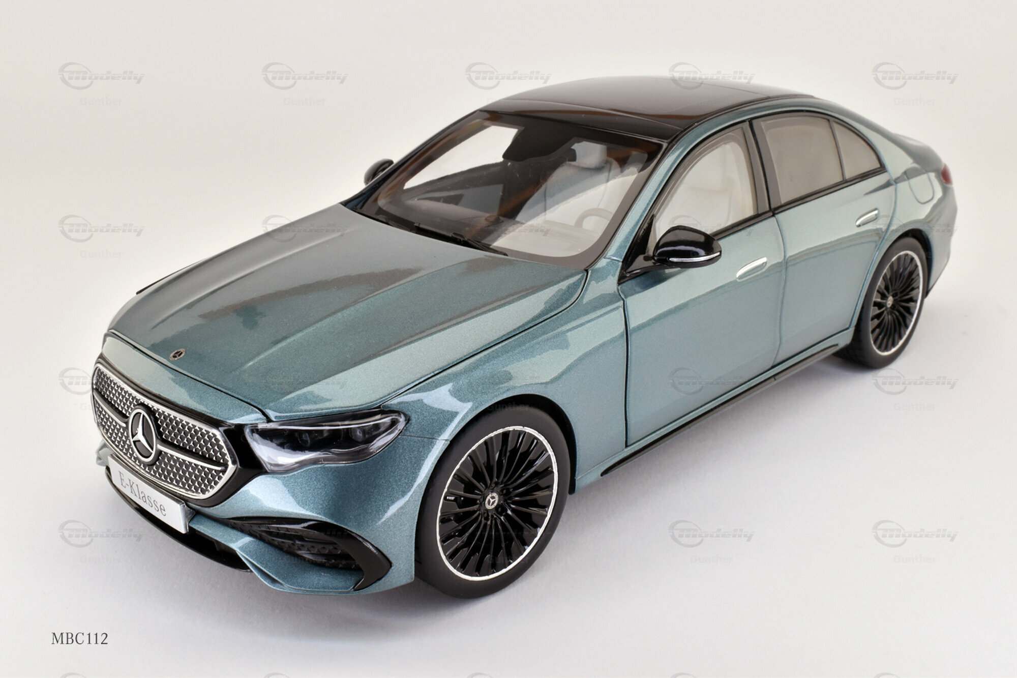 Das gezeigte Modell im Maßstab 1:18 ist eine exakte Miniatur der Mercedes-Benz E-Klasse W214, gefertig von iScale für die Mercedes-Benz Händler. Dieses Modell vereint auf eindrucksvolle Weise Detailtreue und Vielseitigkeit. Es besteht aus einer hochwertigen Materialmischung, die die Designmerkmale der echten W214 präzise nachbildet. Die Hauptfarbe in einem metallischen Blau harmoniert perfekt mit den subtilen schwarzen Akzenten des Daches und der Spiegel. Besonders ins Auge fallen die detailliert gestalteten Felgen, ausgeführt von AMG, die das sportliche Erscheinungsbild der Limousine unterstützen. Sammler auf der Plattform Modelly, wie das Mitglied "Gunther", schätzen an dieser Miniatur ihre Präzision und die Verwendung robuster Materialien, die Langlebigkeit garantieren.