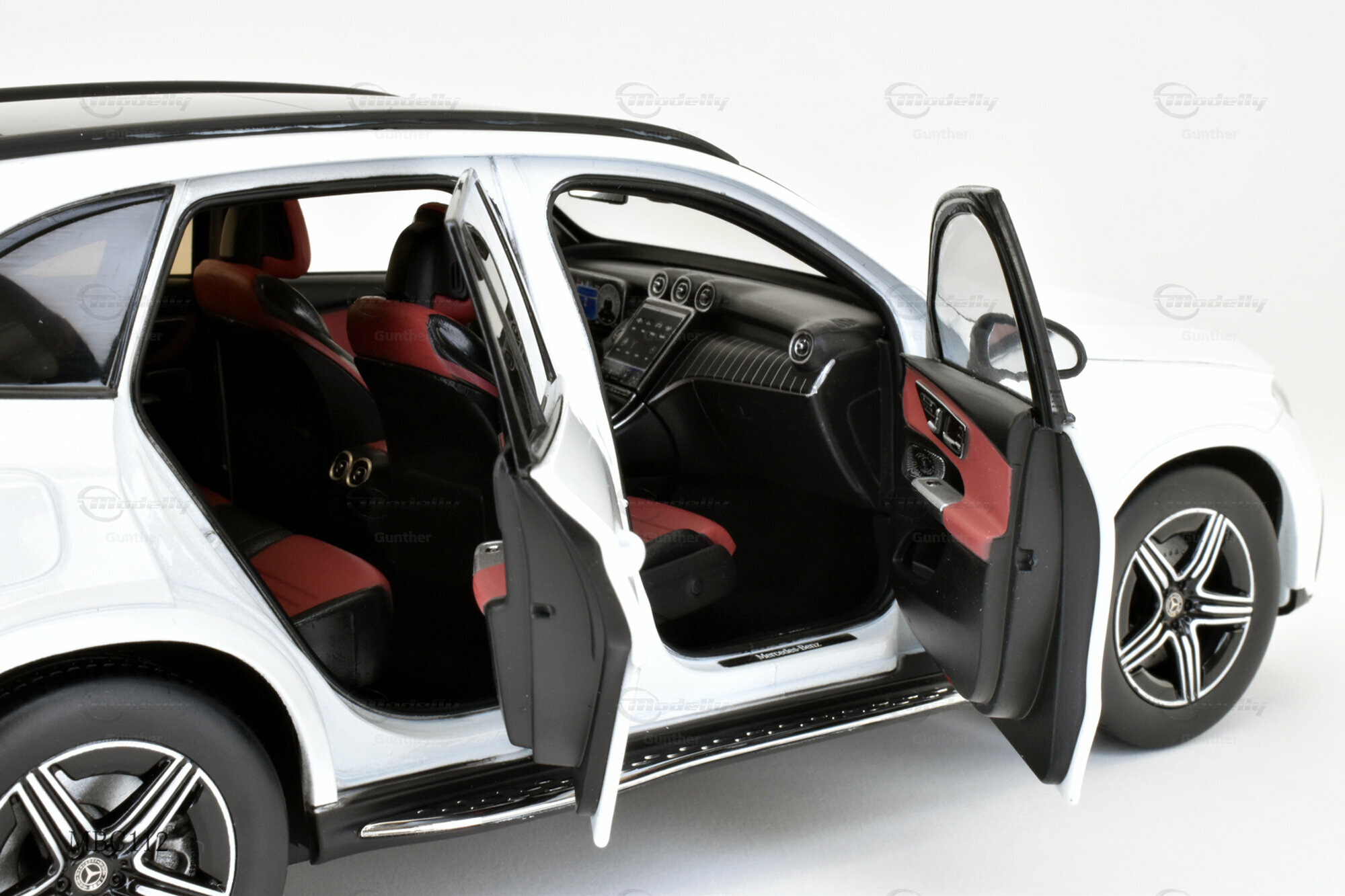 Für Modellauto-Sammler bietet das 1:18 Modell des Mercedes-Benz GLC (X254) von iScale Mercedes-Benz Dealer Edition eine beeindruckende Replik des Originals. Dieses Modell in 1:18 Maßstab ist aus einem hochwertigen Materialmix gefertigt und stellt die Details des Originals auf bemerkenswerte Weise dar. Von der präzisen Nachbildung der LED-Scheinwerfer bis hin zu den präzise nachgebildeten Rädern sind alle charakteristischen Merkmale des GLC enthalten. Besonderes Augenmerk gilt der Lackierung, die den Glanz des Originals stark nachbildet. Die schwarze B-Säule und die in Schwarz gehaltenen Außenspiegelkappen ergänzen das Gesamtdesign harmonisch. Diese Modelle sind ein Muss für jeden Sammler und bieten eine hervorragende Möglichkeit, die Feinheiten und die elegante Linienführung des GLC aus nächster Nähe zu betrachten.