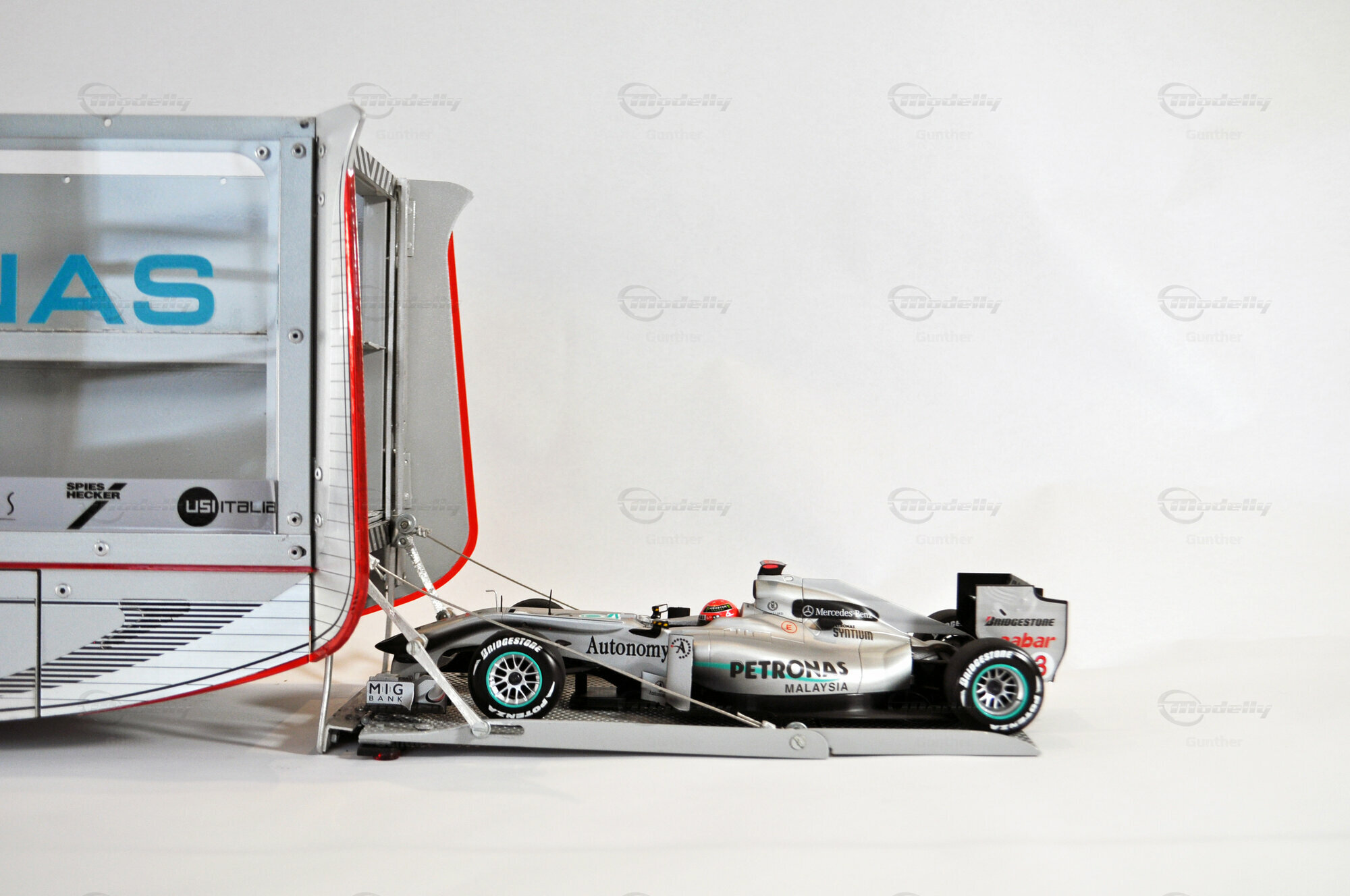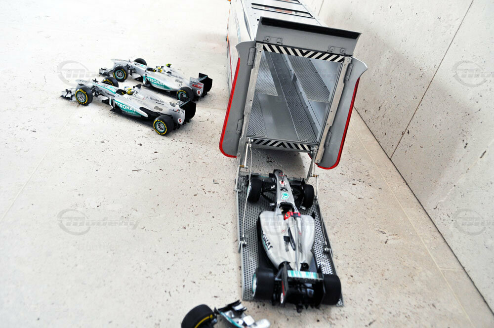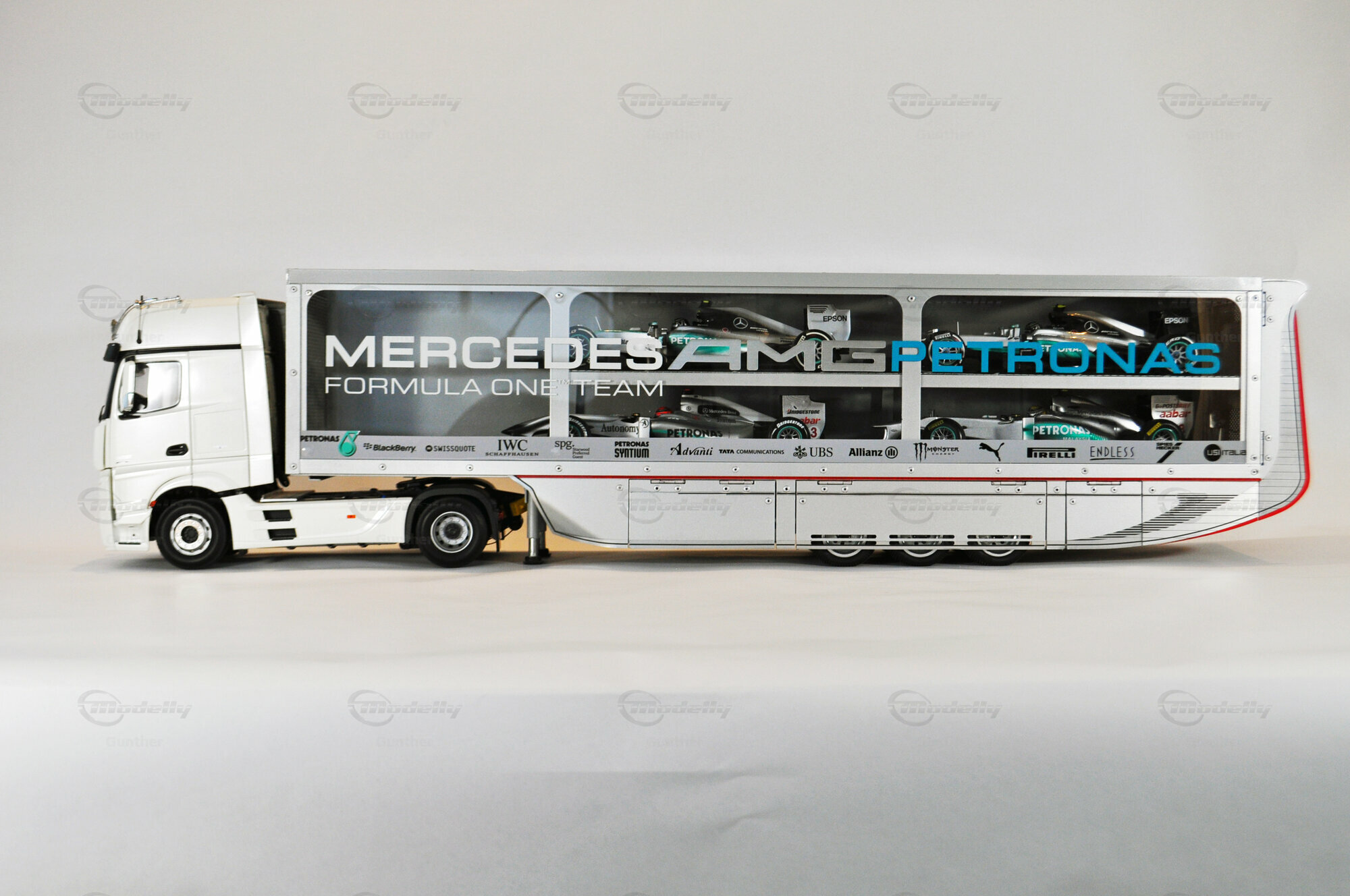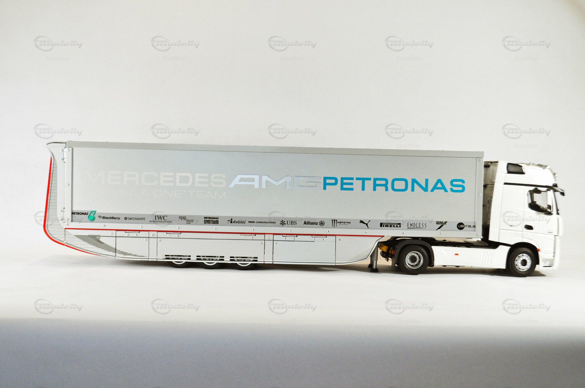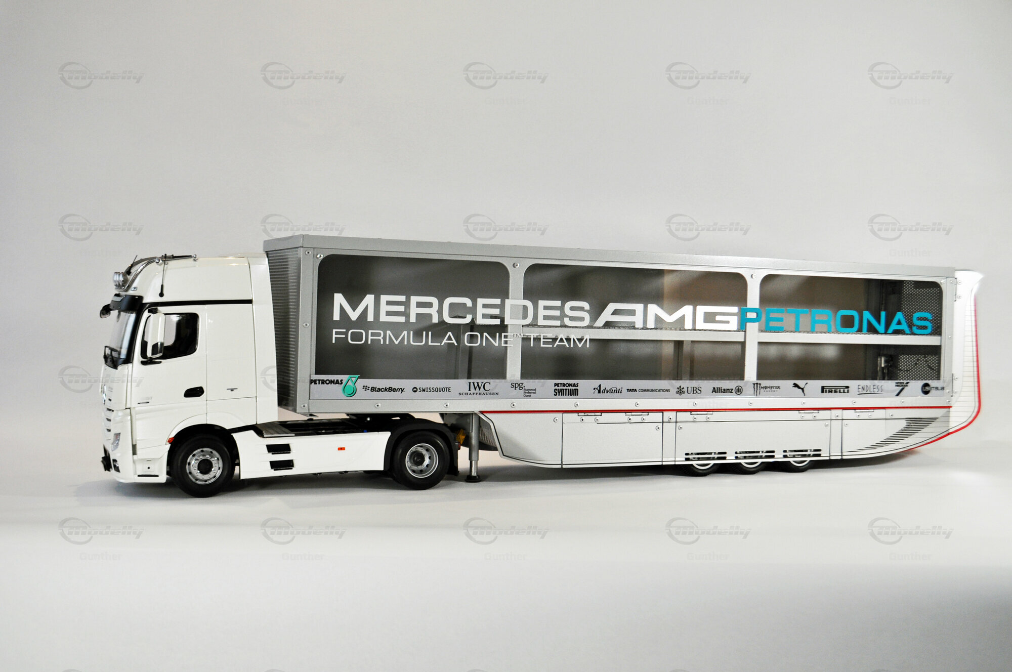 Mercedes-Benz Petronas AMG renntransporter (1:18)