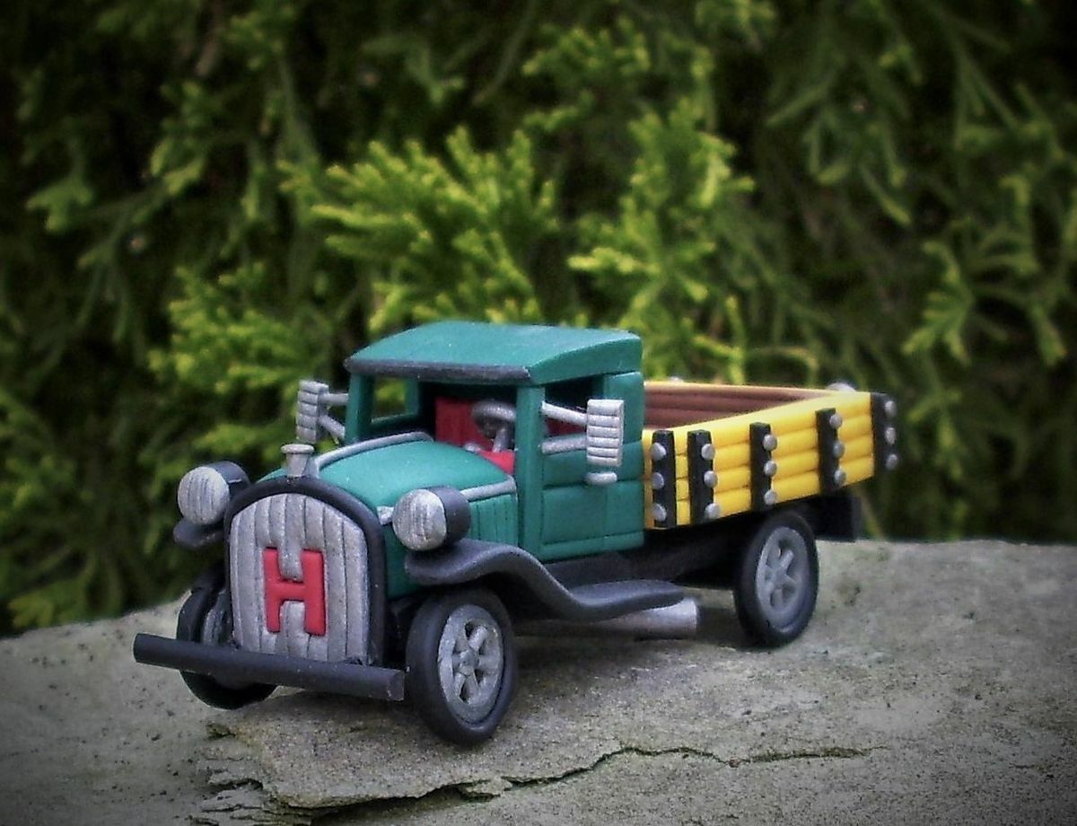 anschließend zusammengeklebt. Das Lenkrad, die Sitzbank und der Schalthebel