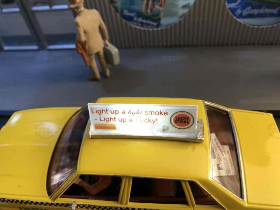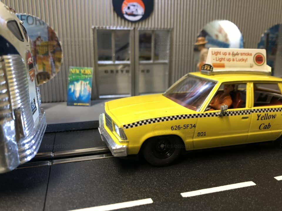 Das vorliegende Modell ist eine modifizierte Version des ursprünglichen Revell-Modells und befindet sich in der Sammlung von Modelly Mitglied "Heseman". Es handelt sich hierbei um ein als Taxi konzipiertes Modell, das eine gelbe Farbgebung aufweist, welche die typische Lackierung eines New Yorker Taxis der damaligen Zeit imitiert. Das Modell überzeugt durch eine originalgetreue Reproduktion von Details wie der aufgesetzten Taxihaube, den gelben Karosseriefarben mit dem „Yellow Cab“ Schriftzug und der spezifischen Taxi-Beschriftung.