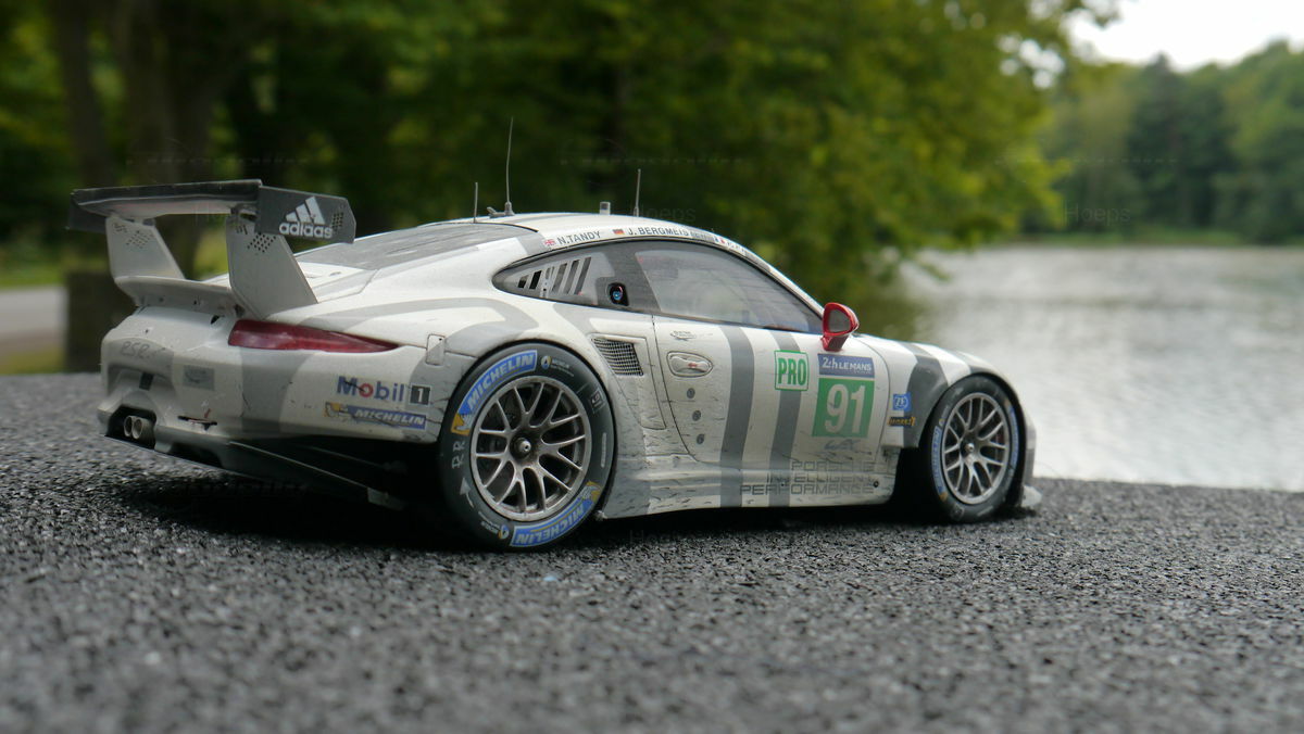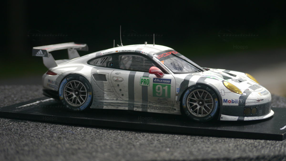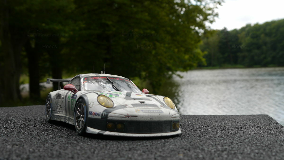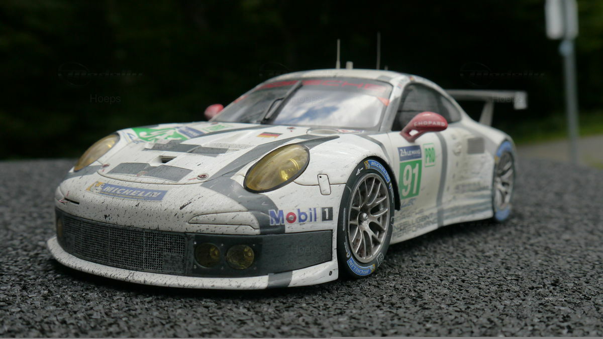 Die Modellautosammlung des Modelly Mitglieds "Hoeps" umfasst unter anderem ein 1:18 Modell des Porsche 911 (991) RSR. Dieses Modell ist von den Herstellern Spark/Cartima gefertigt und basiert auf Resin, was für eine hohe Detailgenauigkeit sorgt. Jedes Detail des Originals wurde akribisch nachgebildet, von den Sponsorenlogos wie Mobil 1 und Michelin bis hin zu den charakteristischen Rennlackierungen. Besonders auffallend ist die authentische Nachbildung der Leichtmetallräder und der aerodynamischen Flügel, die das Original zu einer Ikone auf der Rennstrecke machen. Das Modell zeigt eine Präzision in der Gestaltung, die selbst die kleinsten Nuancen des Rennwagens einfängt, was es für Sammler besonders wertvoll macht.
