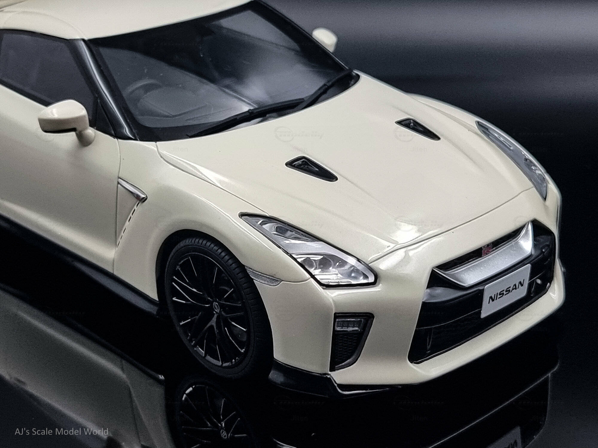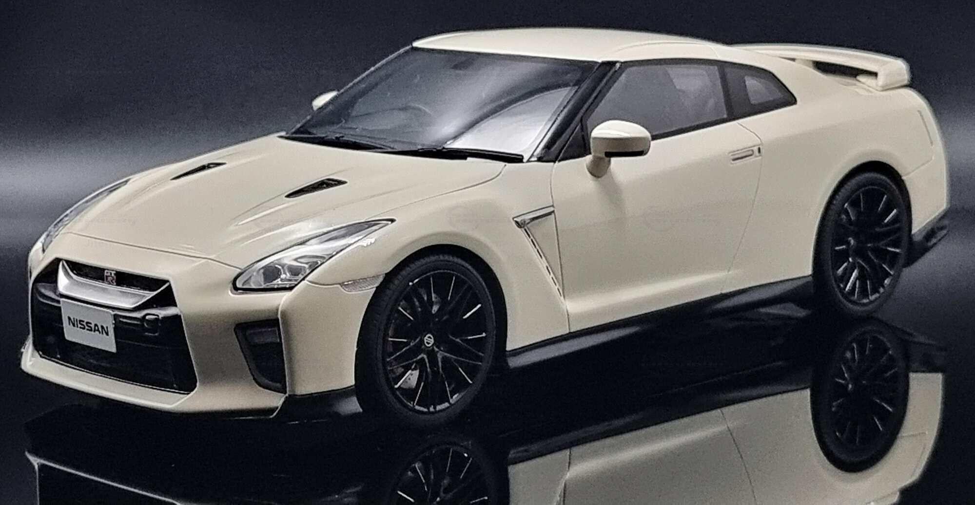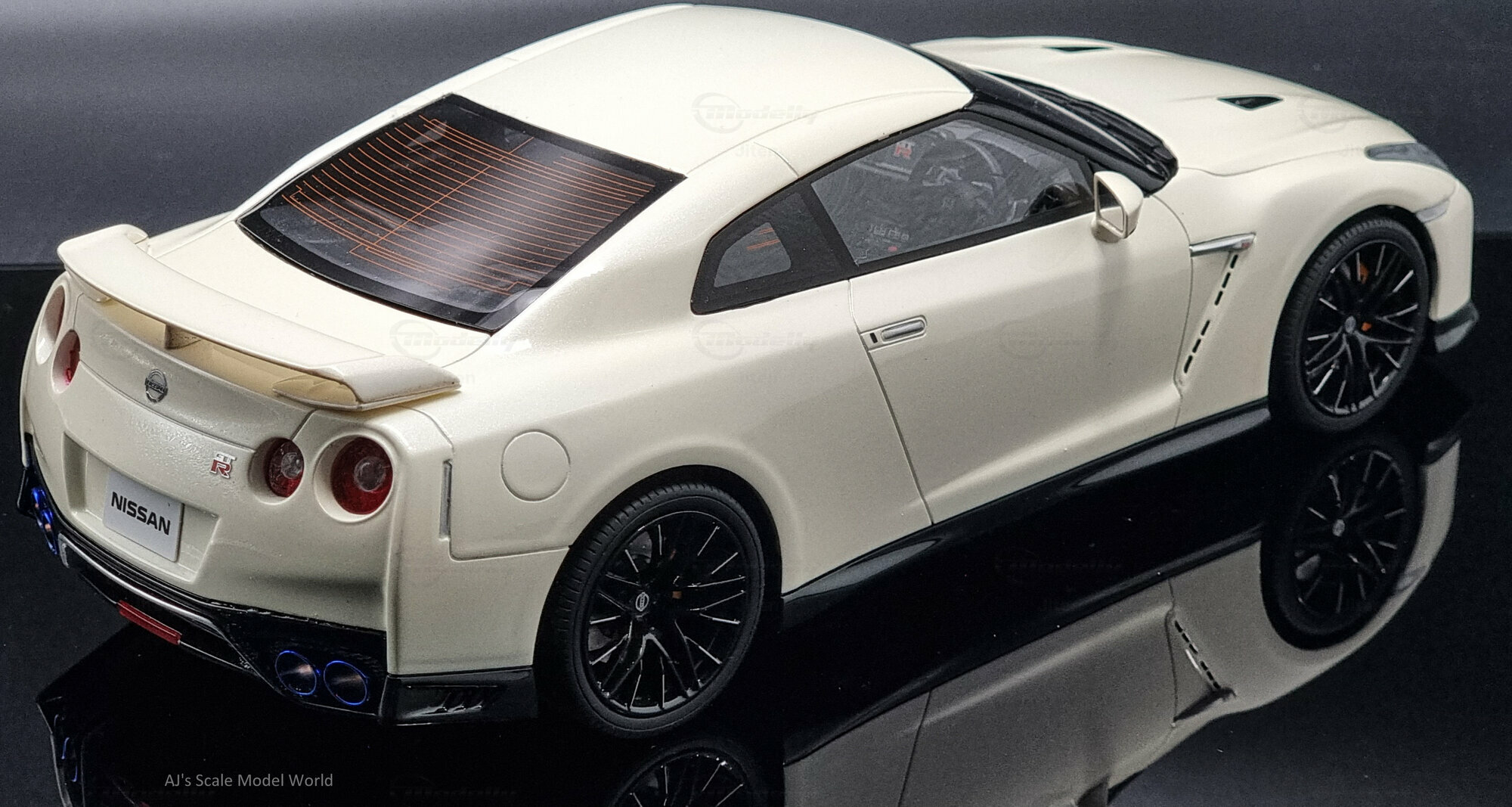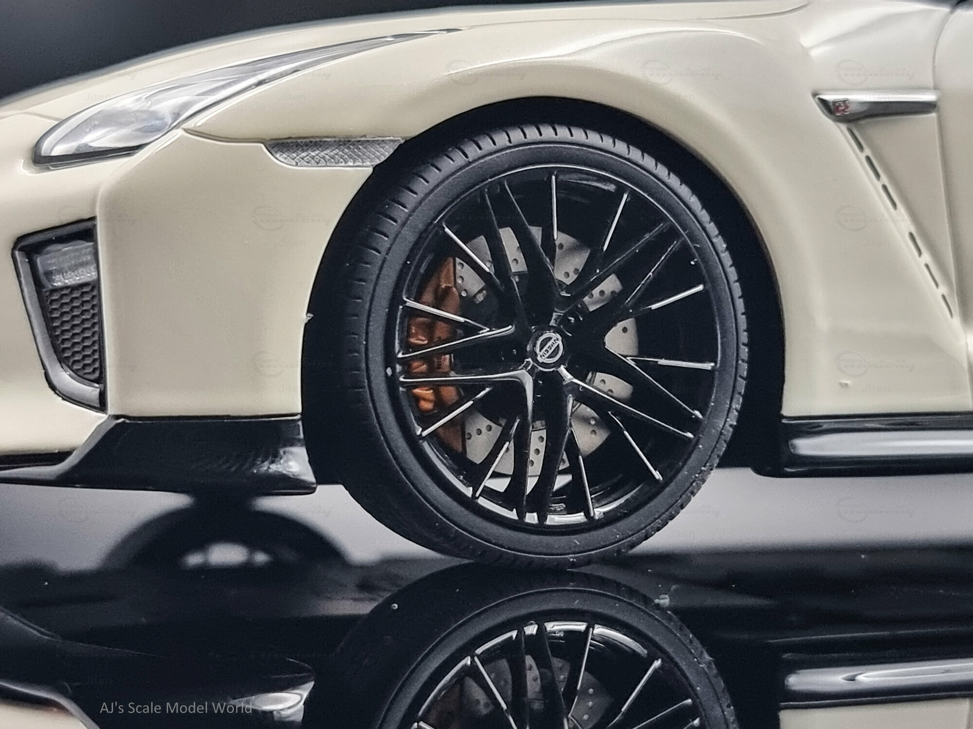 Das Modellauto im 1:18-Scale von GT Spirit Special - Kyosho besticht durch seine detailgetreue Nachbildung des Originals. Die Lackierung in einem eleganten Weißton, der durch die schwarzen Akzente und die sportlich gestalteten Yokohama Felgen ergänzt wird, gibt dem Modellauto ein authentisches und stilvolles Aussehen. Die Rückansicht zeigt präzise nachgebildete Rücklichter und einen realistischen Diffusor, der dem Original in nichts nachsteht. Auffällig sind auch die blauen Akzente an den Auspuffrohren, die dem Modell einen zusätzlichen Hauch von Sportlichkeit verleihen. Diese Miniatur ist zweifellos ein Muss für jeden Sammler und Liebhaber des Nissan GT-R Nismo.
