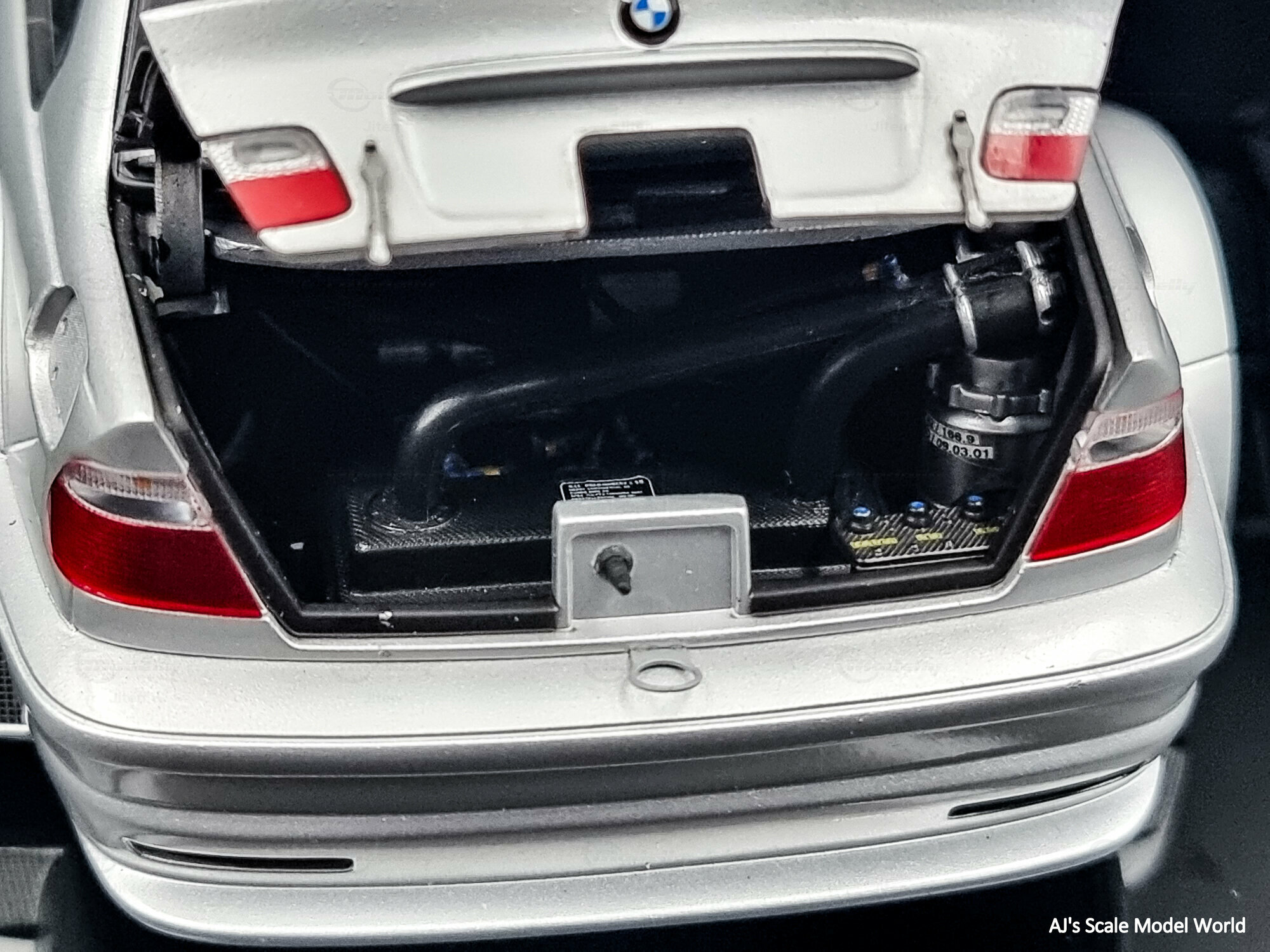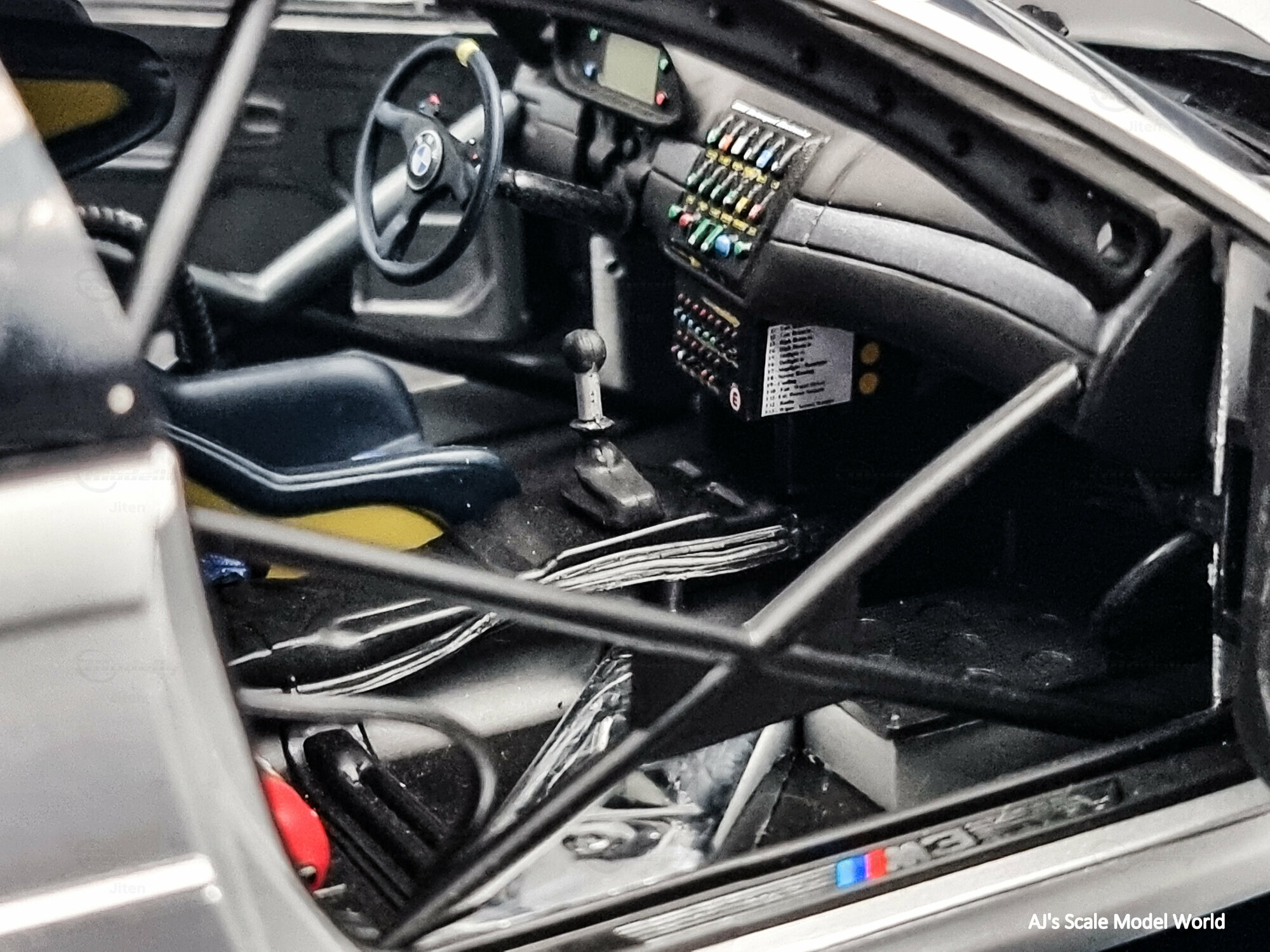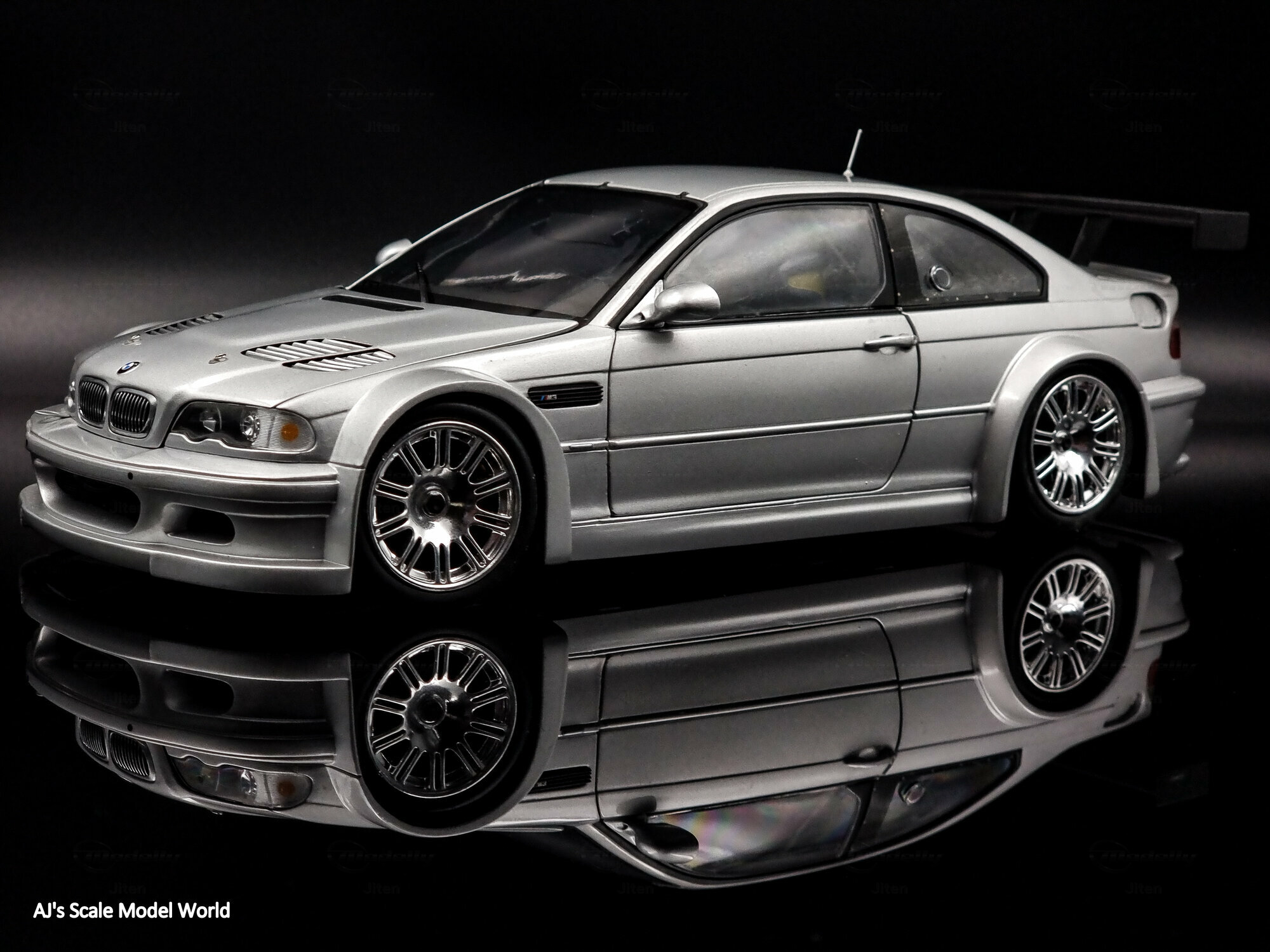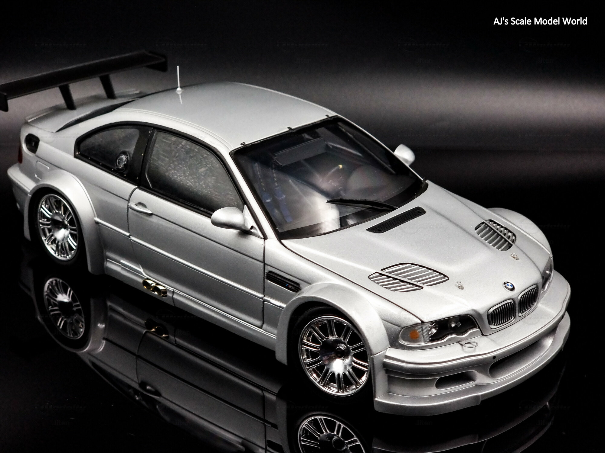 Die 1:18 Modellversion des BMW M3 GTR Street (E46), produziert von Minichamps und aus hochwertigem Druckgussmaterial gefertigt, fängt die essenziellen Designelemente des Originals brillant ein. Die silberne Lackierung kombiniert mit den auffälligen Lüftungsschlitzen auf der Motorhaube und den robusten Stoßfängern machen dieses Modell zu einem Hingucker in jeder Sammlung. Besonders die Detaillierung der Karosserie, inklusive der klar erkennbaren Kiemen in den Kotflügeln und das charakteristische "M" Emblem, sind bemerkenswert.
