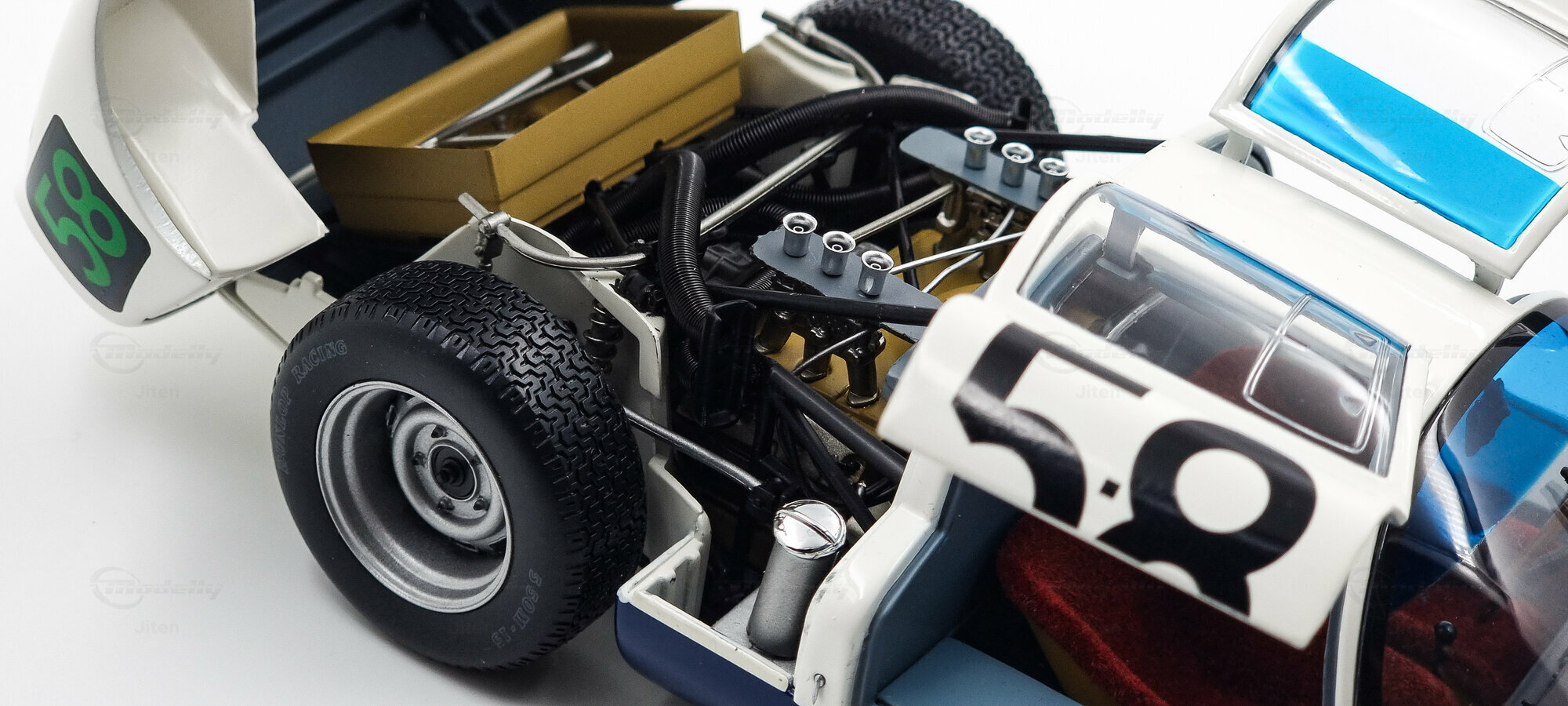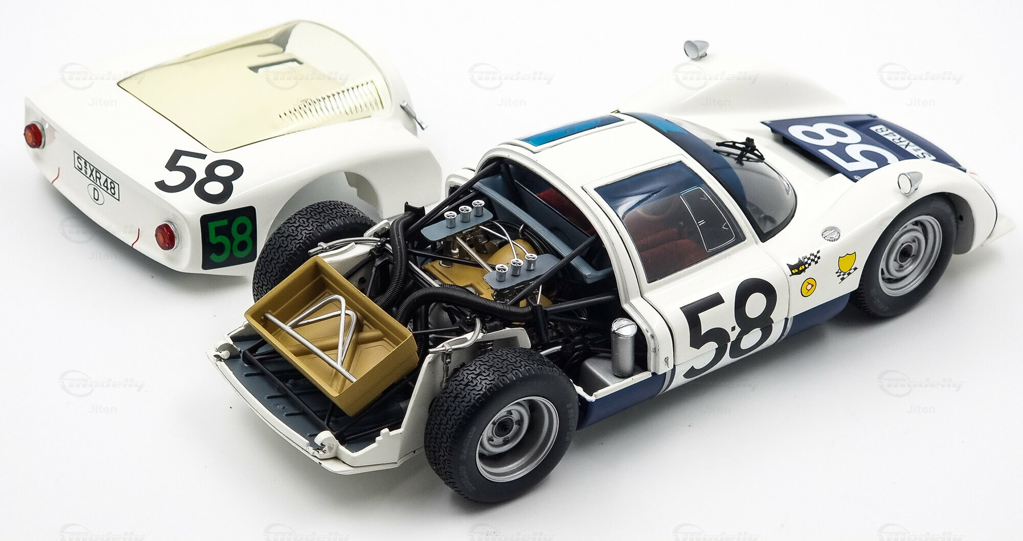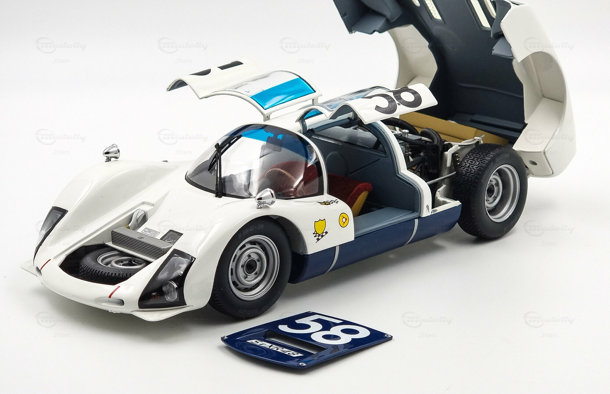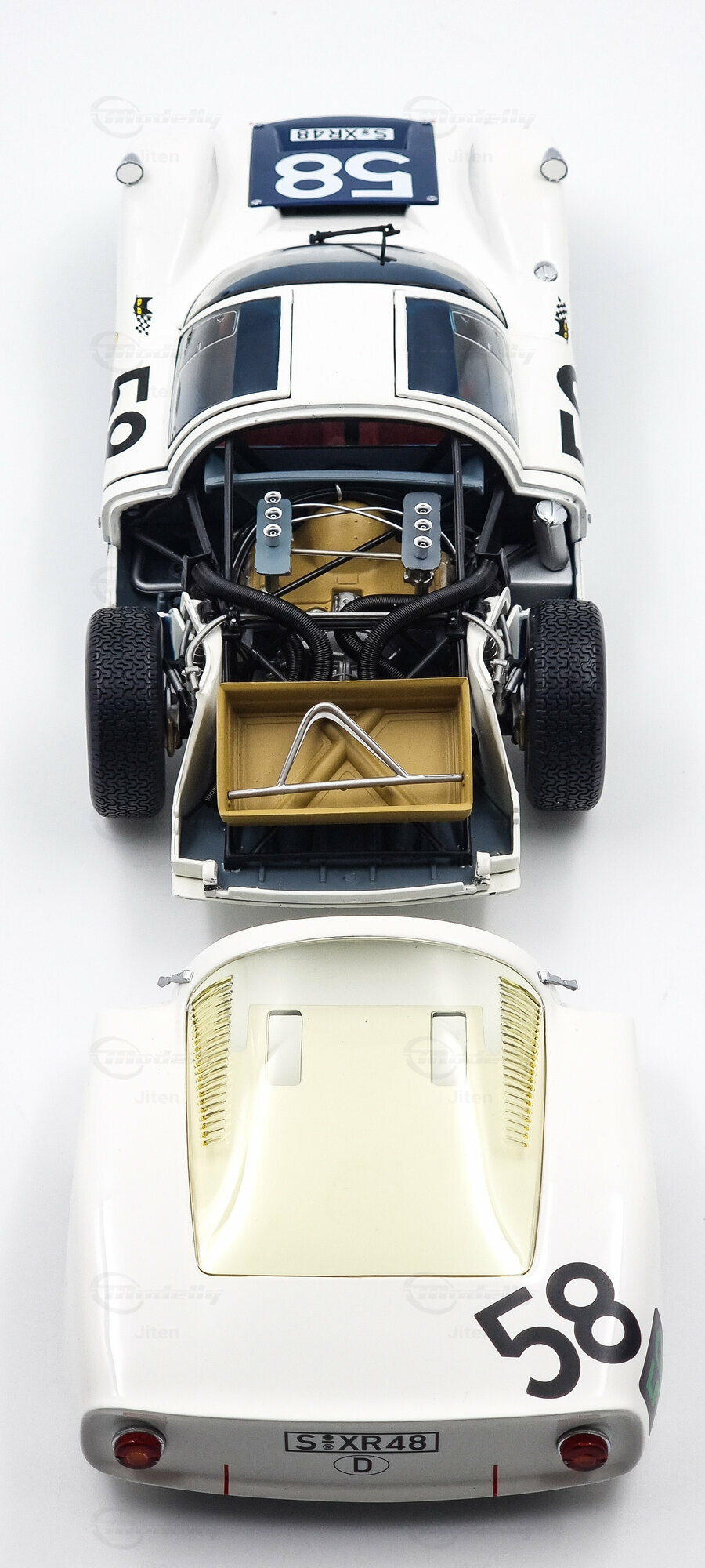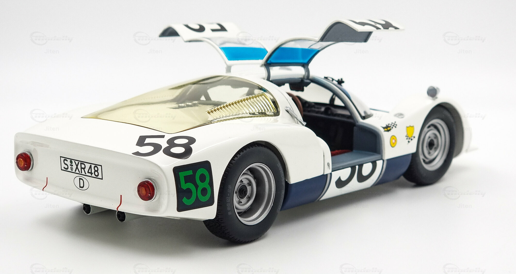Aus den Fotos von Modellly Mitglied "Jiten" ist die herausragende Qualität und Präzision dieses Modells sichtbar. Die Lufteinlässe, kraftvollen Radkästen und die präzisen Details der Scheinwerfer sind sorgfältig nachgebildet. Das Modell vermittelt die fließenden Linien des Originalfahrzeugs und trägt zur visuellen Authentizität bei. Das makellos verarbeitete Modell verfügt über eine stabile Konstruktion und fest angebrachte Teile, die sein dauerhaftes und hochwertiges Erscheinen garantieren. Die akribisch erstellte Lackierung und die detaillierte Innenraumausstattung spiegeln das Originaleins-zu-eins wider.