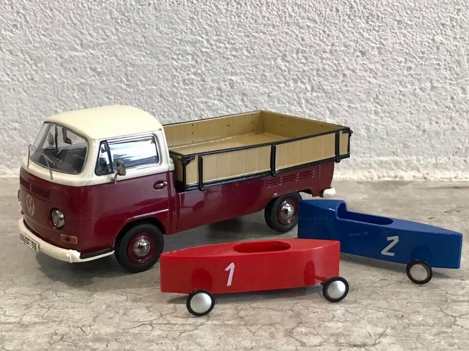 Volkswagen T2a Westfalia-Pritsche mit 2 Seifenkisten (1:43)
