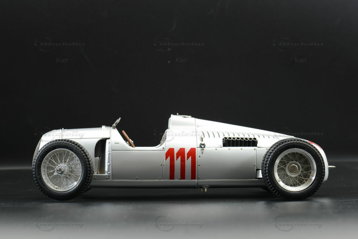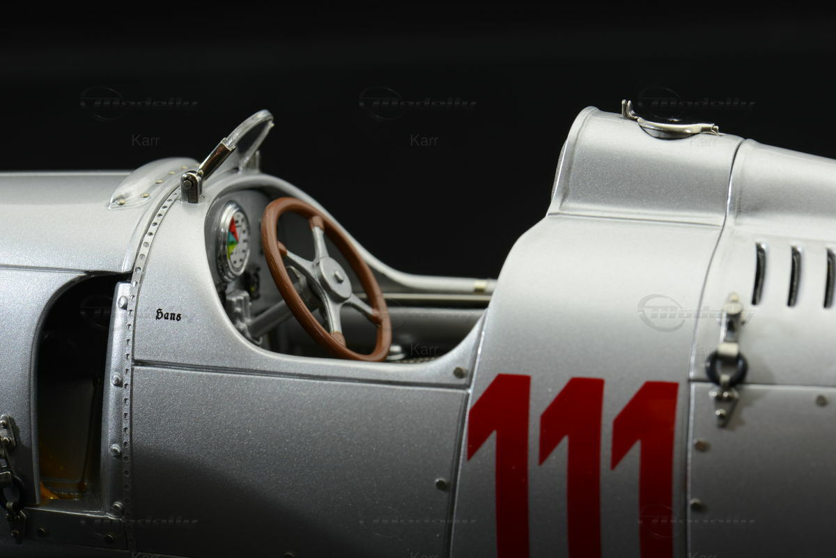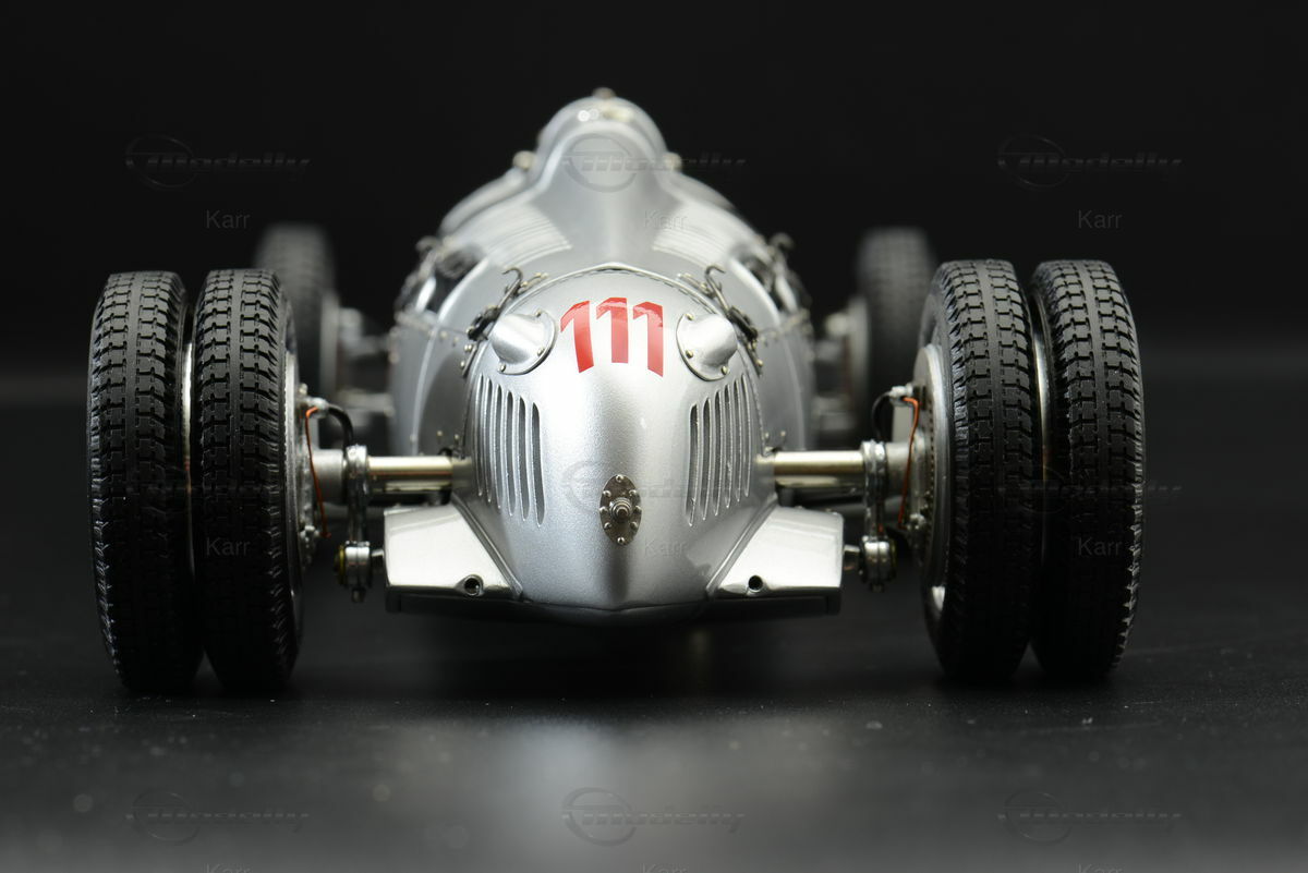 Besonderheiten dieses Rennwagens waren das verkürzte Chassis und die doppel Bereifung an der Hinterachse.