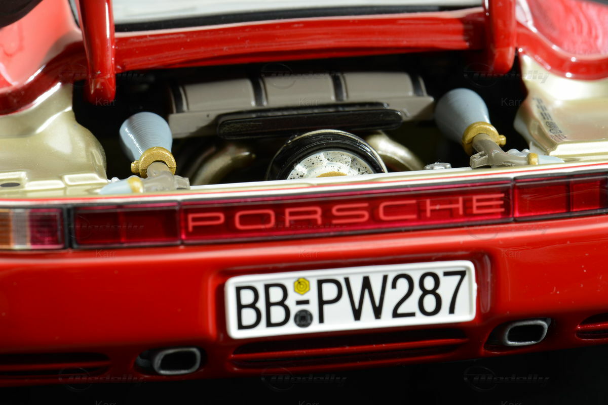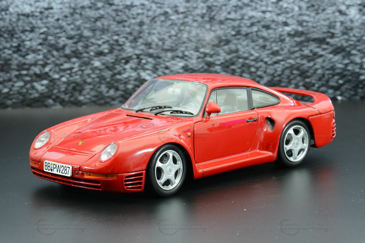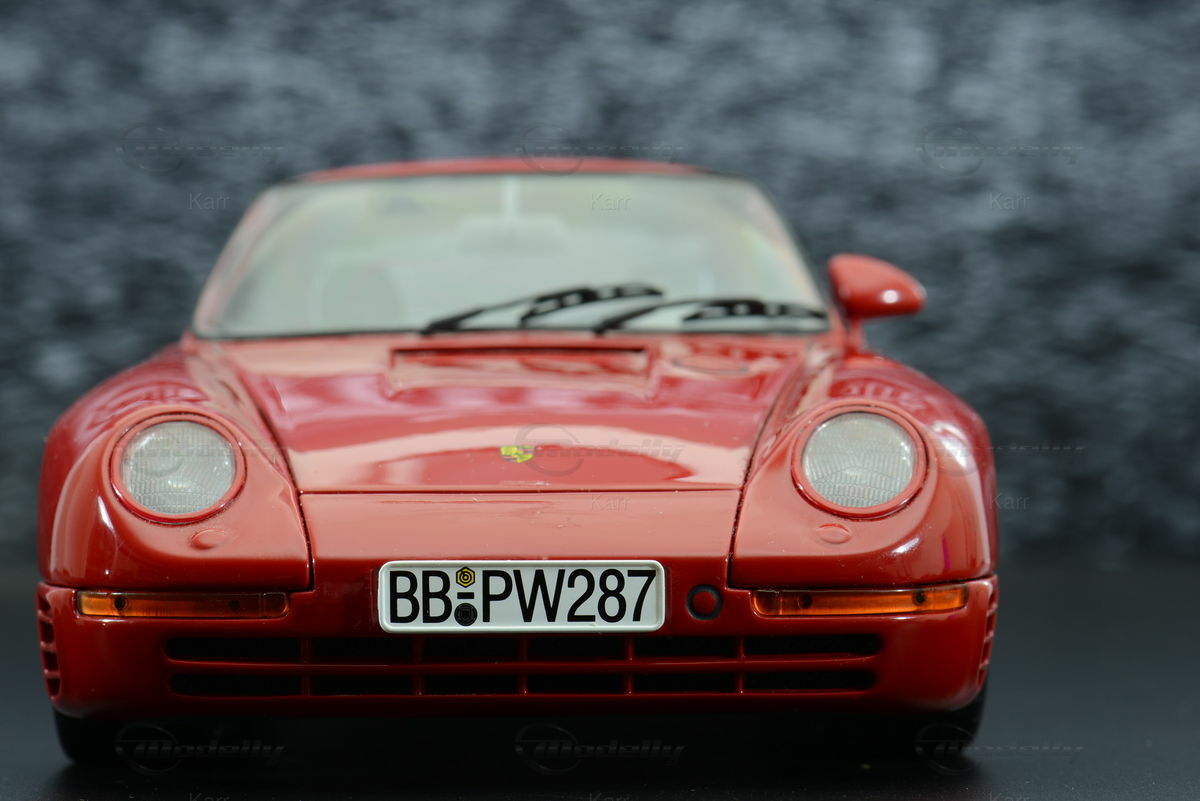 Dieses hochwertige Modellauto im Maßstab 1:18, hergestellt von Exoto-Motorbox, ist eine exakte Nachbildung des Porsche 959. Es wird in Resin gefertigt und besticht durch seine detailgetreue Ausführung. Die Modellnummer ’BB-PW287‘ auf dem Nummernschild sowie die rote Lackierung repräsentieren die Eleganz und die sportliche Ästhetik des Originals. Der Innenraum des Modells ist genauso ausgefeilt wie das Originalfahrzeug; von den Sitzen bis hin zu den Armaturen wurde alles präzise reproduziert. Die Scheinwerfer, Rückleuchten und die detaillierten Felgen, möglicherweise von einem renommierten Hersteller wie BBS, tragen zur Authentizität bei.