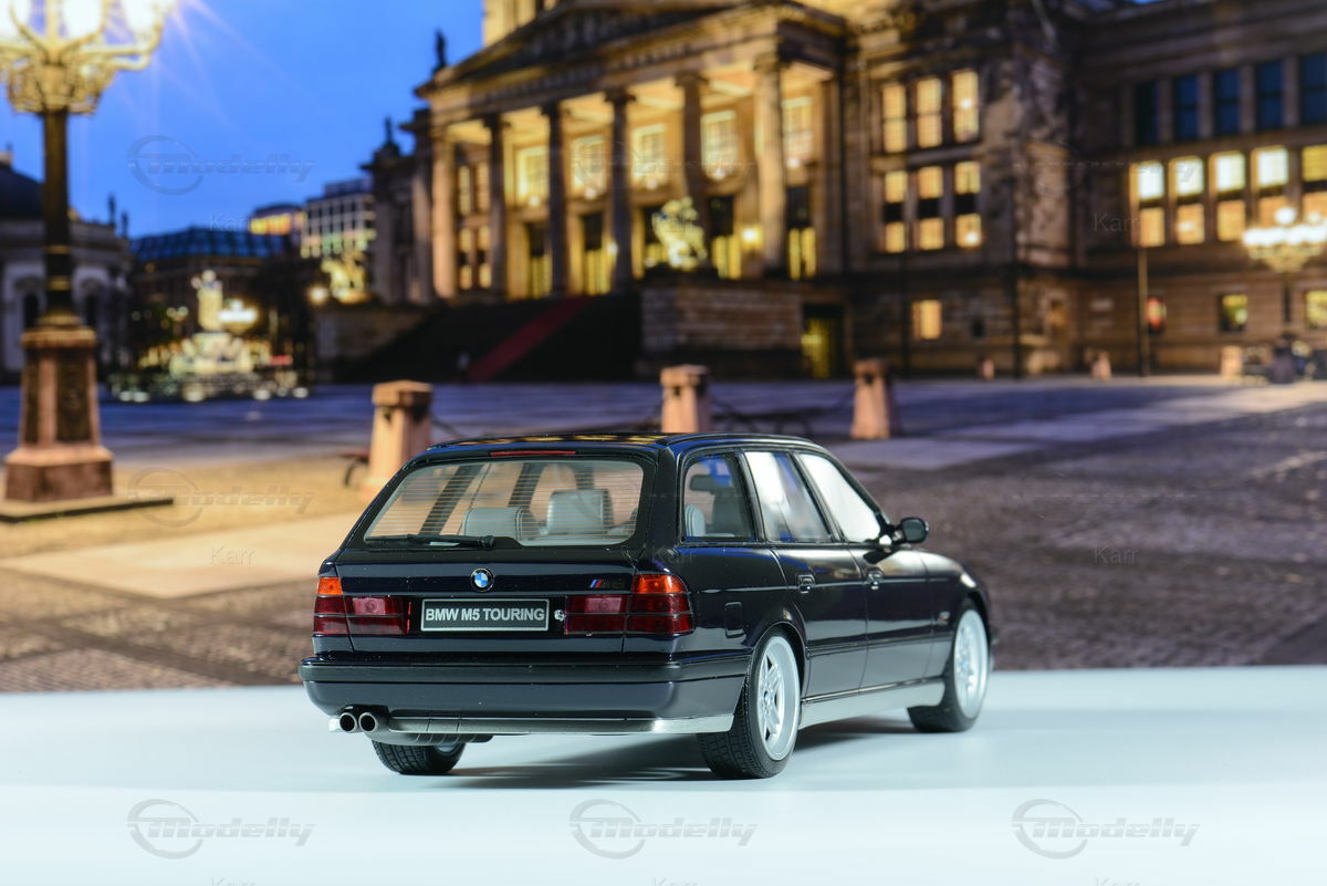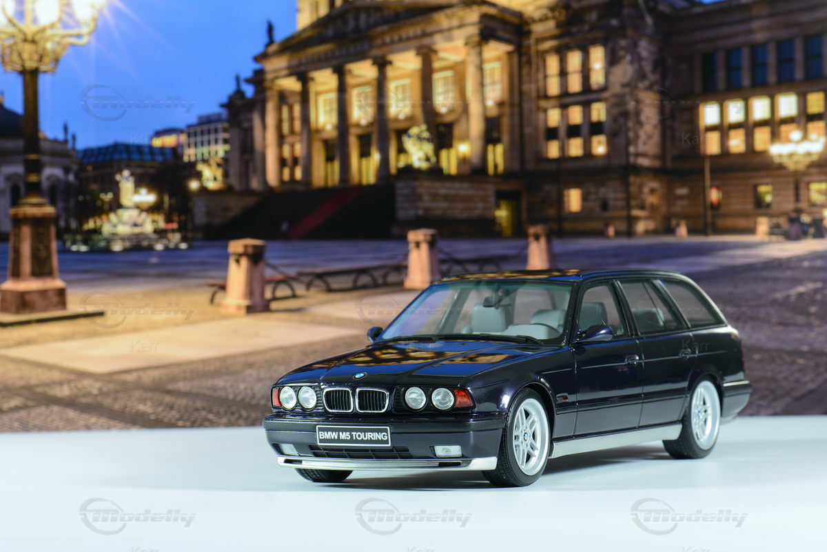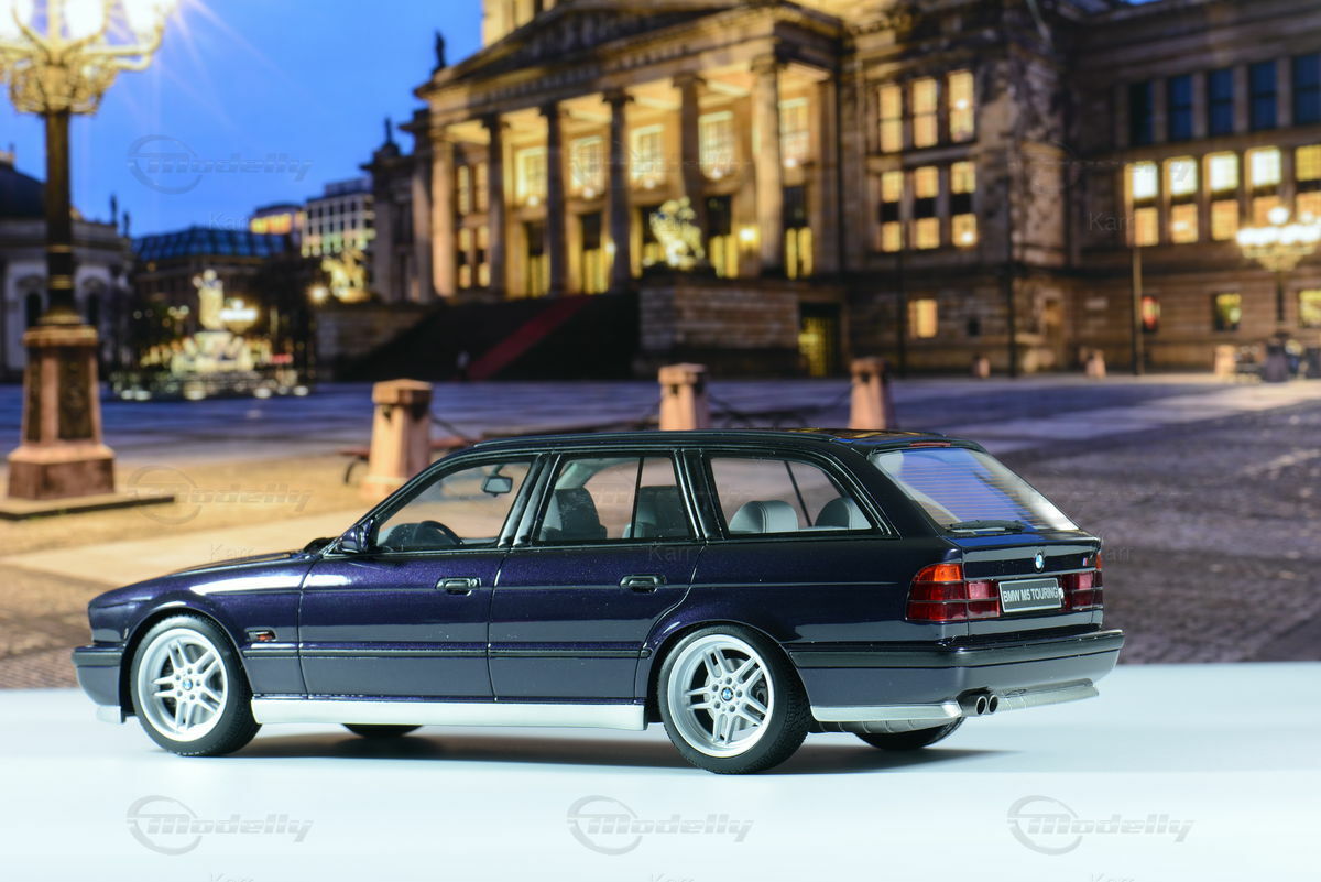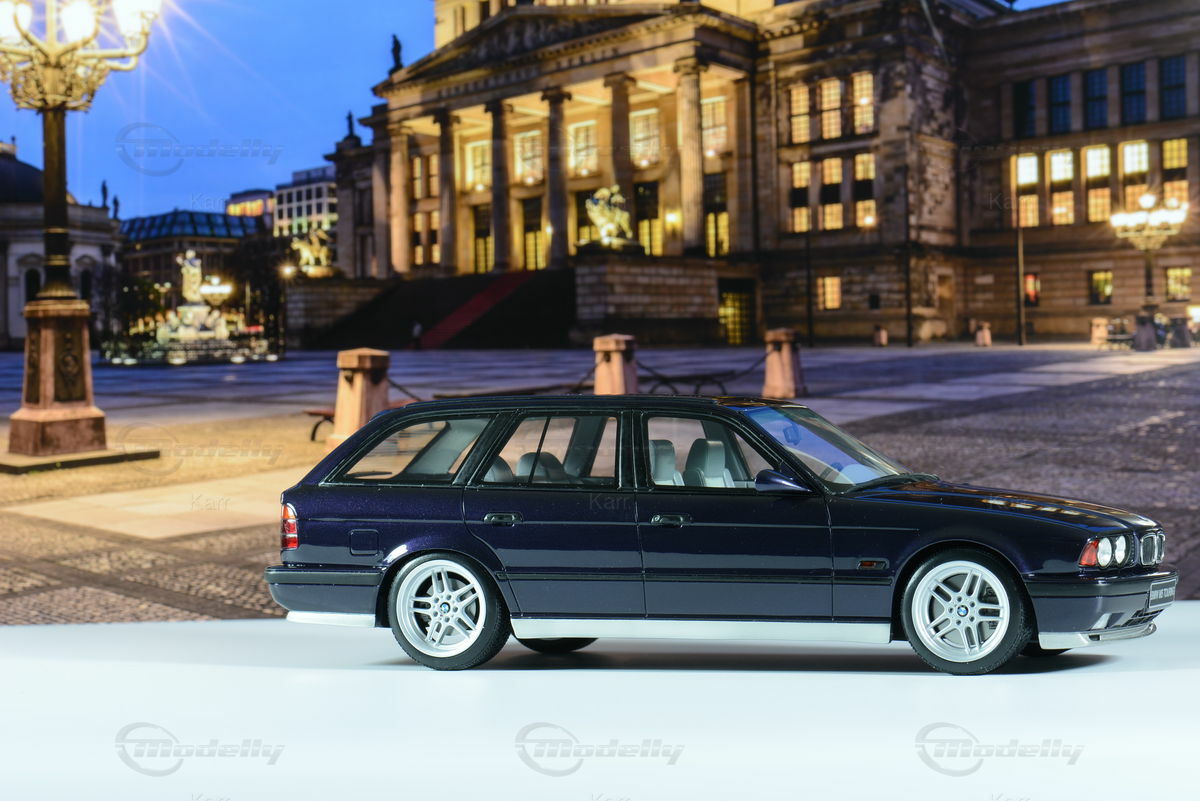 Das gezeigte Miniaturmodell basiert auf dem BMW E34 M5 Touring und stammt von Ottomobile. Es handelt sich um ein Modell im Maßstab 1:18, das durch seine exakte Nachbildung des Originalfahrzeugs überzeugt. Diese Miniatur ist Teil der Sammlung des Modelly-Mitglieds "Karr". Aus Resin gefertigt, ist dieses Modell besonders detailliert und präzise. Auf den Fotos ist deutlich zu sehen, wie sorgfältig selbst die kleinsten Details umgesetzt wurden. Beispielsweise zeigt das Modell die charakteristischen Doppelscheinwerfer und den markanten Kühlergrill des Originals, sowie präzise nachgebildete Felgen. Die Lackierung in einem tiefen Dunkelblau verleiht dem Modell eine elegante und zugleich sportliche Optik.