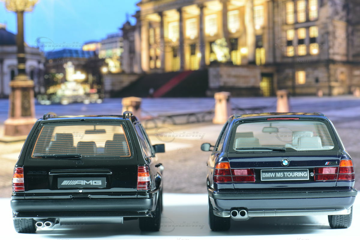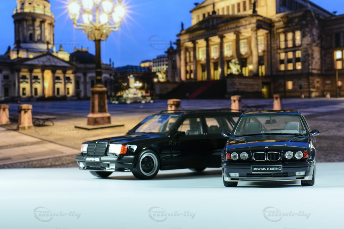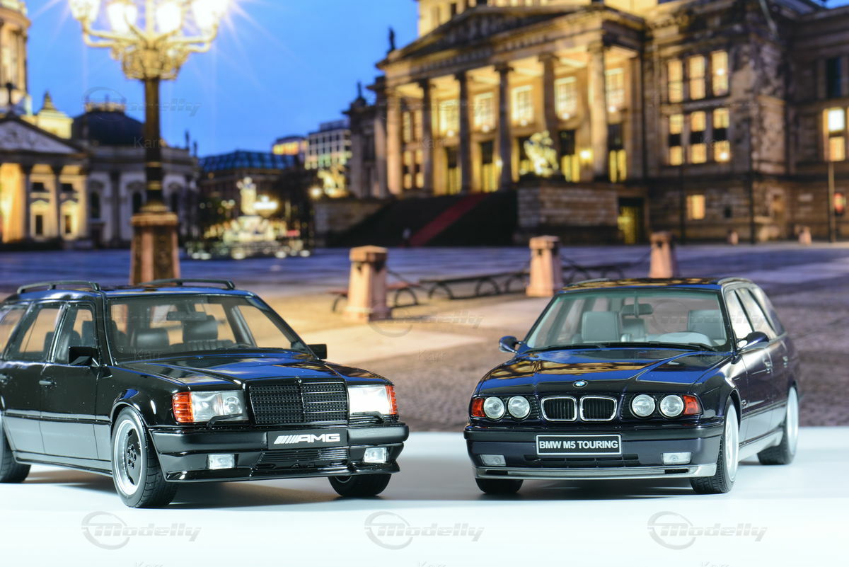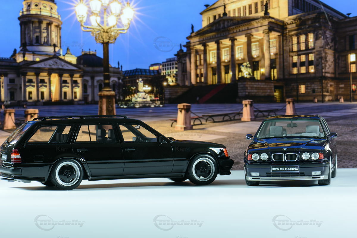 Das gezeigte Miniaturmodell basiert auf dem BMW E34 M5 Touring und stammt von Ottomobile. Es handelt sich um ein Modell im Maßstab 1:18, das durch seine exakte Nachbildung des Originalfahrzeugs überzeugt. Diese Miniatur ist Teil der Sammlung des Modelly-Mitglieds "Karr". Aus Resin gefertigt, ist dieses Modell besonders detailliert und präzise. Auf den Fotos ist deutlich zu sehen, wie sorgfältig selbst die kleinsten Details umgesetzt wurden. Beispielsweise zeigt das Modell die charakteristischen Doppelscheinwerfer und den markanten Kühlergrill des Originals, sowie präzise nachgebildete Felgen. Die Lackierung in einem tiefen Dunkelblau verleiht dem Modell eine elegante und zugleich sportliche Optik.