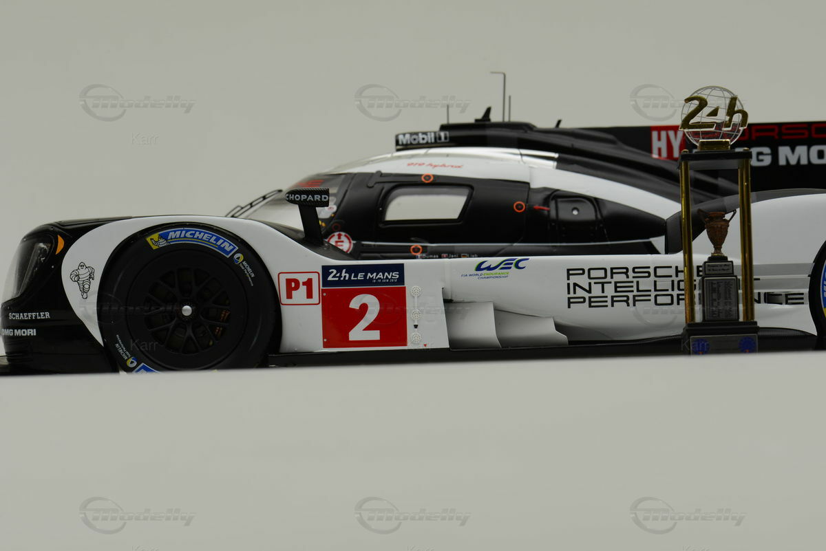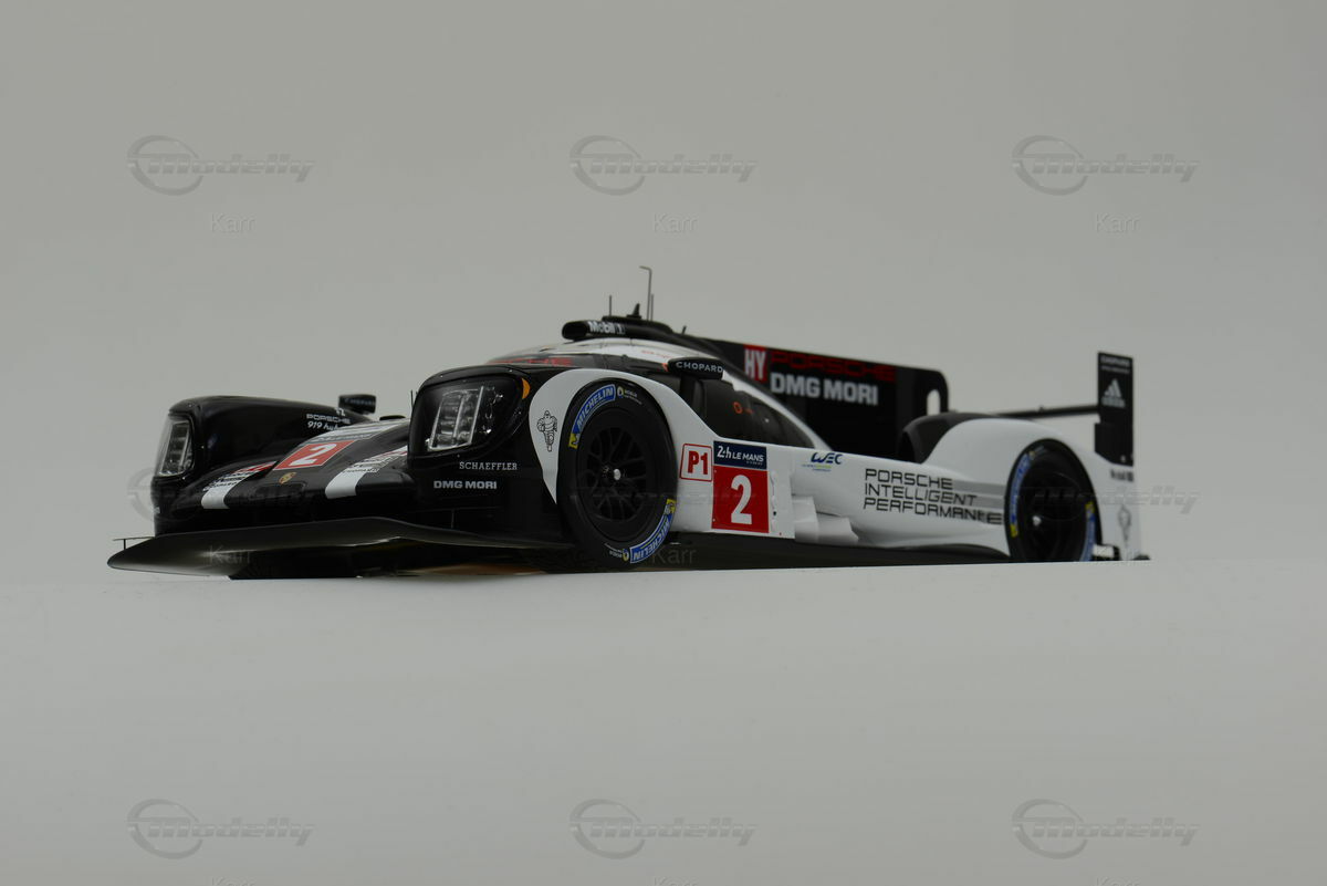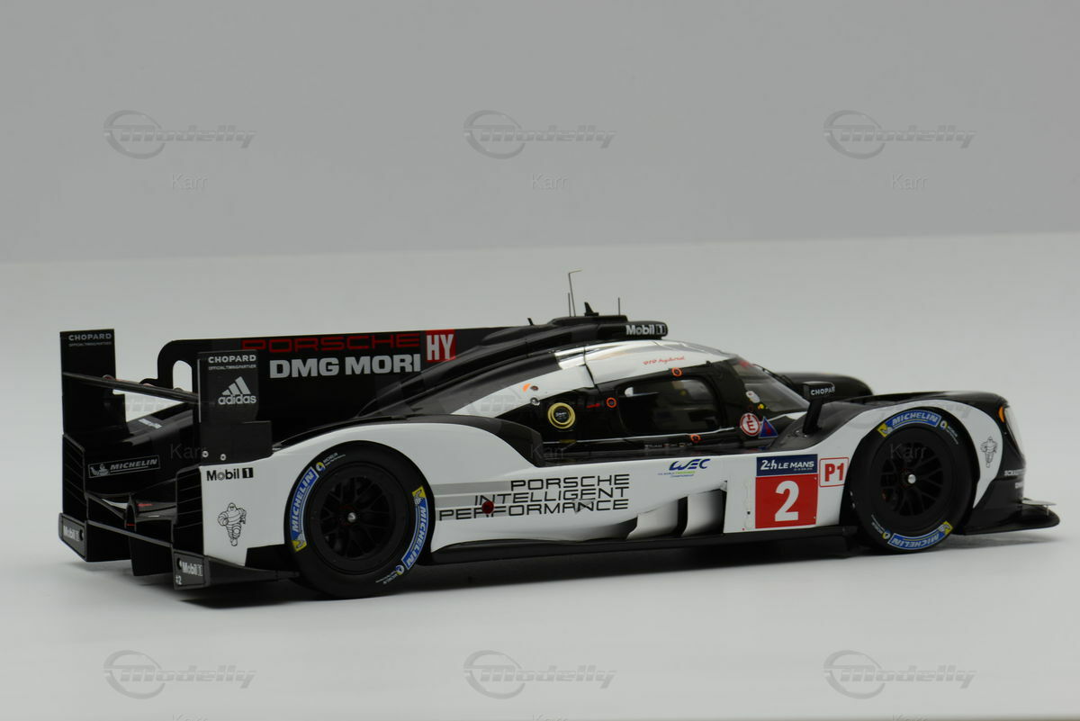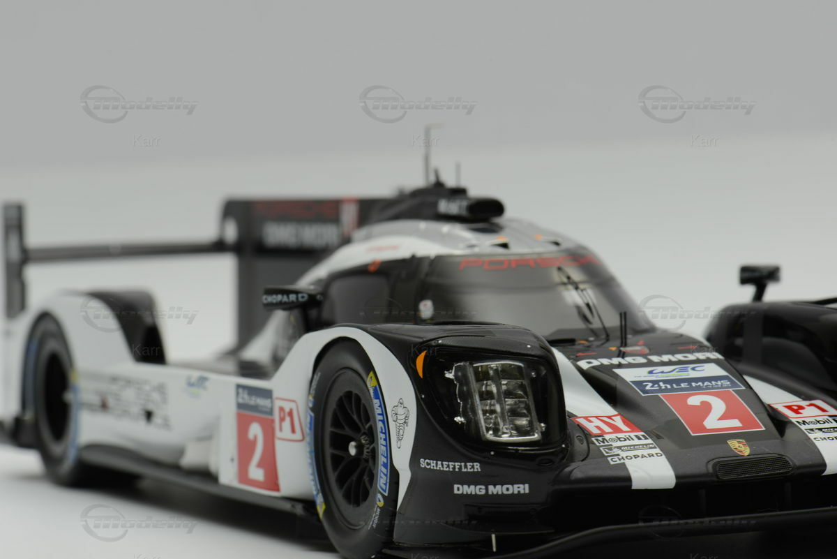 Dieses Modellauto im Maßstab 1:18 wurde von SPARK hergestellt und besteht aus Resin, was eine hohe Detailtreue ermöglicht. Die Lackierung des Modells spiegelt exakt das Design des Rennwagens wider, inklusive der Sponsorenaufkleber von Michelin, Chopard und Schaeffler. Das Modell, das Teil der Sammlung von Modelly-Mitglied "Karr" ist, zeigt die Startnummer 2, die der Originalwagen beim 24-Stunden-Rennen von Le Mans 2016 trug. Die aerodynamischen Formen und die verschiedene Lufteinlässe und Auslässe wurden detailliert nachgebildet. Die Lackierung in Schwarz-Weiß mit roten Akzenten entspricht der originalen Rennlackierung.