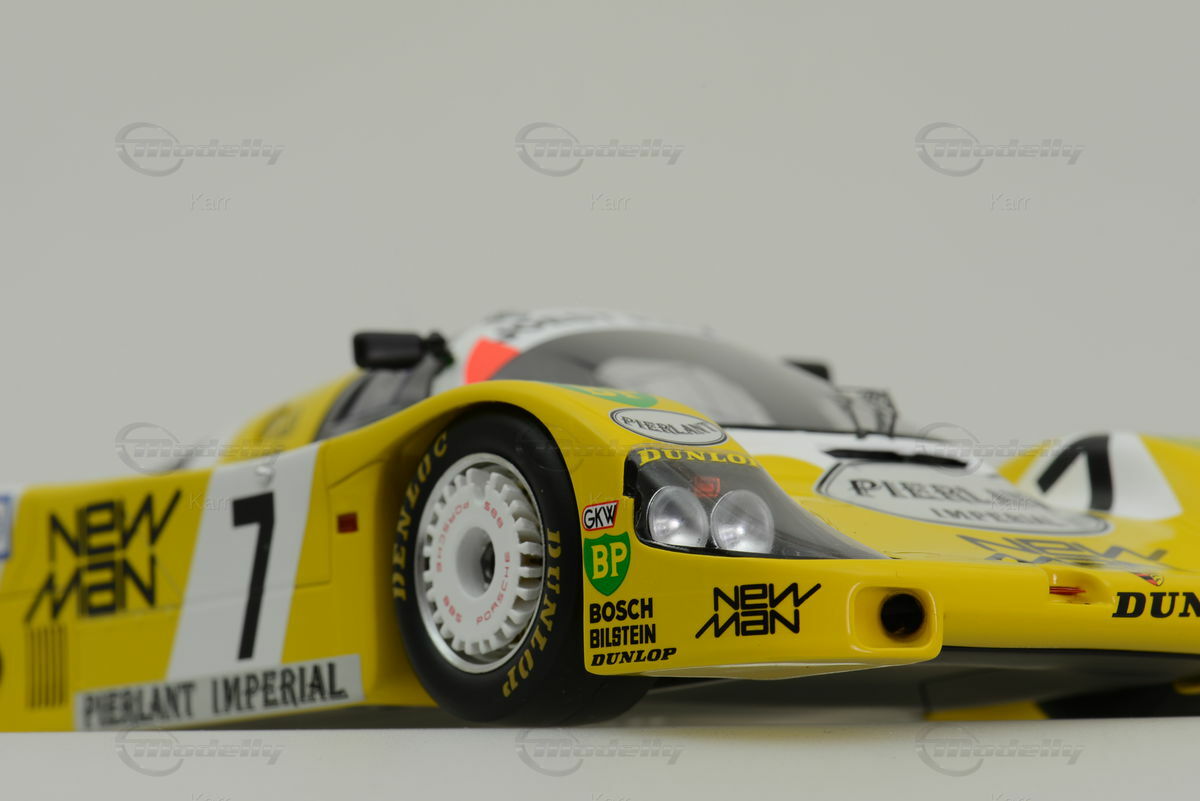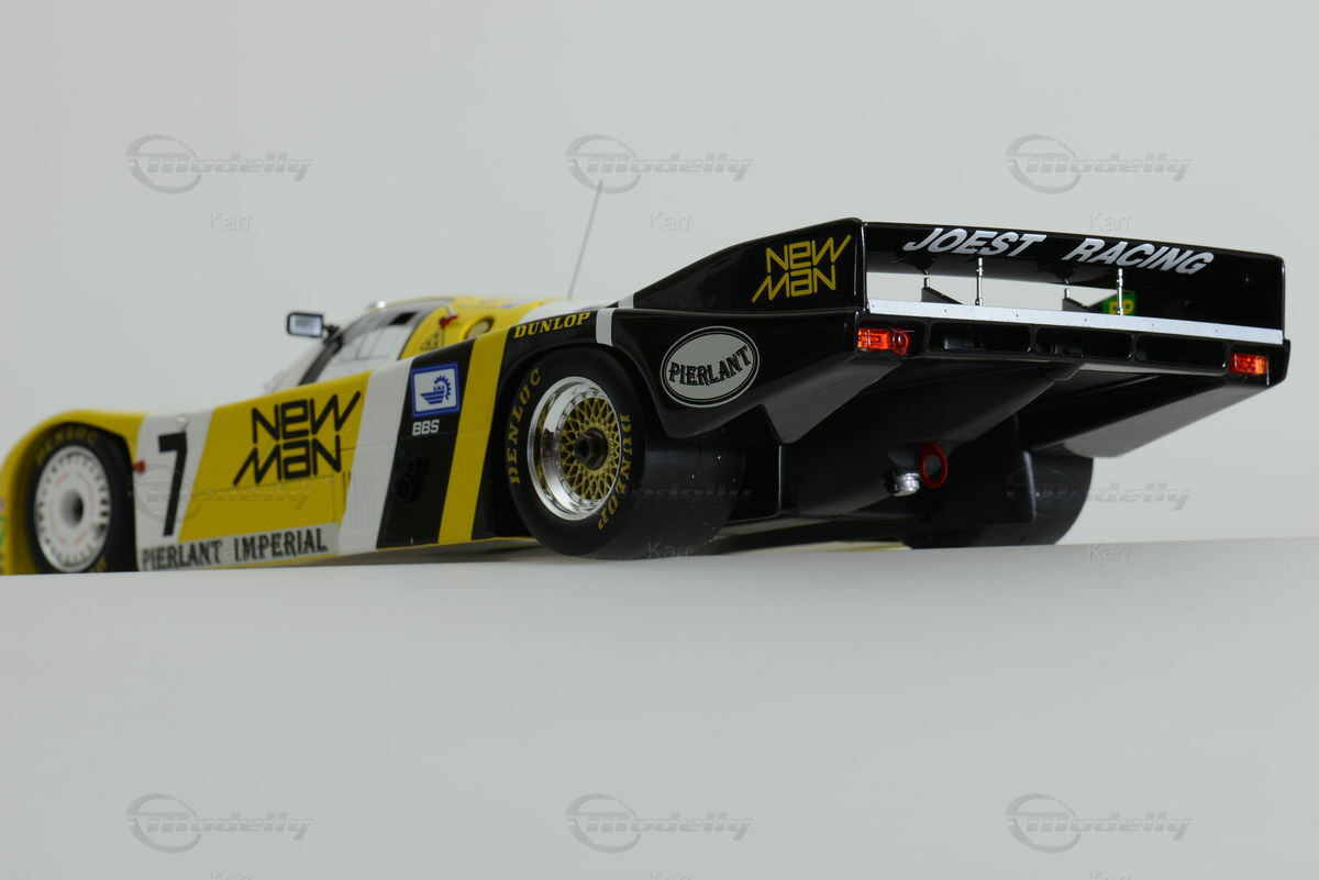 Die Modellversion des Porsche 962 von SPARK im 1:18-Maßstab ist aus hochwertigem Harz gefertigt, was eine extrem genaue Nachbildung der Details ermöglicht. Betont werden die detaillierte Darstellung der Scheinwerfer, Außenspiegel und Lufteinlässe. Die goldfarbenen BBS-Felgen und die markanten Sponsorenaufkleber auf der Karosserie sind ein weiteres Highlight, das die Authentizität des Modells unterstreicht. Dieses Modell ist mehr als nur ein Sammlerstück; es ist eine Hommage an einen der erfolgreichsten Rennwagen in der Geschichte des Motorsports und repräsentiert gleichzeitig die hochwertige Arbeit von SPARK.