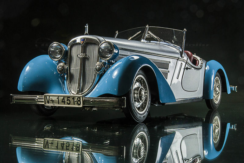 2009 feiert Audi seinen 100. Geburtstag. CMC reiht sich in die Schar der Gratulanten ein und präsentiert zu diesem besonderen Anlass einen besonderen Klassiker: den Audi Front 225 Roadster. 1935 der Öffentlichkeit vorgestellt, war er für die damalige Zeit eine Sensation – eine echte Augenweide, die durch ihre ausgesprochen sportliche und ästhetische Karosserie mit der dynamisch langgestreckten Linienführung begeisterte. CMC bietet diese traumhaft schöne, aus über 1.600 Teilen handgefertigte Miniatur in drei Farbvarianten an – zeitgenössische Zweifarbenlackierungen, die den Modellen eine besondere Strahlkraft und Eleganz verleihen und die Faszination der Modelle unterstreichen.