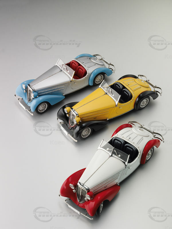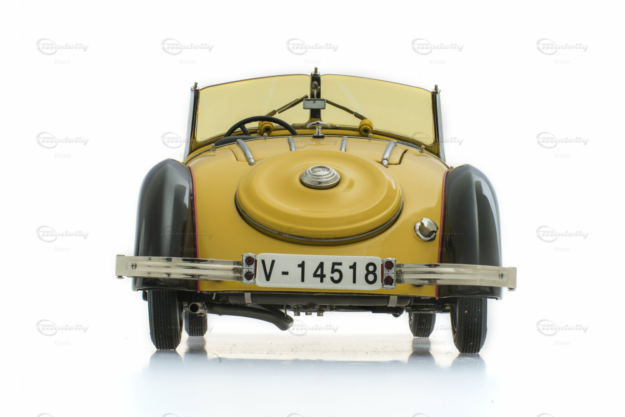 Das Modellauto von Koen, Teil der Modelly-Sammlung, ist ein äußerst detaillierter Nachbau des Audi Front 225 Roadster aus der zweiten Generation. Typische Merkmale wie die Ersatzradhalterung am Heck und die stilisierte Karosserie spiegeln die echten Details wider und sind ein Highlight für Sammler. Der binnen wenige Jahre gebaute Roadster, der bei Sammlern und Autoliebhabern gleichsam beliebt ist, zeigt präzise verarbeitete Sitze, ein authentisches Armaturenbrett und viele weitere Innenausstattungsmerkmale, die auf den ersten Blick erkennbar sind. Das Modell im Maßstab 1:18 von CMC ist bekannt für seine hochwertige Handwerkskunst und liefert Sammlern eine detailgenaue Replik des ikonischen Oldtimers. Jede kleine Komponente, von den Reifen bis zu den Lampen, ist sorgfältig reproduziert.