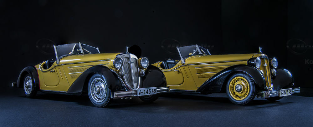Der Audi Front 225 Roadster ist ein ikonischer Klassiker aus der Zeit zwischen 1935 und 1939. Er war Teil der zweiten Generation der „Front“-Serie, die sich durch den Einsatz des Frontantriebs auszeichnete. Der Audi Front 225 Roadster wurde von Ferdinand Porsche konzipiert und war eines der ersten Fahrzeuge, das diese innovative Antriebsform nutzte. Das Fahrzeug ist mit einem 2,3-Liter-Sechszylindermotor ausgestattet, der 50 PS leistet und das Auto auf eine Höchstgeschwindigkeit von etwa 115 km/h bringt. Zu den technischen Merkmalen gehört eine fortschrittliche Synchronisation beim Getriebe, die eine glatte Schaltung ermöglicht.