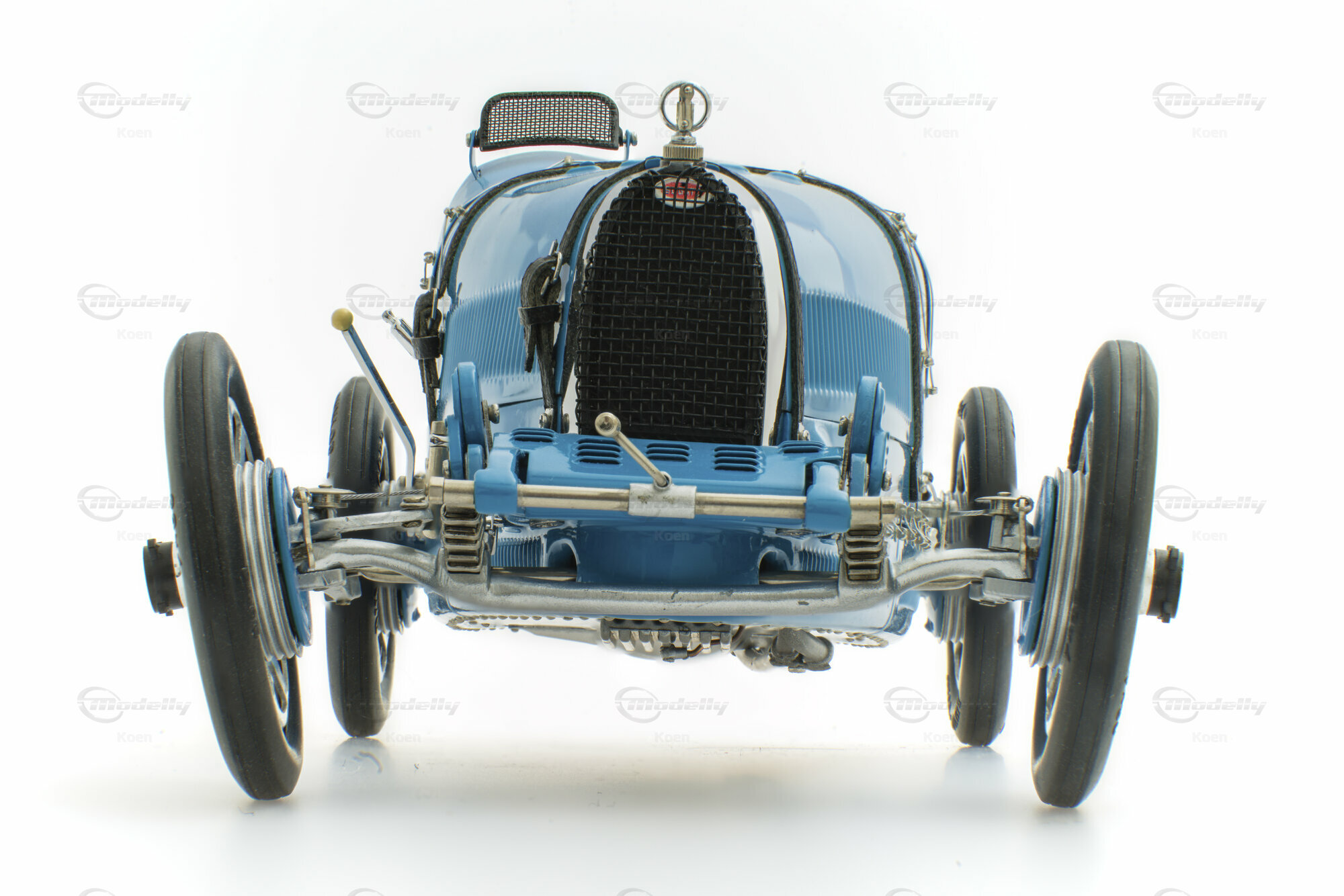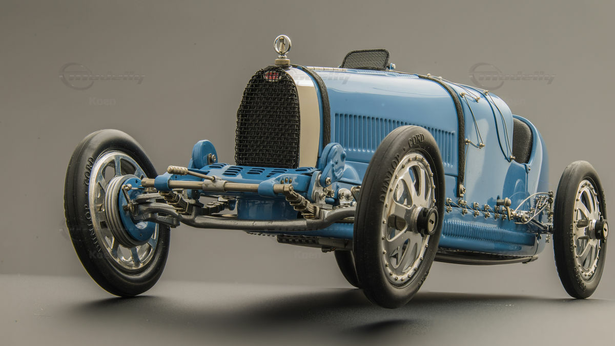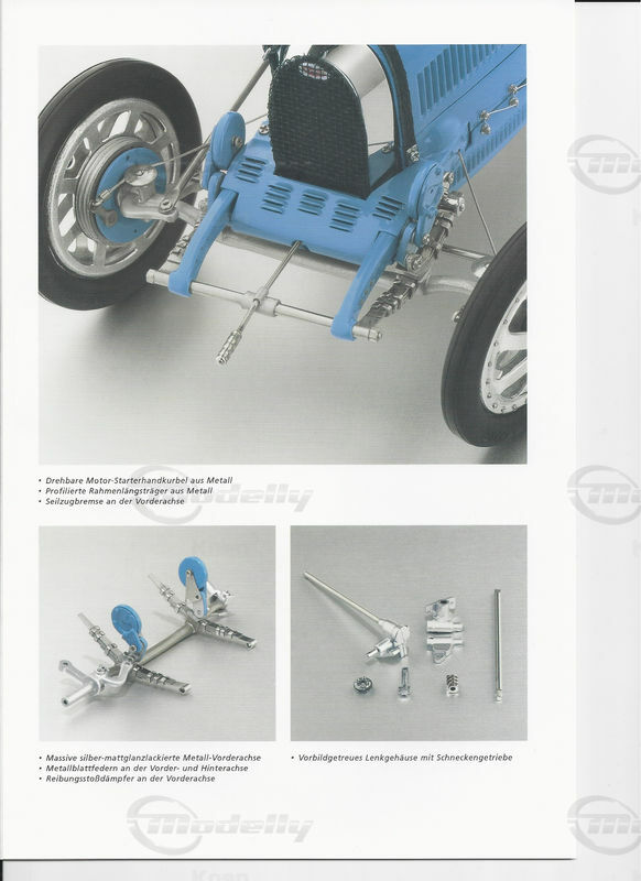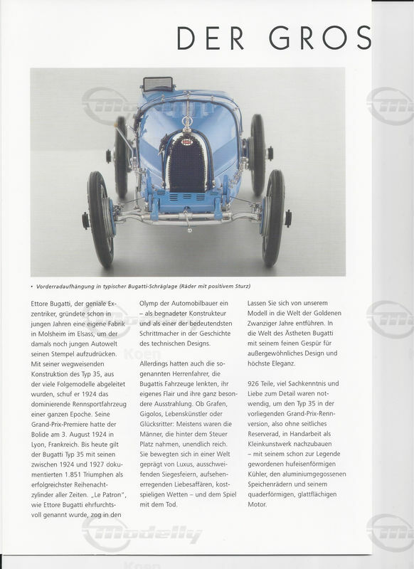 926 Teile, viel Sachkenntnis und Liebe zum Detail waren notwendig, um den Typ 35 in der vorliegenden Grand-Prix-Rennversion, also ohne seitliches Reserverad, in Handarbeit als Kleinkunstwerk nachzubauen - mit seinem schon zur Legende gewordenen hufeisenförmigen Kühler, den aluminumgegossenen Speichenrädern und seinem quaderförmigen, glattflächigen Motor.