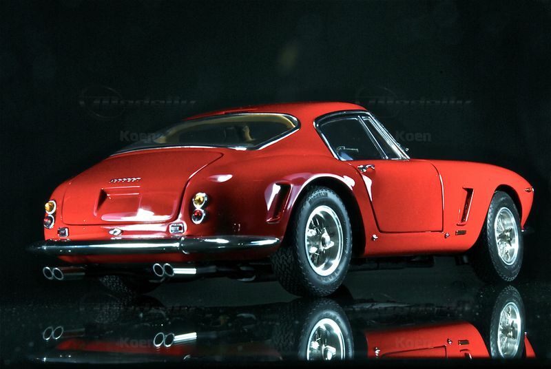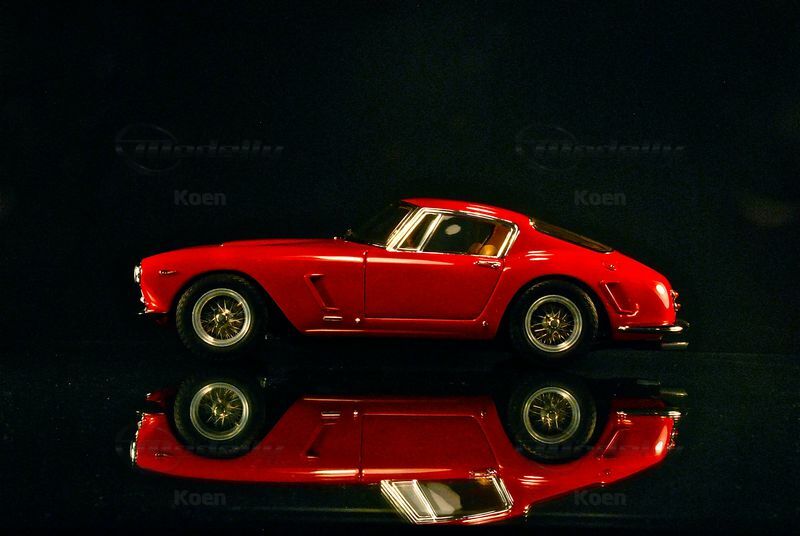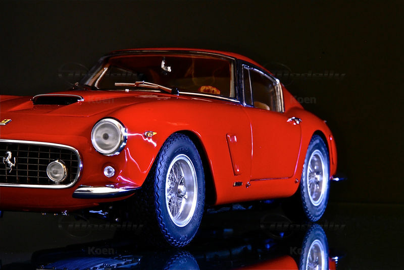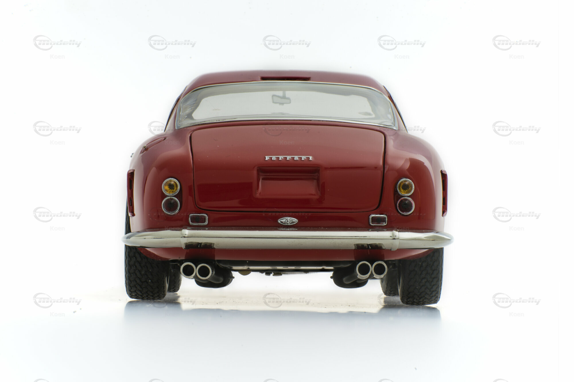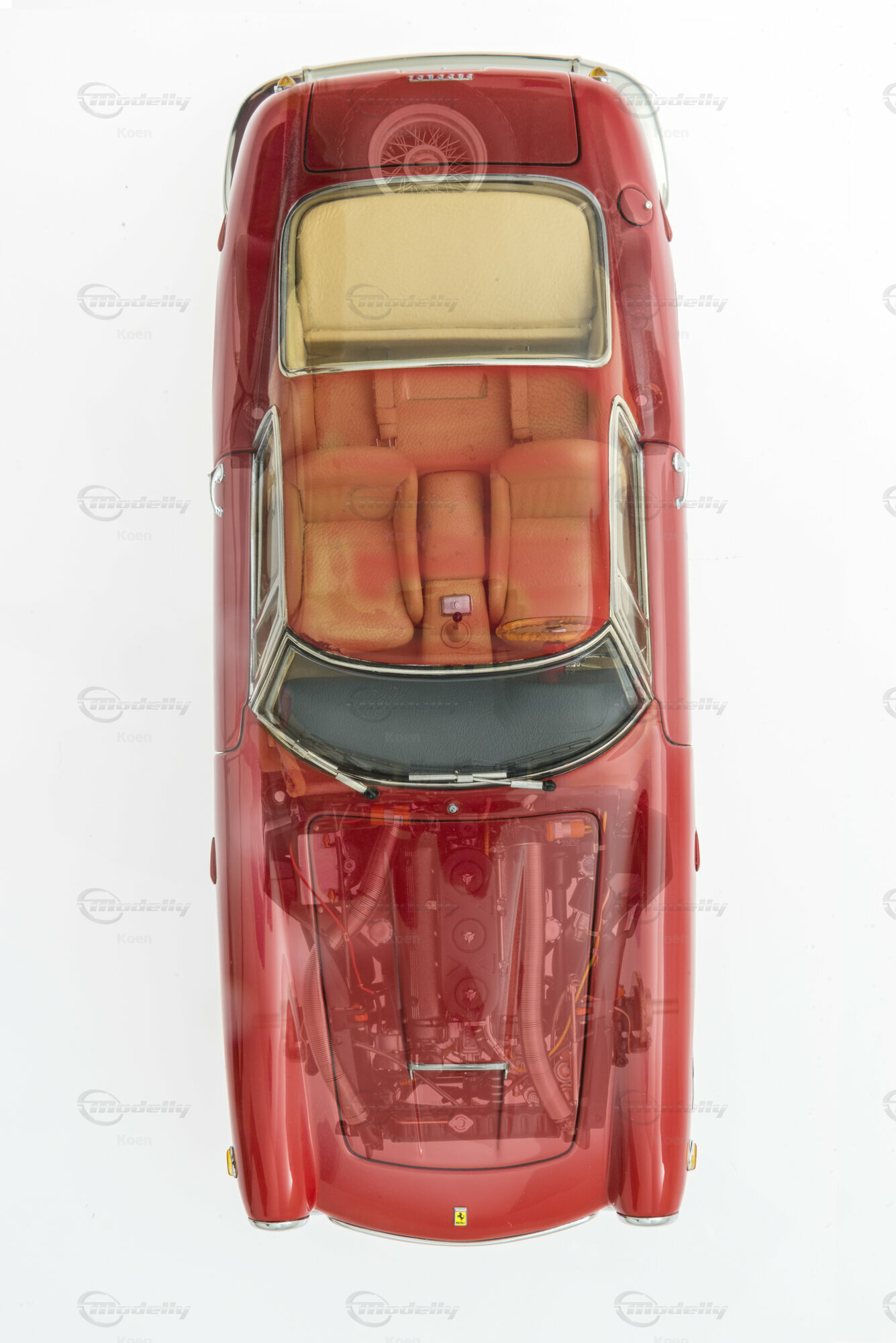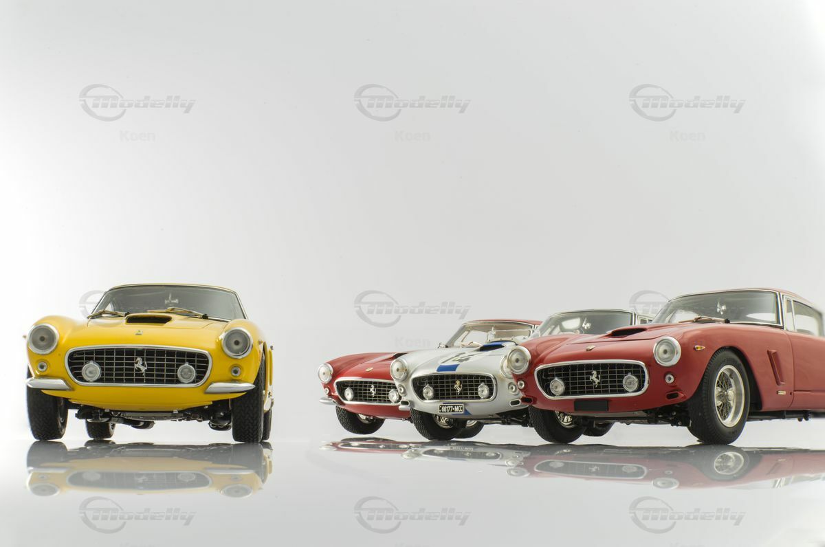 CMC hat sich für den Nachbau der Luxusausführung (Lusso) der 250 GT SWB-Straßenversion des Baujahres 1961 entschieden. Das Ganzmetall-Modell wird aus 1.141 Teilen handmontiert. Jedes Detail der vom Designer Sergio Pininfarina entworfenen Karosserie ist akribisch genau und maßstabsgetreu umgesezt. Natürlich kann sich im Modell auch der nach seinem Konstrukteur benannte legendäre Colombo-Zwölfzylinder-V-Motor sehen lassen. Er lässt den brüllenden Sound erahnen, den die zwölf Zylinder im Original von sich geben. Und so wünscht man sich, man könne auf dem Schalensitz des Modells Platz nehmen, um auf den Befehl zu warten "Gentlemen, start your engines".