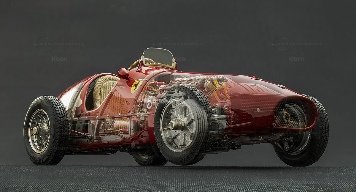 1950 ist das Geburtsjahr der Formel 1. Ferrari mit seinem bis heute unverändert gebliebenen Markenzeichen, dem „Cavallino Rampante“ ist als einziger Rennstall von Anfang an dabei. Mit großem Erfolg; der 375 F1 ist so gut wie unschlagbar. 1951 verabschiedet sich Alfa Romeo als bisher erbittertster Gegner – Langeweile droht aufzukommen. Schließlich wird 1952 die Rennformel geändert: Grand-Prix-Rennen werden mit Formel-2-Wagen ausgetragen. Und wie es der Zufall will, steht bei Ferrari bereits ein passender Bolide bereit: der 500 F2. Das Fahrzeug ist sehr leicht und relativklein. Weitere Pluspunkte sind ein niedriger Schwerpunkt, eine ausgewogene Verteilung der Aggregat-Gewichte, gute Bremsen sowie der drehmomentstarke, von Aurelio Lampredi entwickelte Vierzylindermotor mit seinen 185 PS. Alles in allem ergibt das ein hervorragendes Fahrverhalten und ein gutes Handling. Doch Ferrari hat noch mehr zu bieten: Mit Alberto Ascari steht ein begnadeter Rennfahrer bereit, der seinen Beinamen "der fliegende Mailänder" zu recht trägt.
