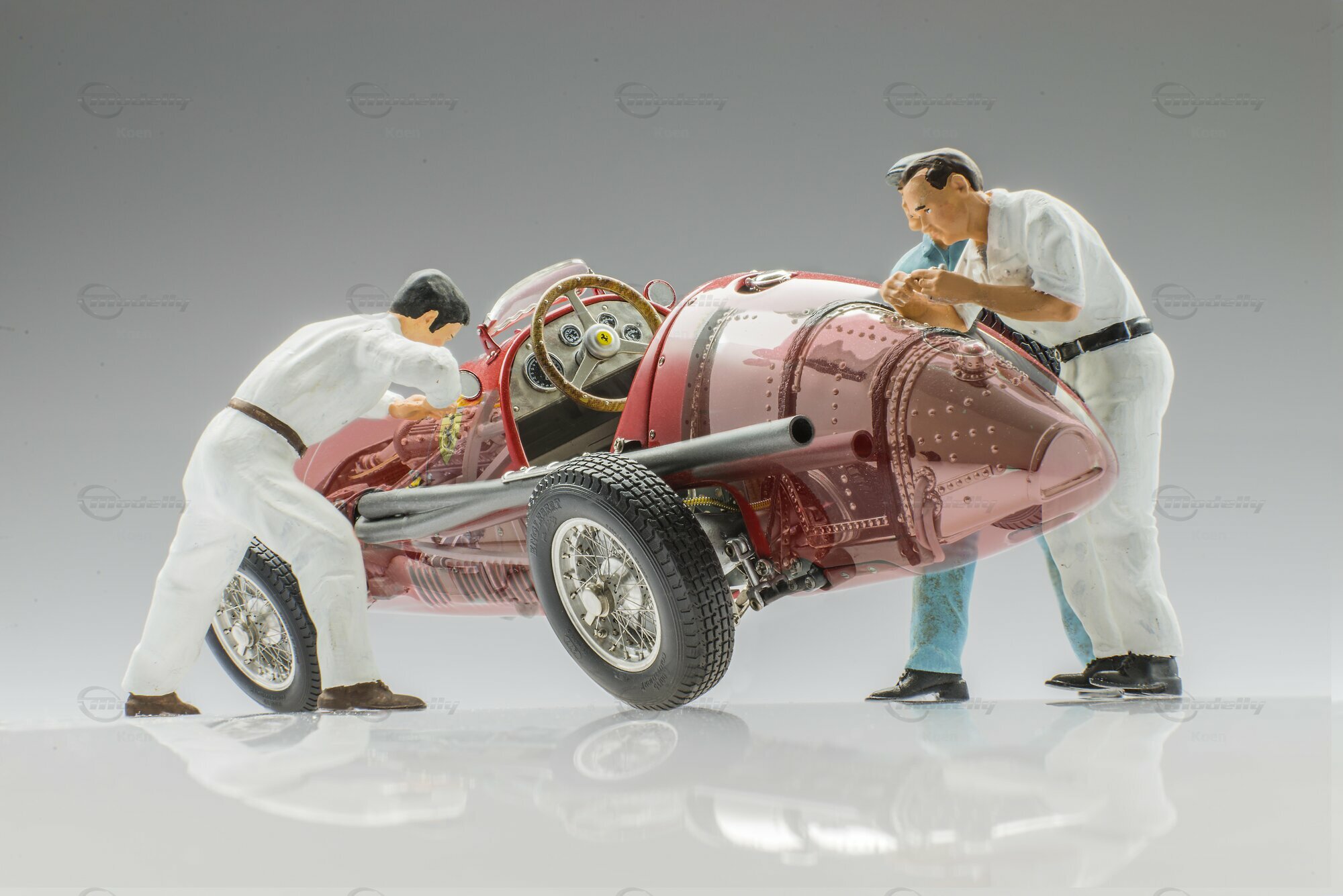 Mit diesem Ganzmetall-Modell huldigt CMC dem legendären Weltmeisterauto von 1953 mit dem letzten Stand der technischen Entwicklung. Lassen Sie die Detailfülle des aus 1.463 Teilen bestehenden Modells und die handwerkliche Präzisionsarbeit auf sich einwirken. Werfen Sie einfach einen Blick unter die Motorhaube oder das abnehmbare Heckteil des Modells, dann wissen Sie, was wir meinen. Übrigens: Das Abzählen der Niete am Benzin- und Öltank haben wir Ihnen abgenommen. Es sind genau 526 Stück.