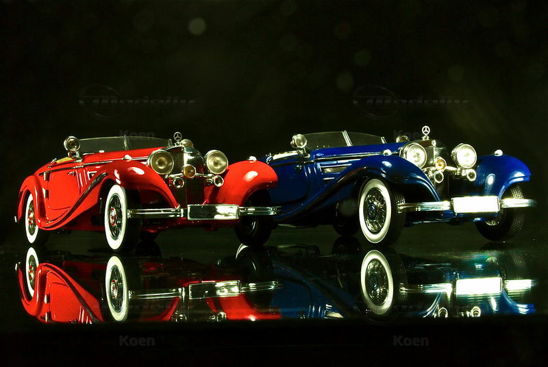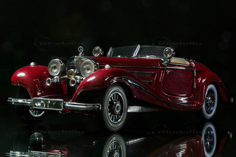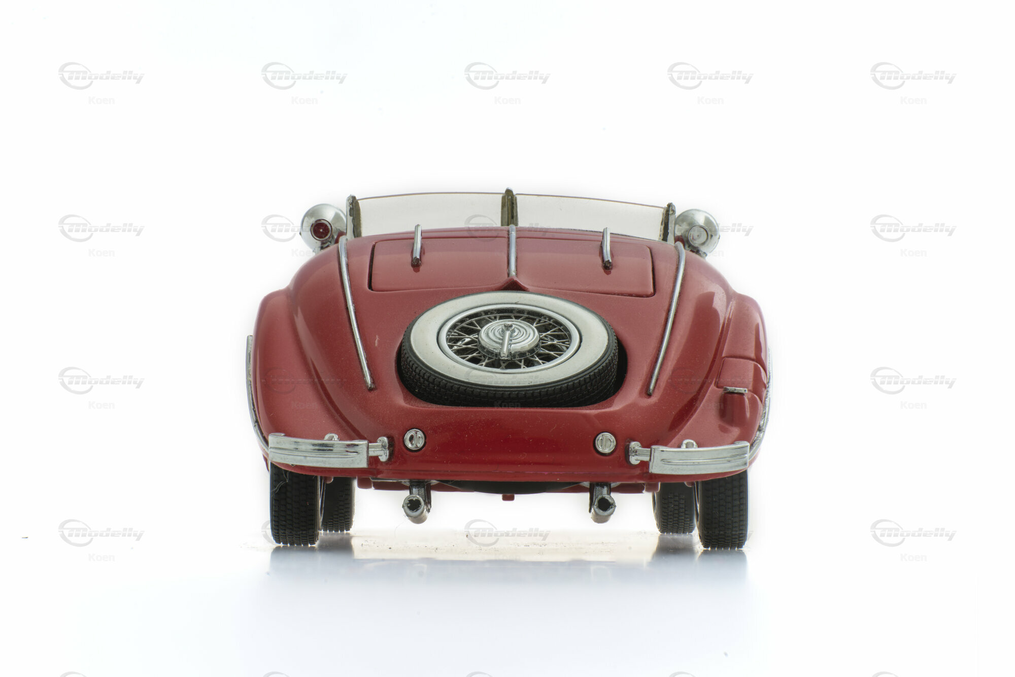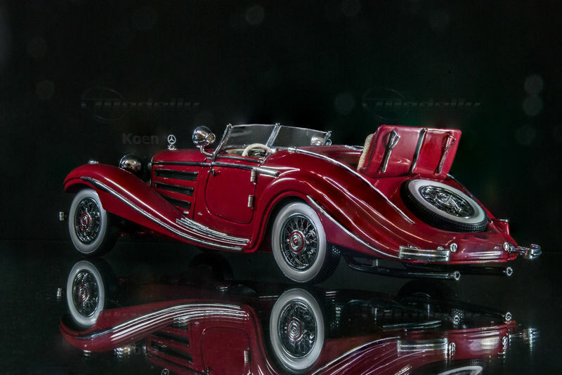 Das hier gezeigte Modellauto im Maßstab 1:24, hergestellt von CMC, ist eine detailgetreue Nachbildung des Mercedes-Benz 500K Spezialroadster. Das Modell zeugt von hoher Präzision und Detailliebe. Zu den bemerkenswerten Details gehören die feinen Speichenräder, der authentische Nachbau des Kühlergrills sowie die präzise geformten Scheinwerfer und Rückspiegel. Zudem sind auch das Reserverad am Heck und die markanten Stoßstangen detailgetreu reproduziert. Auch die Lackierung des Modells spiegelt den Stil der Epoche wider – die rote Karosserie in Kombination mit den glänzenden Chromelementen bringt die Eleganz des Originalfahrzeugs eindrucksvoll zur Geltung. Diese hochwertige Miniatur ist Teil der Sammlung von Modelly-Mitglied "Koen" und repräsentiert die Hingabe und Sorgfalt, die CMC in die Fertigung ihrer Modelle steckt.