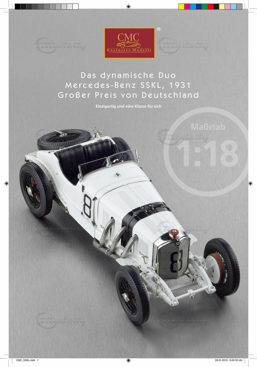 So sah der Sieger des Großen Preises von Deutschland im Jahre 1931 aus. Rudolf Caracciola siegte auf einem Mercedes-Benz SSKL, bekannt auch als der starke "weiße Elefant". Mensch und Maschine ergänzten sich vorbildlich als ein wahrhaft "dynamisches Duo. CMC hat das Siegerauto mit der Startnummer 8 in seiner ganzen imposanten Erscheinung originalgetreu nachgezeichnet. Das Modell wird in der limitierten Auflage von weltweit 4.000 Stück gefertigt.