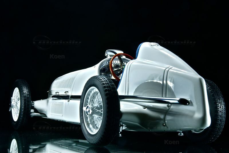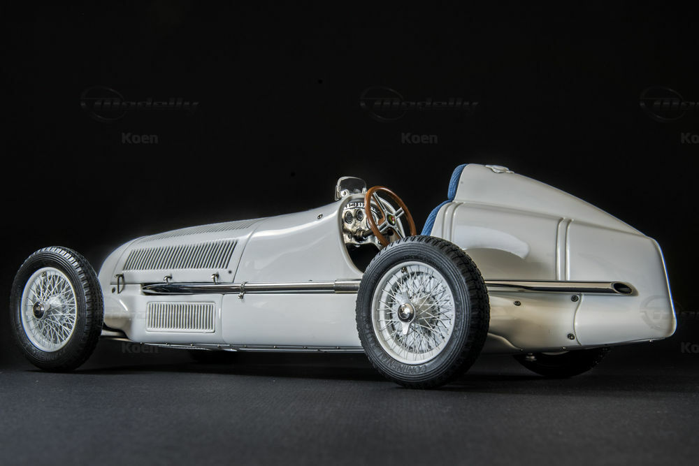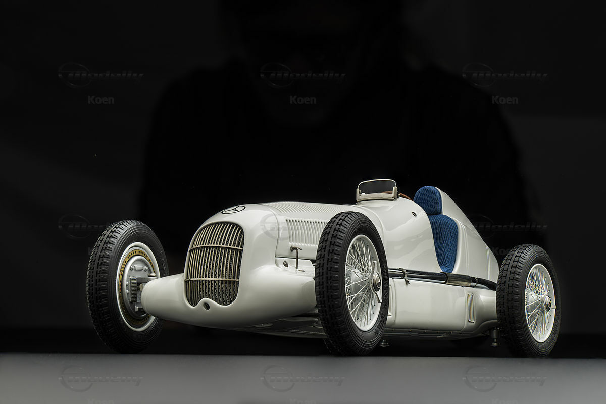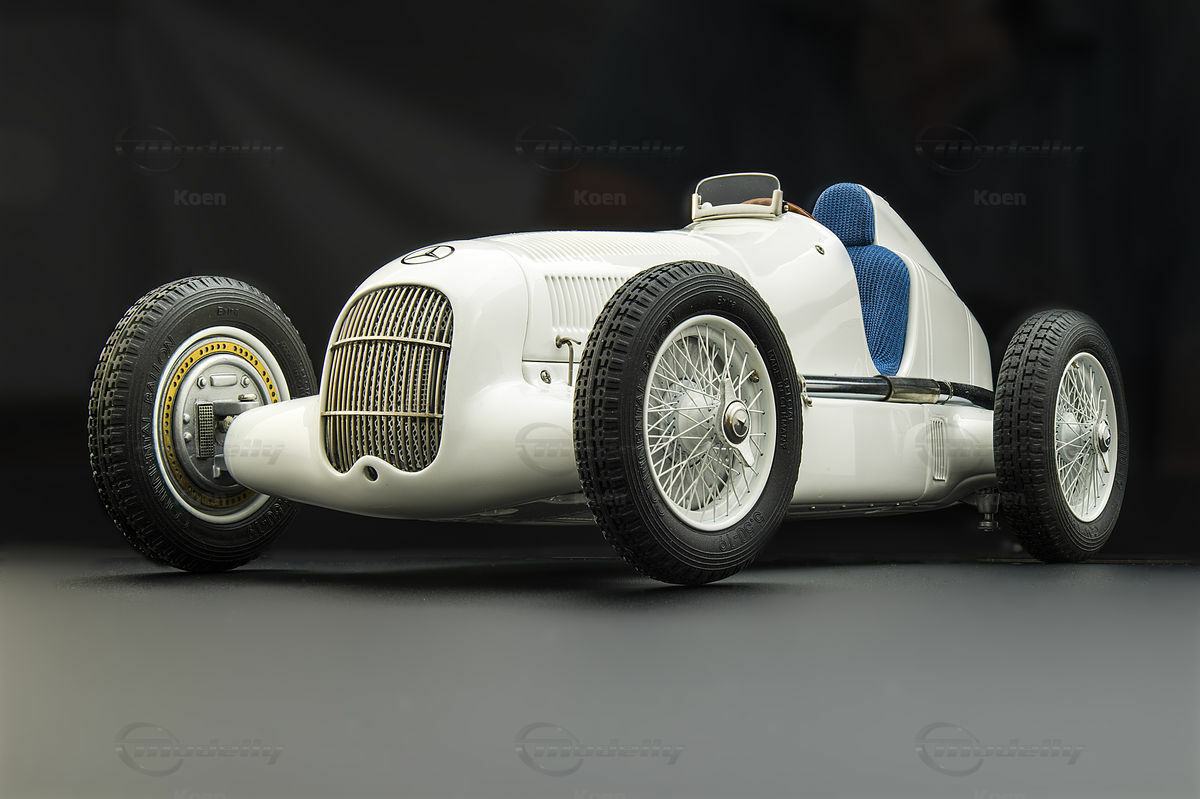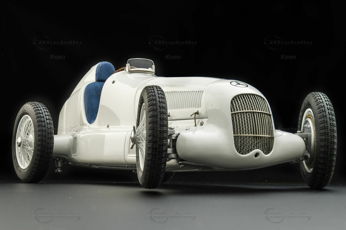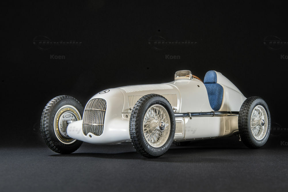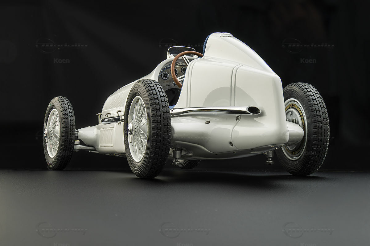 Ein Mythos in weiß. Der Nachbau des ersten Mecedes-Benz-Silberpfeils W 25 ist ein echtes Liebhaberobjekt für alle Silberpfeil- und Modellfans und sollte in keiner Sammlung fehlen. Und urteilen Sie selbst, auch die weiße Farbe steht dem Rennboliden prächtig zu Gesicht.