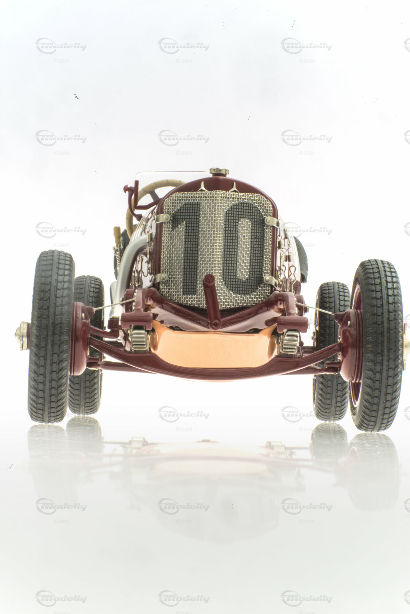 Die Startnummer 10 wird im aufwändigen Tampondruckverfahren auf der weinrot lackierten Karosserie angebracht