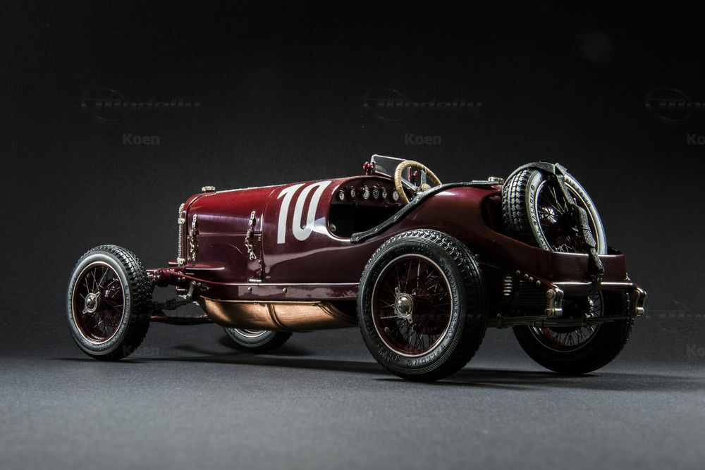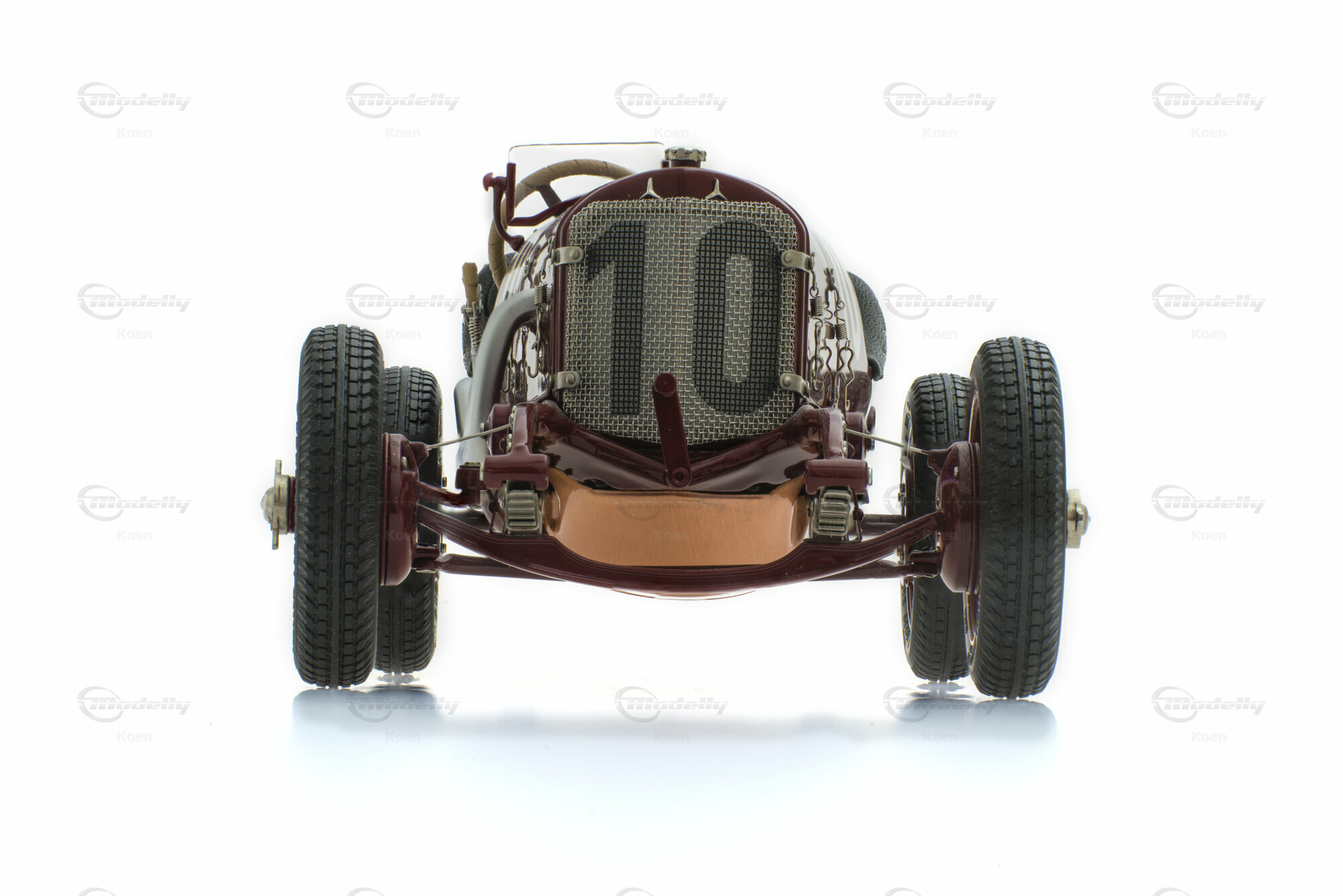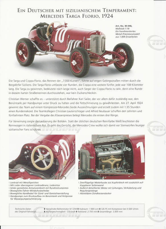 Von den Metallblattfedern über die Aluräder in filigraner Speichenausführung bis zum Reserverad mit original wiedergegebener Lederriemenbefestigung: Der Mercedes Targa Florio ist bis ins letzte Detail unter Verwendung hochwertiger Materialien entsprechend dem historischen Original nachgebaut. Ein Sammlerstück, das seinesgleichen sucht