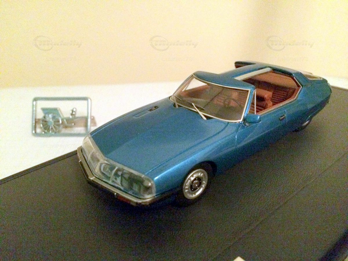 Dieses Modell des Citroën Heuliez SM Espace ist eine hochdetaillierte Nachbildung im 1:43 Maßstab, hergestellt von Matrix und Teil der Sammlung von Modelly-Mitglied „Laurent79“. Das Modell wurde aus Resin gefertigt, einem Material, das für seine Präzision und Detailgenauigkeit bekannt ist. Die Lackierung des Miniaturautos fällt sofort ins Auge: ein glänzendes und makelloses Blau, das die elegante Linienführung des originalen Fahrzeugs perfekt einfängt. Die im Modell dargestellten Proportionen und Details, wie die klaren Linien um die Türen, die feine Nachbildung der Scheinwerfer und die präzisen Felgen, reflektieren die hohe Qualität der Modellbaukunst von Matrix. Ein weiteres auffälliges Merkmal ist der detailgetreue Innenraum mit sorgfältig gestalteten Sitzen, Armaturenbrett und der markanten Targa-Dachkonstruktion, die den exklusiven Charakter des Originals einfängt.