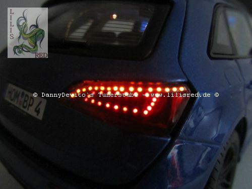 Klar erkennbar ist, dass dieses Modell von Modelly Mitglied „Lilisred“ modifiziert wurde. Diese Modifikationen umfassen eine auffällige Lackierung in einem speziellen Blauton, der das Miniaturfahrzeug zum Blickfang macht. Auch die schwarzen Felgen geben dem Modell einen sportlichen Touch. Eine genaue Analyse zeigt, dass die Frontstoßstange und der Kühlergrill leicht verändert wurden, um dem Modell eine individuelle Note zu verleihen. Diese Detailverliebtheit und die spezifischen Anpassungen machen das Modell einzigartig und interessant für Sammler und Liebhaber von Modellen.
