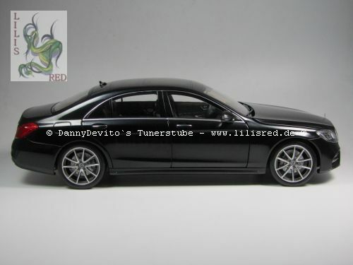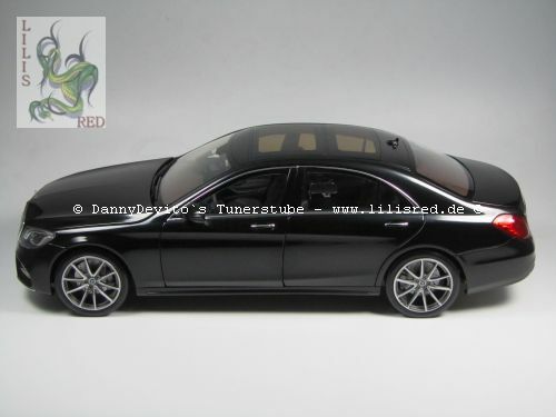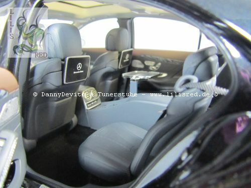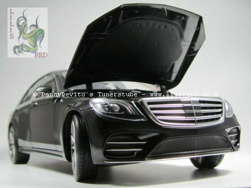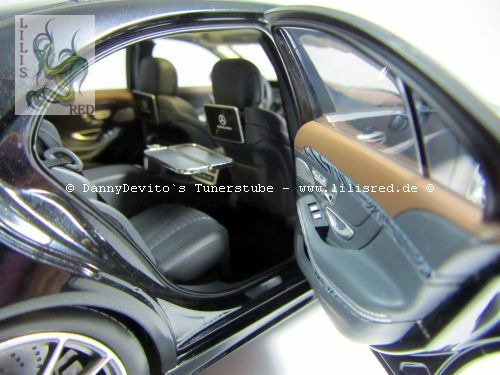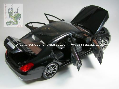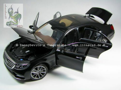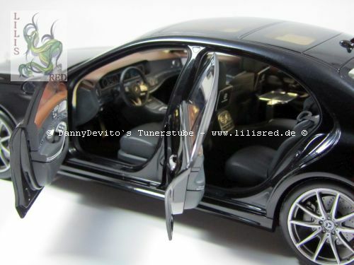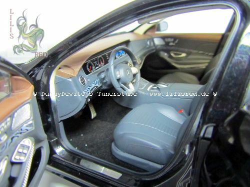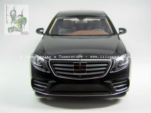 Das hier vorgestellte Modellauto im Maßstab 1:18 von Norev basiert auf der Mercedes-Benz S-Klasse (V222). Es handelt sich um ein hochwertiges Modell, gefertigt aus Die-Cast-Material, das eine äußerst detaillierte und präzise Nachbildung des Originals bietet. Dieses Modell ist ein modifiziertes Exemplar und entspricht nicht dem ursprünglich von Norev produzierten Produkt. Auffällig ist die glänzend schwarze Lackierung, die das elegante Design der S-Klasse originalgetreu widerspiegelt. Das Modell verfügt über detaillierte Innenausstattungen, wie die braunen Ledersitze und das dargestellte Interieur, das in hohem Maße der Luxusklasse des Originals nachempfunden ist. Diese Details machen die Miniatur zu einem besonderen Sammlerstück.
