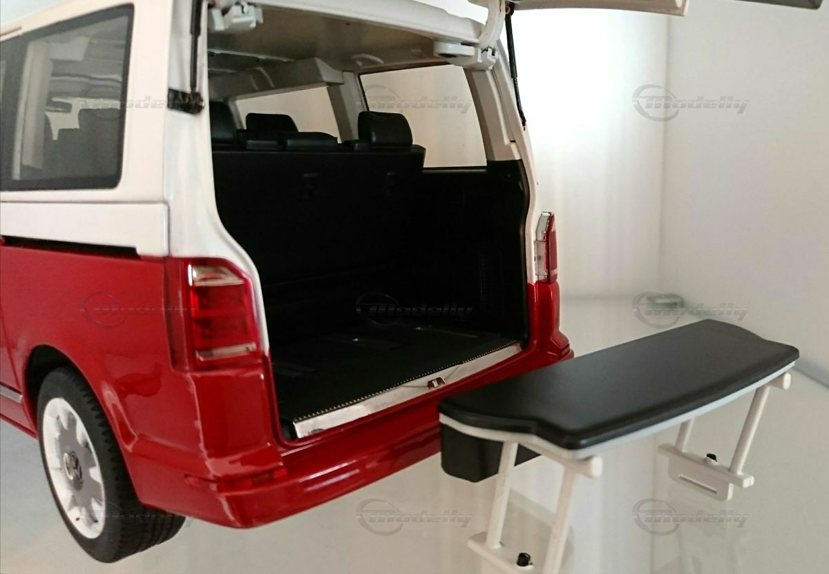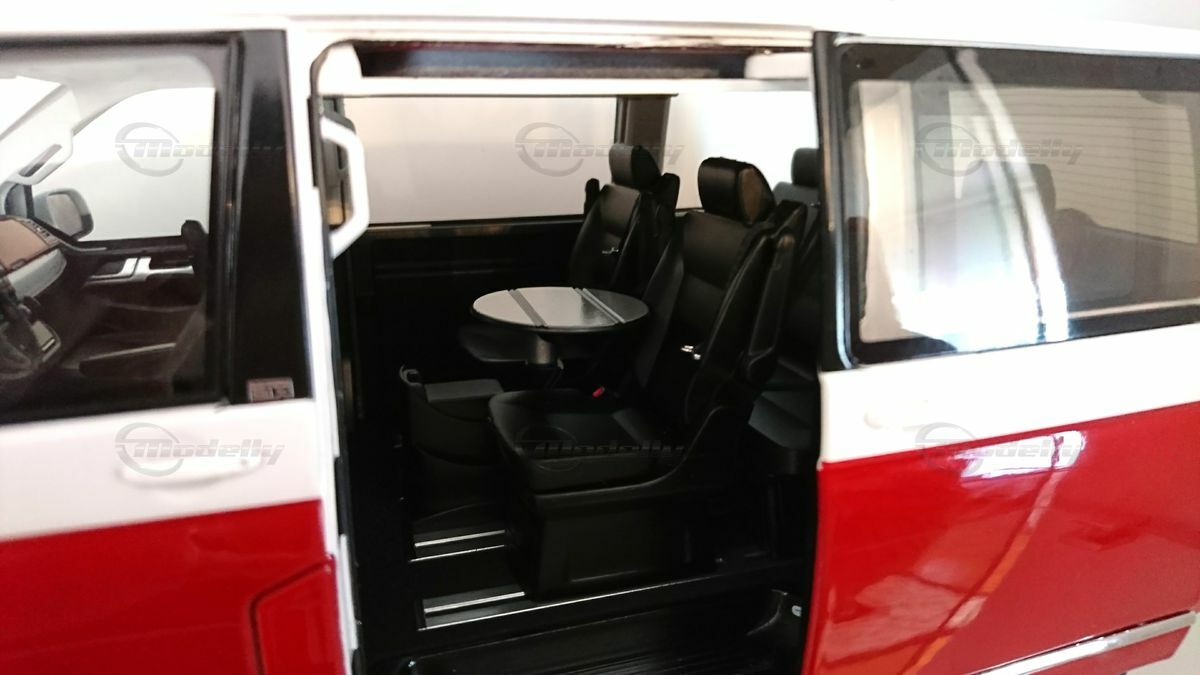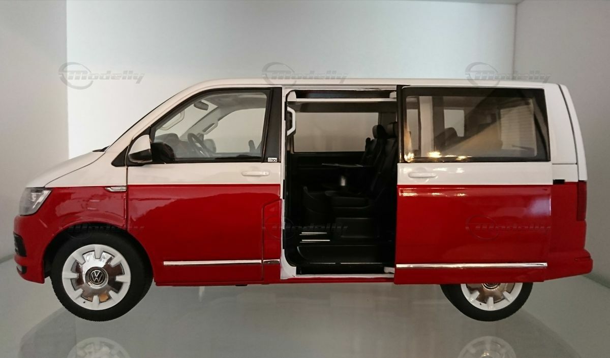 Die Lackierung des Miniaturfahrzeugs entspricht dem klassischen zweifarbigen Design, das oft mit Volkswagen-Modellen assoziiert wird. Die Kombination aus roten und weißen Elementen verleiht dem Modell eine nostalgische und zugleich elegante Erscheinung. Die Chromakzente und die markanten Volkswagen-Räder sind weitere auffällige Features. Obwohl das Modell im Maßstab 1:18 gehalten ist, mangelt es nicht an Detailtreue: Von den Türgriffen bis hin zu den Fensterscheiben, jedes Element ist präzise nachgebildet. Ein besonderes Merkmal sind die funktionstüchtigen Schiebetüren, die das Sammelstück zu einem echten Hingucker machen.