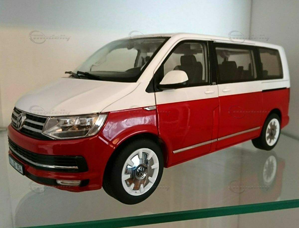 Das gezeigte Modellfahrzeug ist eine genaue Nachbildung des Volkswagen Multivan T6 im Maßstab 1:18. Dieses Modell, hergestellt von NZG, repräsentiert die Detailgenauigkeit und Präzision, die von Sammlern geschätzt wird. Der Miniaturbus ist aus Diecast-Material gefertigt, das für seine Langlebigkeit und hohe Detailtreue bekannt ist. Das Modell zeigt die charakteristischen Designelemente des T6 wie zum Beispiel die markante Frontpartie mit den modernen Scheinwerfern und dem charakteristischen Kühlergrill. Die Schiebetüren sowie die Rückseite mit den typischen Leuchten setzen weitere Akzente und unterstreichen die Authentizität des Modells.