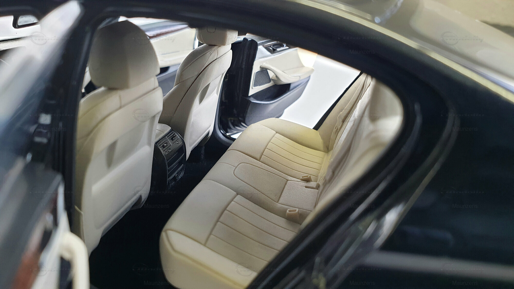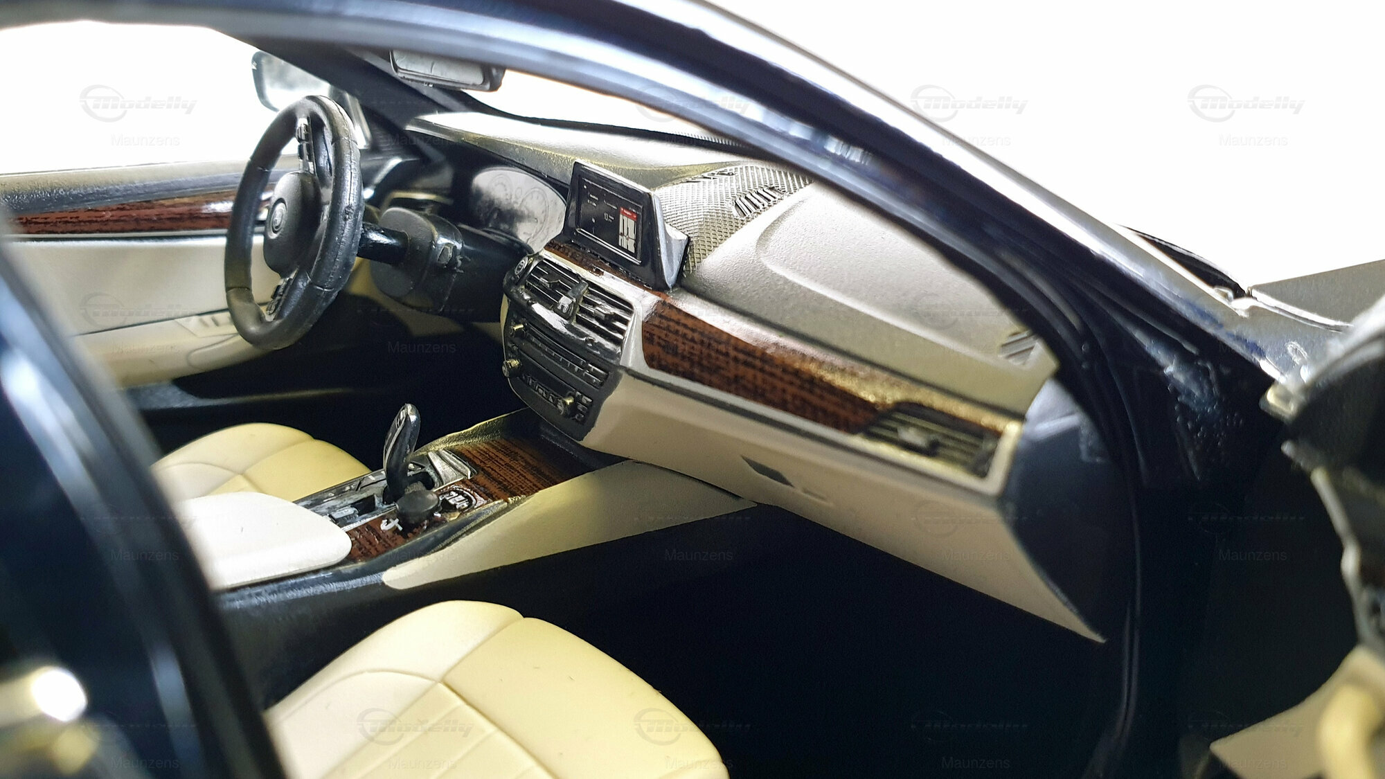 Im Inneren des Modells kann man die akkurate Nachbildung der Sitze, des Armaturenbretts und der Bedienelemente erkennen. Die Nachahmung des Lederinterieurs mit seinen genähten Nähten und die feinen Oberflächenstrukturen sind durchdacht und sorgfältig ausgeführt. Dieses Modell ist ein Muss für jeden BMW-Liebhaber und Sammler von 1:18 Maßstab-Modellen. Es zeigt eindrucksvoll, wie nah ein Modell an das Original herankommen kann.